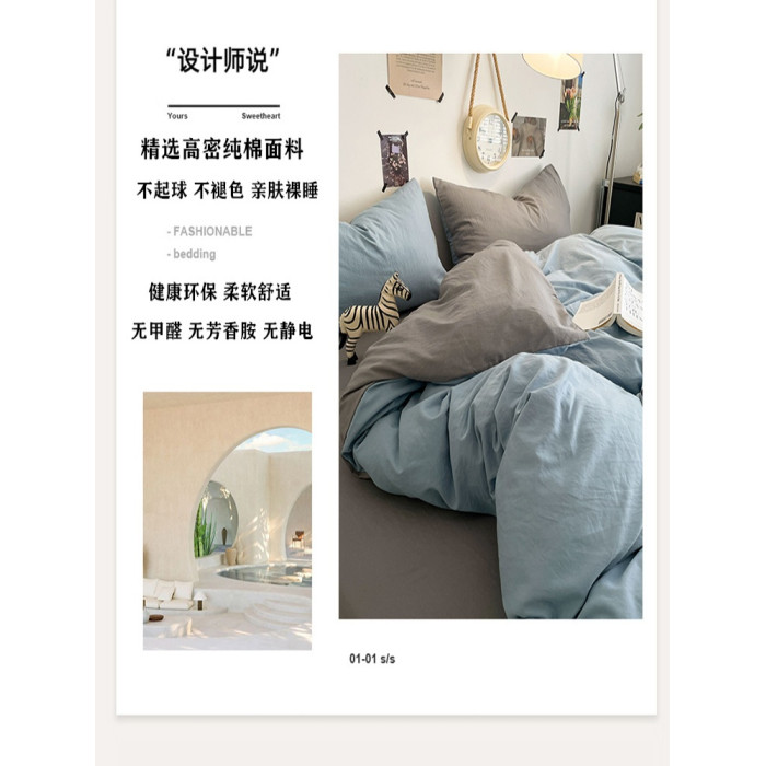 簡約風床品床上四件套床單被套100全棉純色床包款學生宿捨三3件套