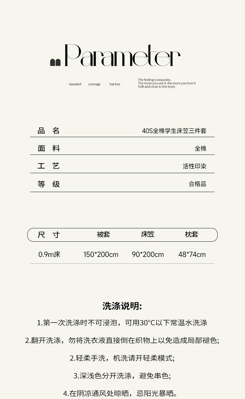 貨號 全棉學生三件套