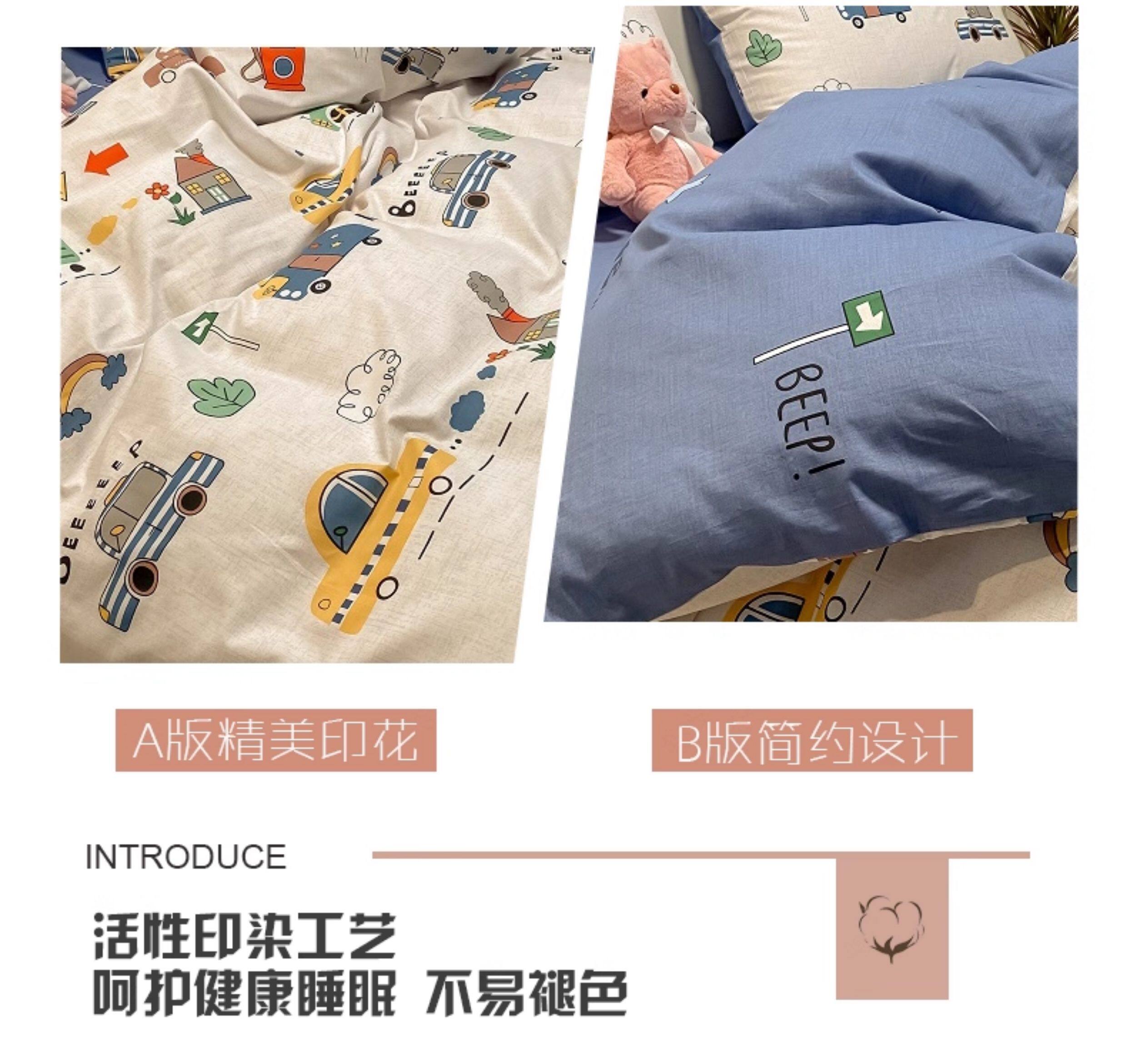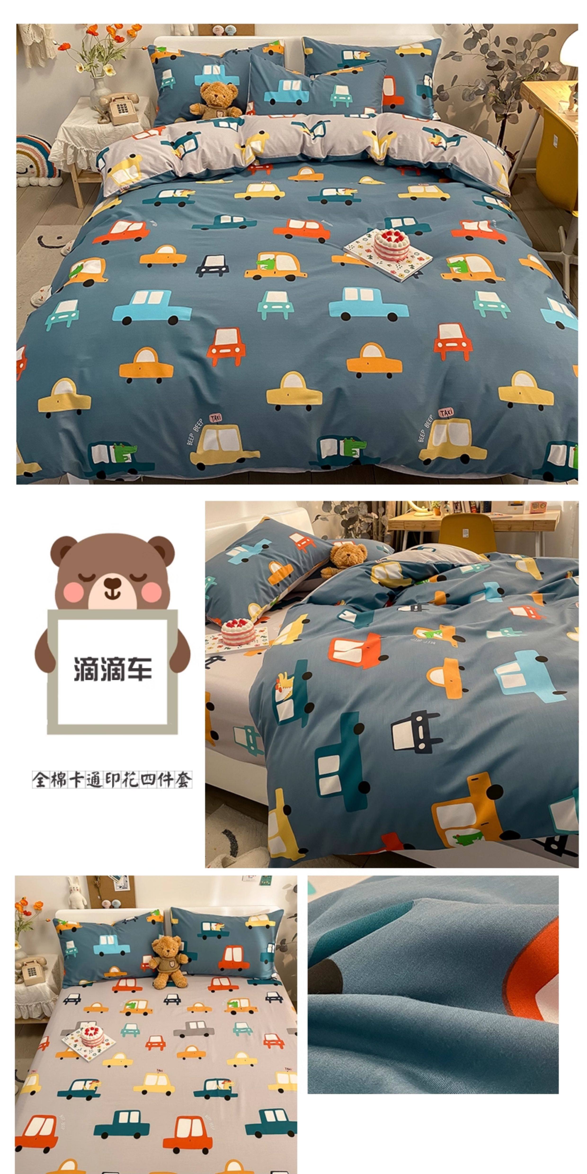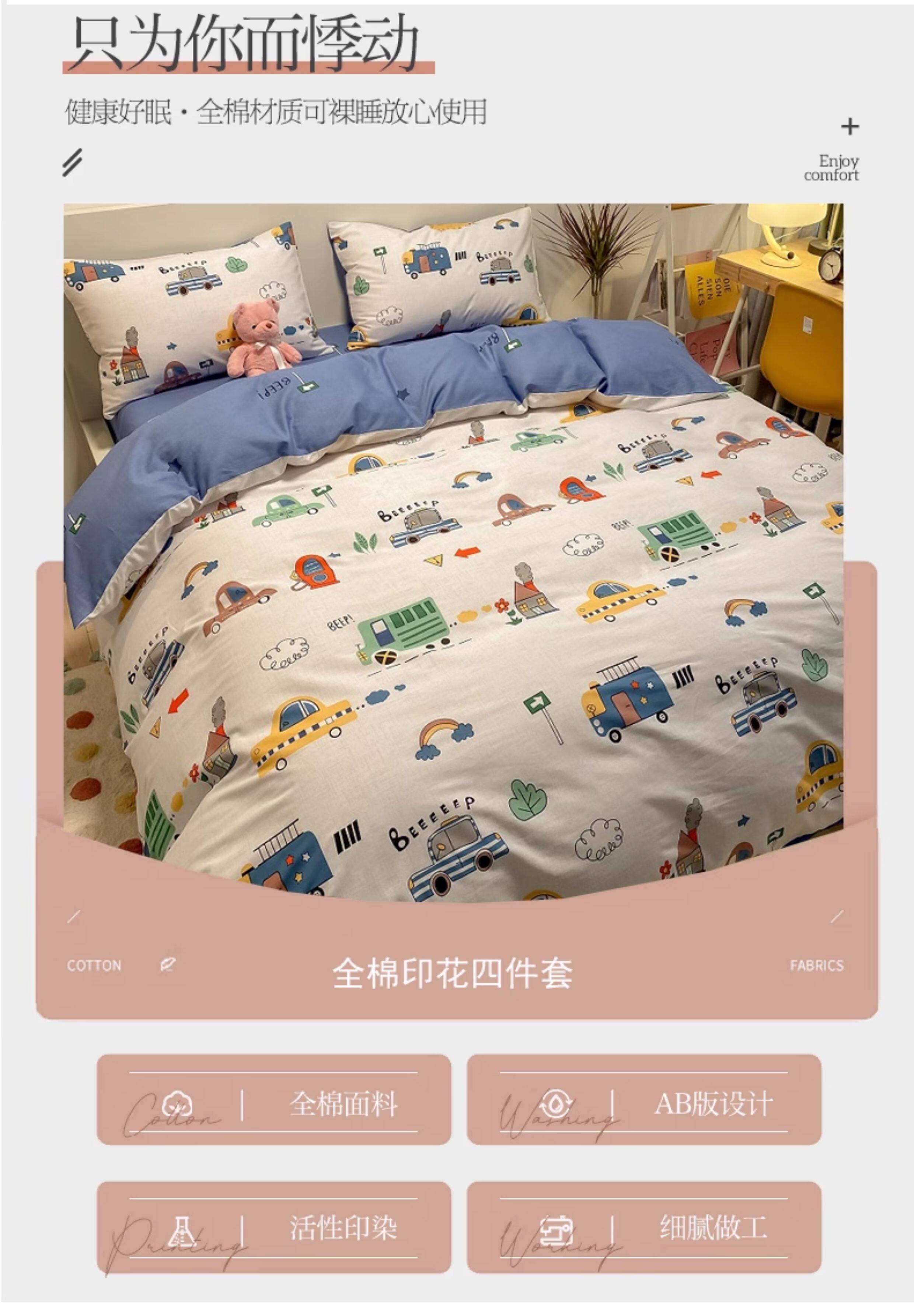 兒童純棉四件套全棉夏季卡通小汽車男孩100宿捨1.2被套床包床品三
