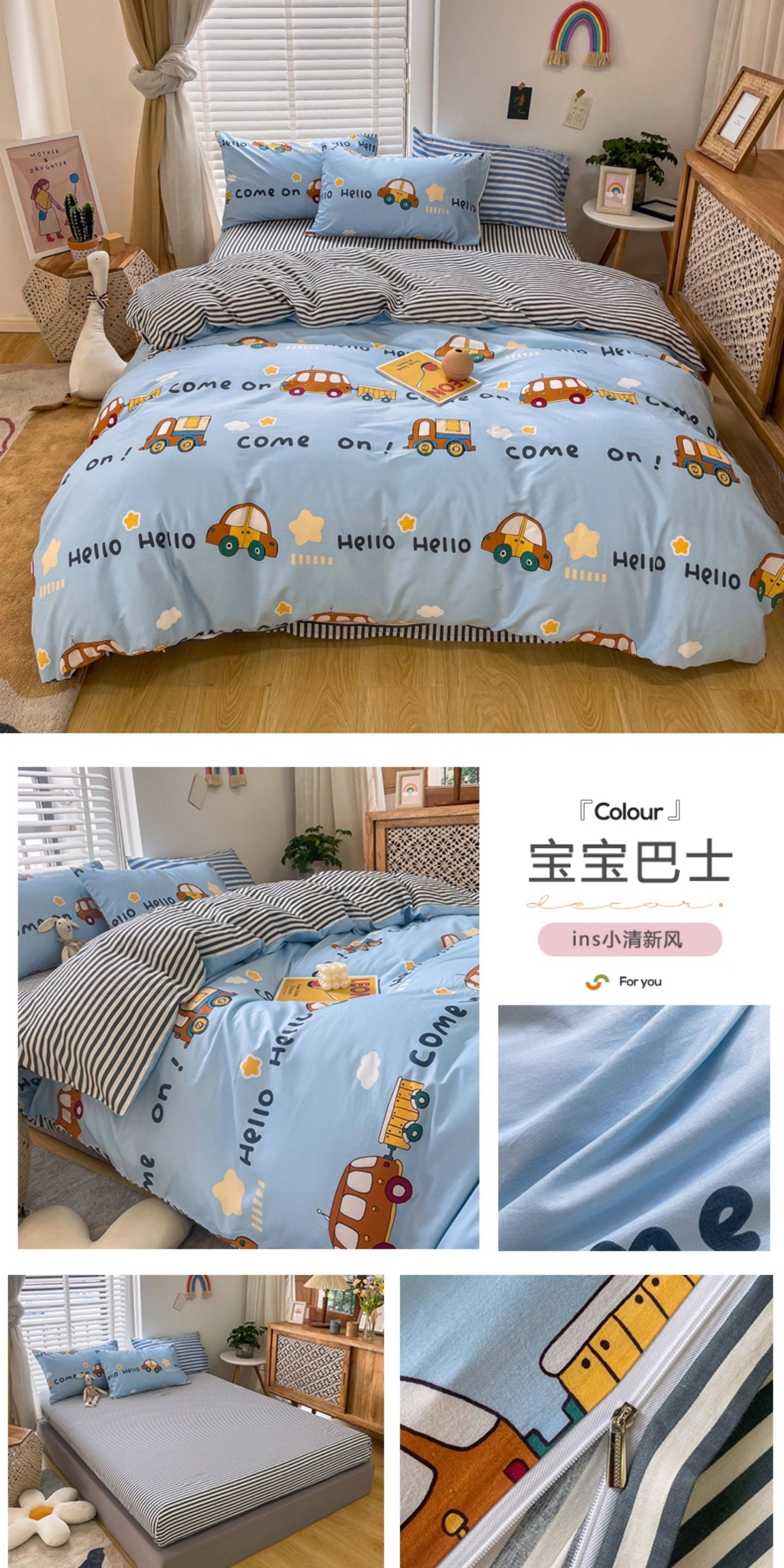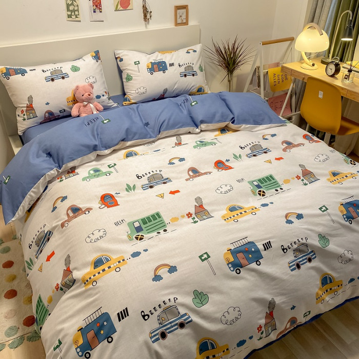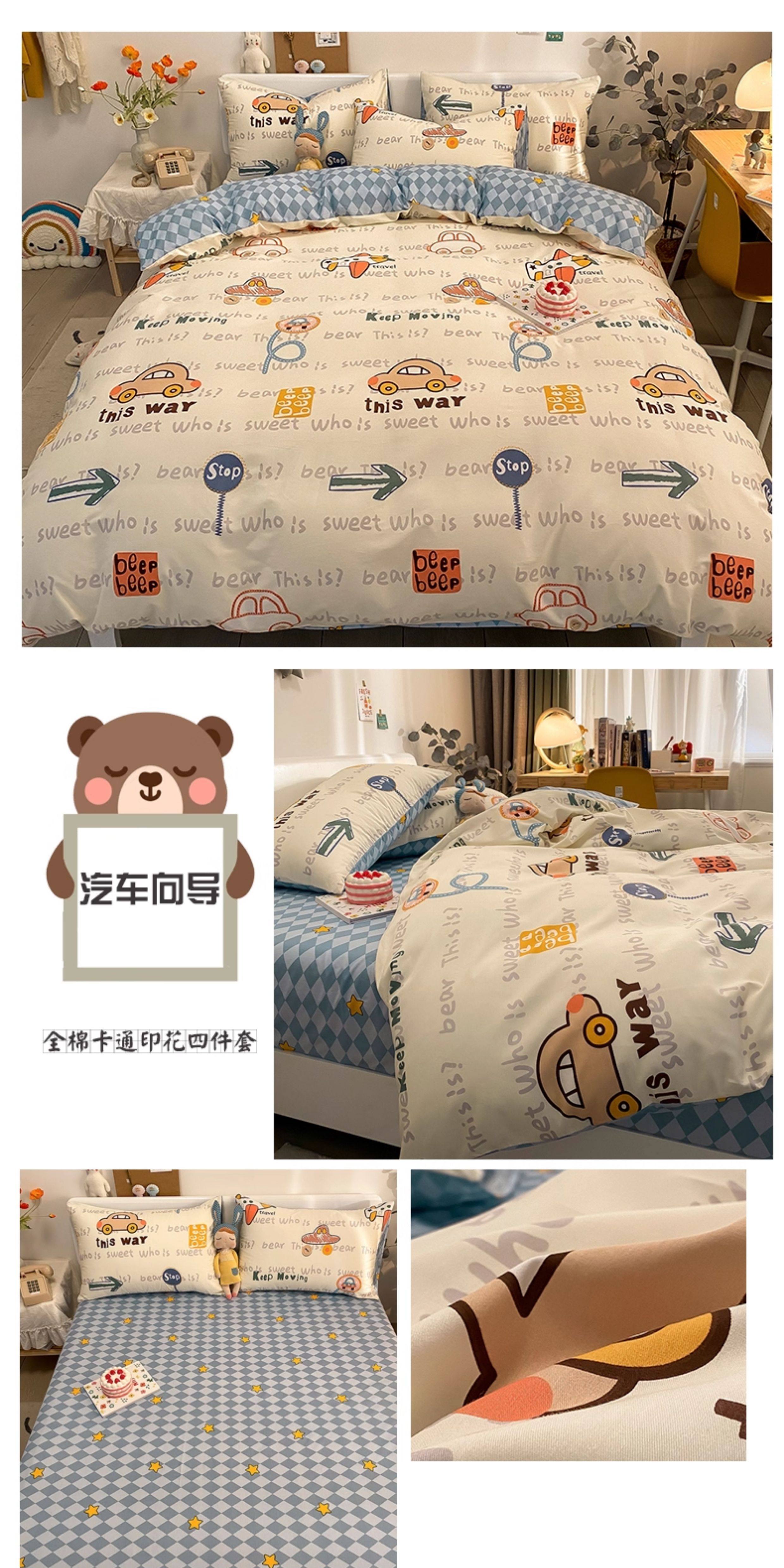 兒童純棉四件套全棉夏季卡通小汽車男孩100宿捨1.2被套床包床品三