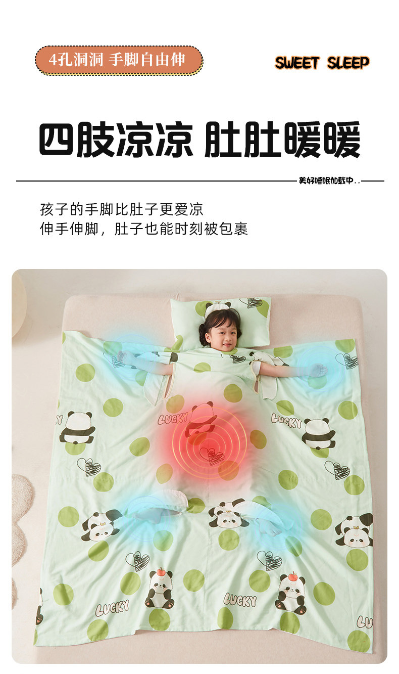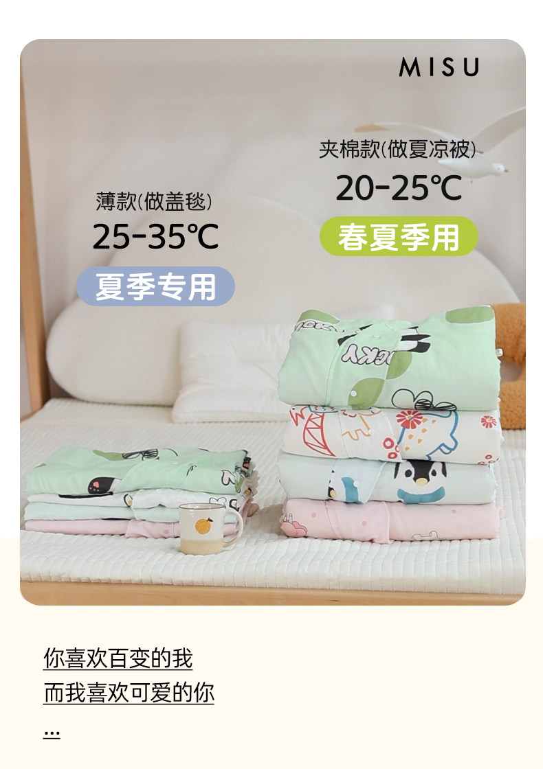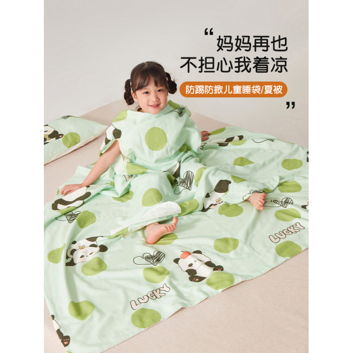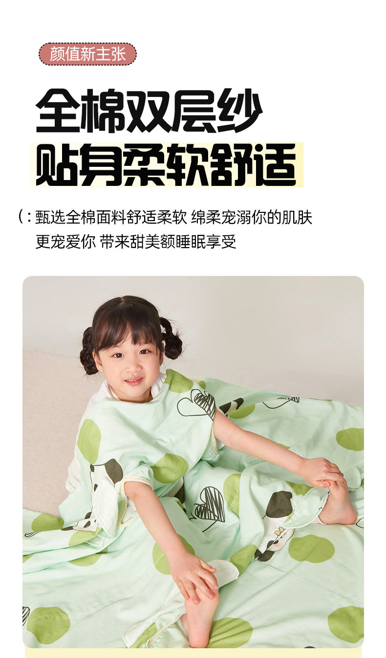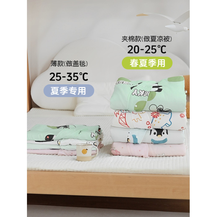米蘇卡通純棉紗布兒童睡袋寶寶防踢被子嬰兒神器蓋毯夏涼被空調被