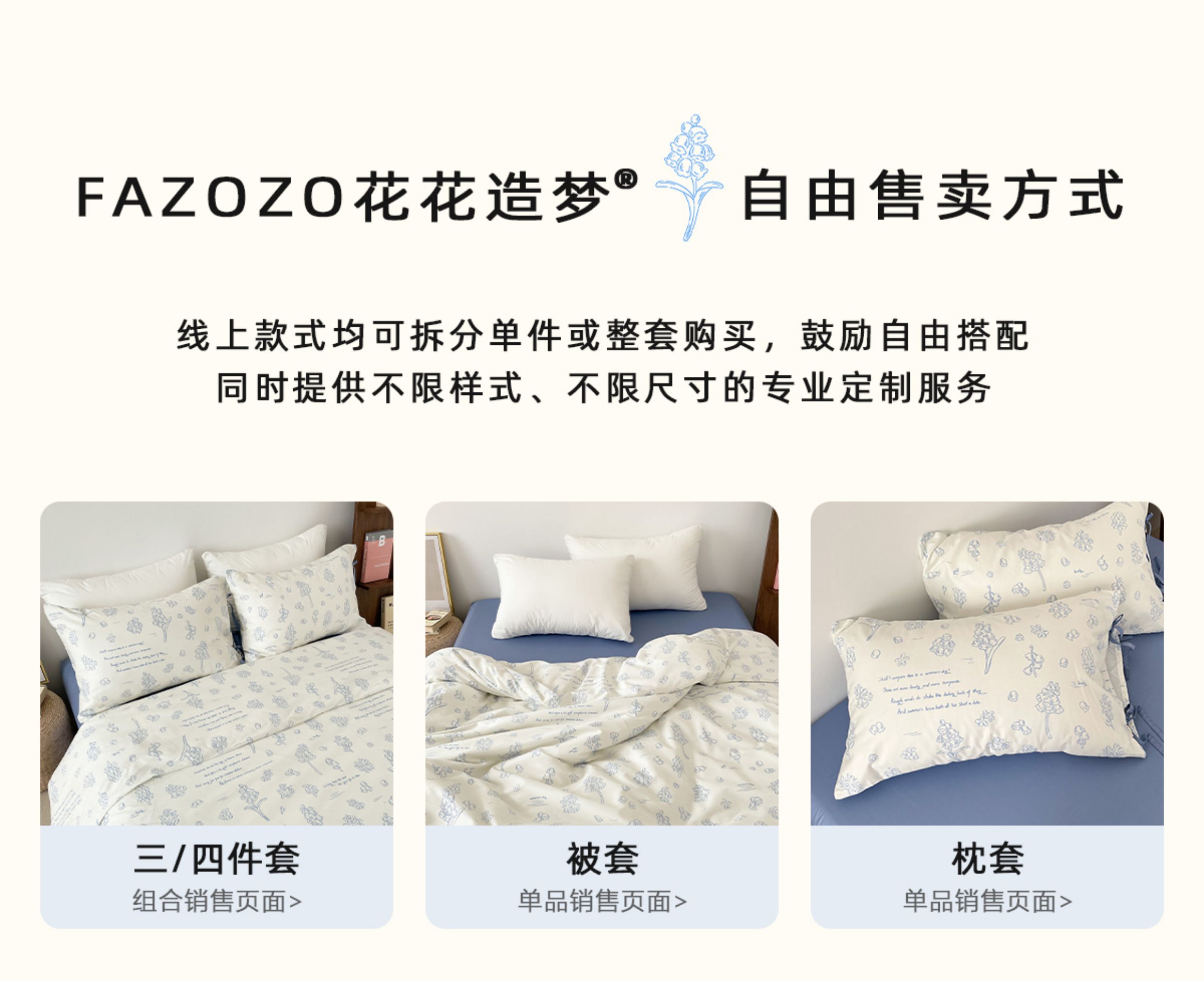 手寫風信子 原創藍白色植物插畫床單床包單件純棉100全棉四季通用