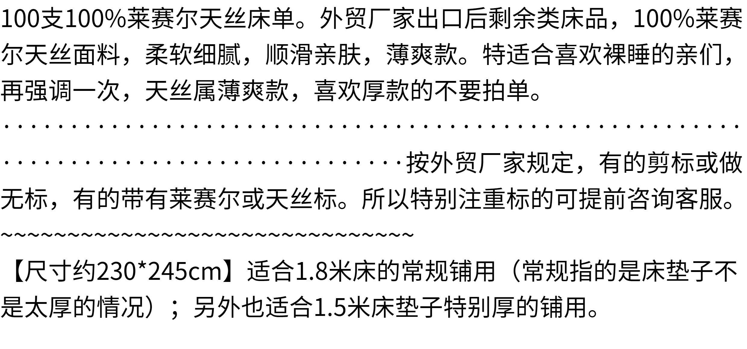 100支tencel萊賽爾天絲睡單柔滑親膚裸睡涼感床單1.5米1.8m床