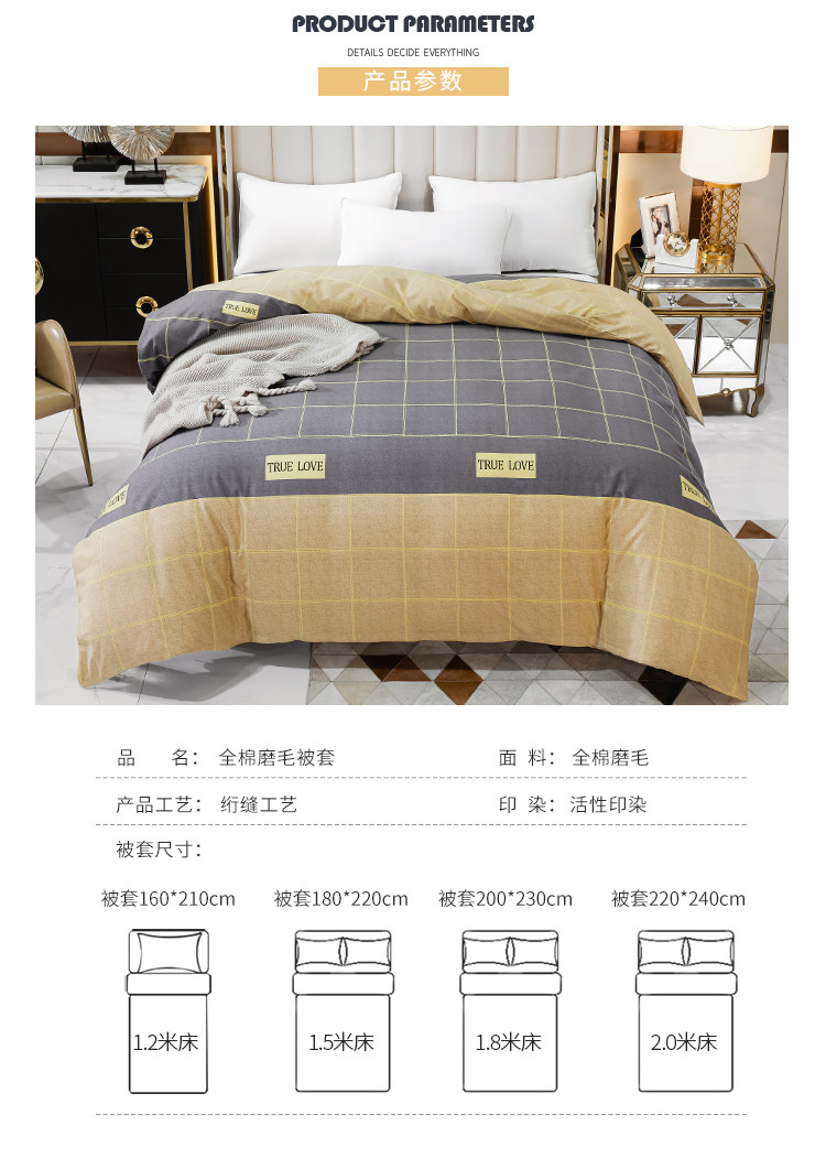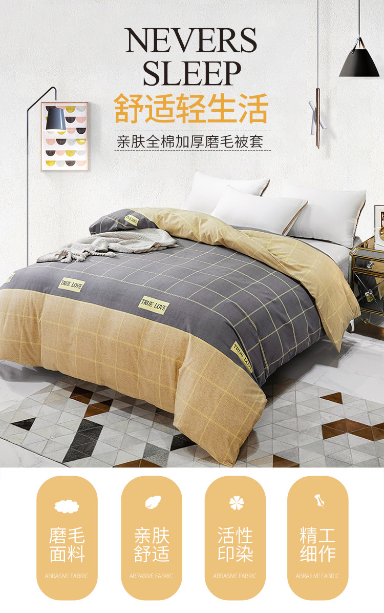 純棉磨毛被套單件1.2/1.5/1.8/2m床品宿捨簡約加厚被罩200x230