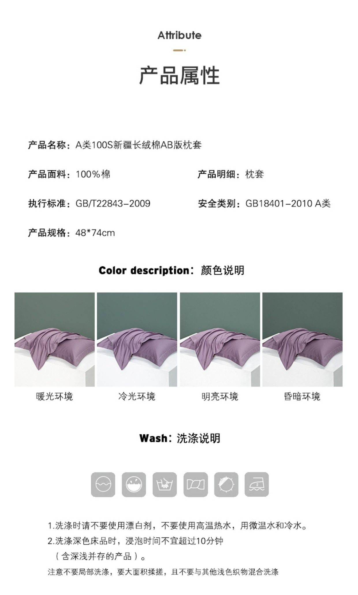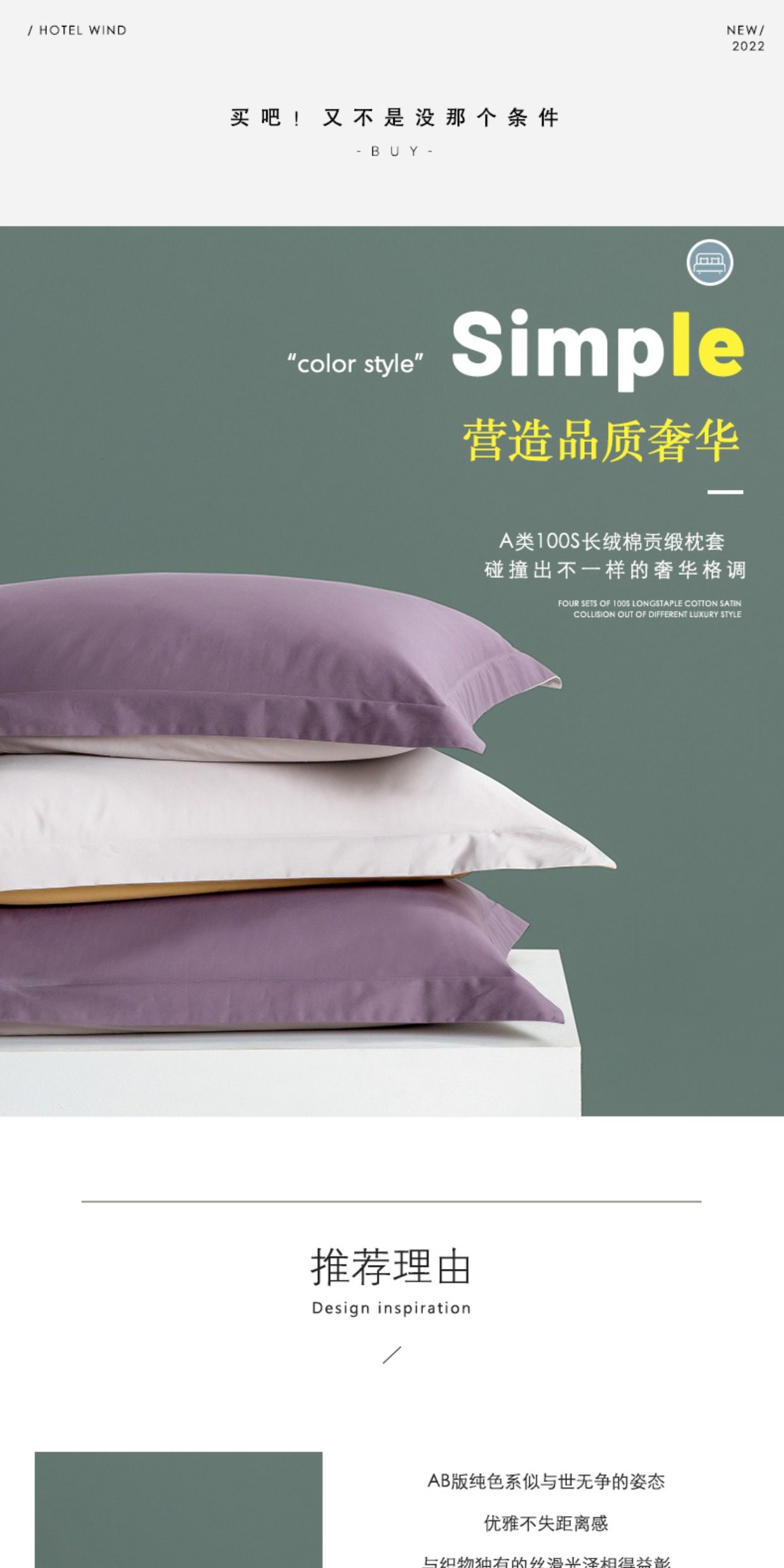 ROLAND LIVEA類全棉單枕套貢緞純棉絲滑簡約枕套單人枕頭套