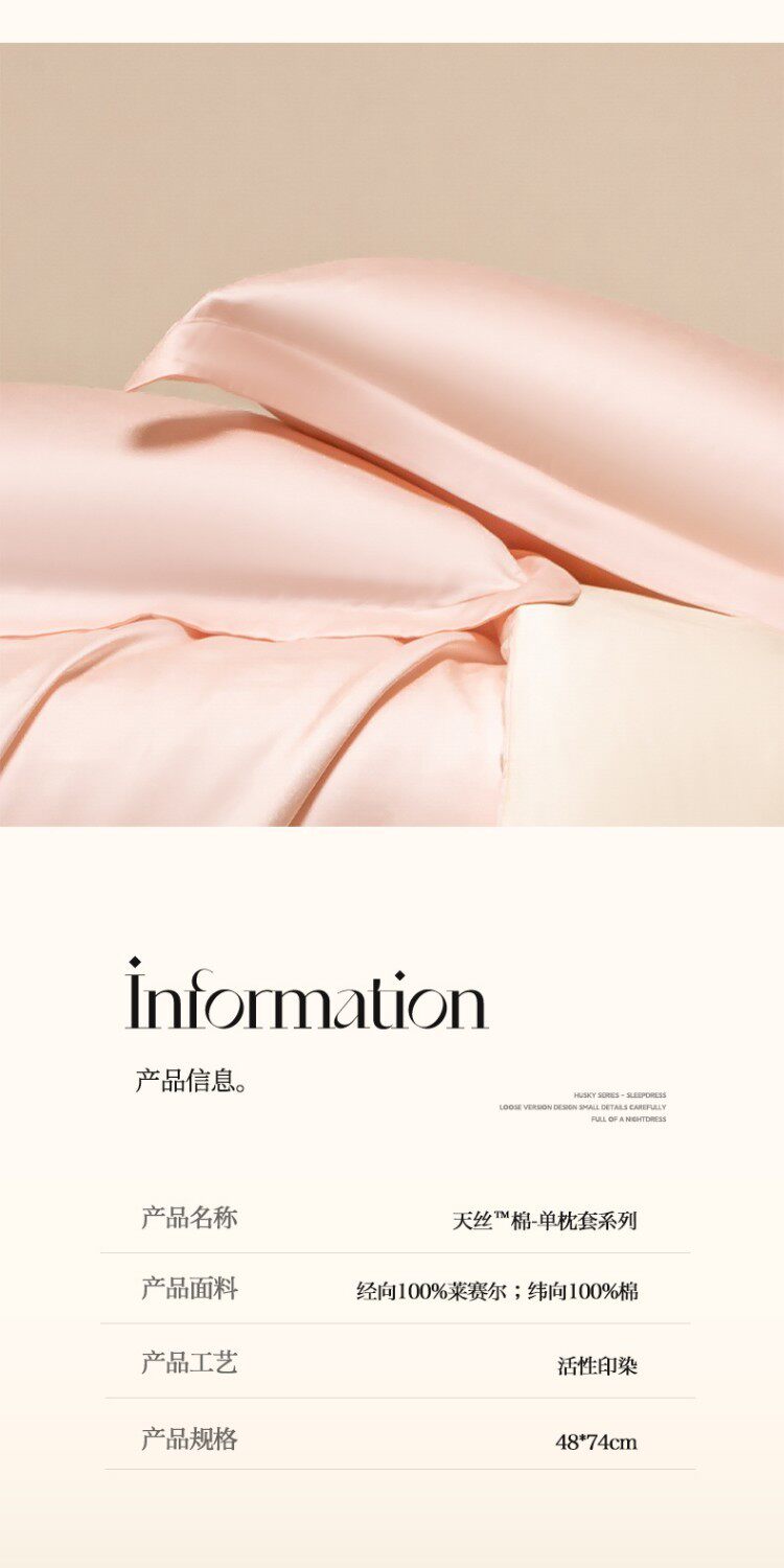 輕奢萊賽爾天絲棉枕套一對裝純色酒店100長絨棉全棉枕頭套48*74cm