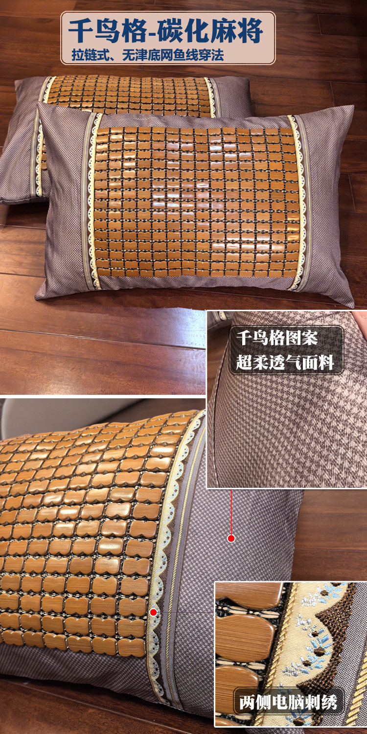 優質楠竹碳化麻將竹枕套雙面冰絲夏季枕套不夾頭夏涼枕套冰爽光滑
