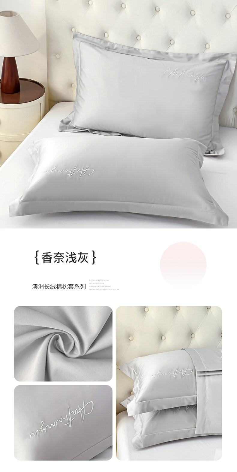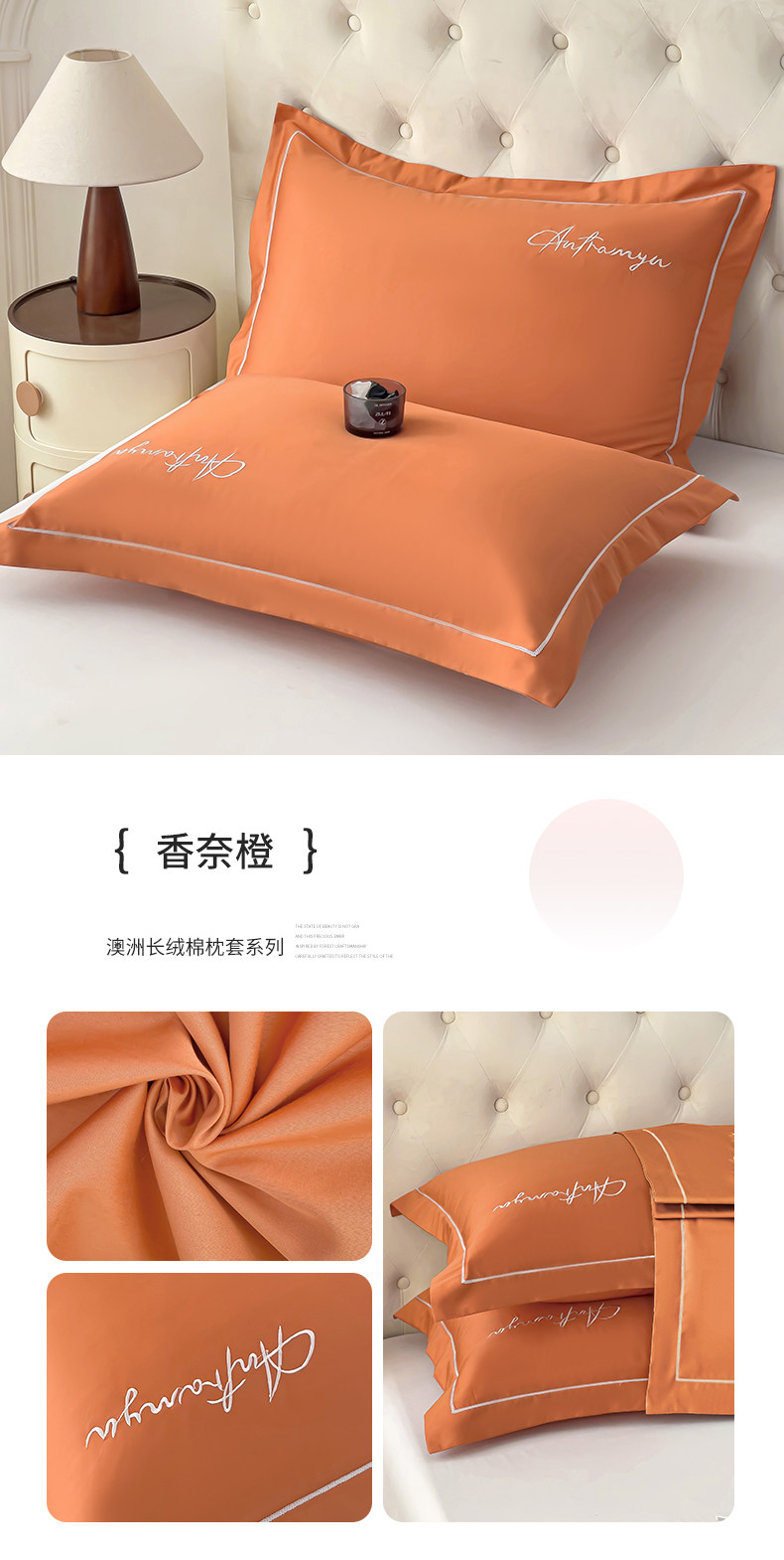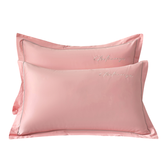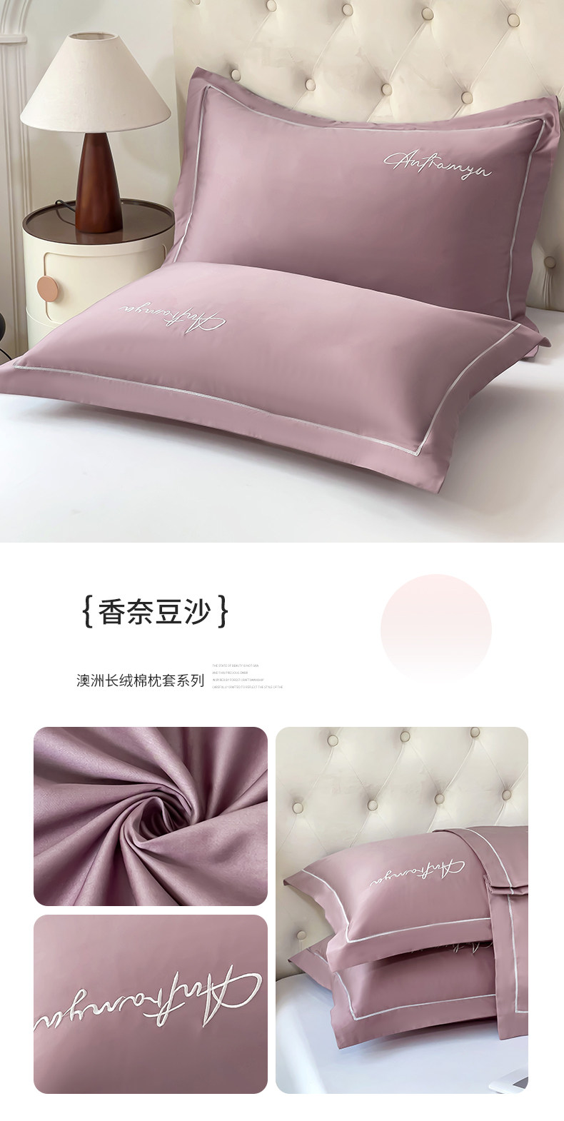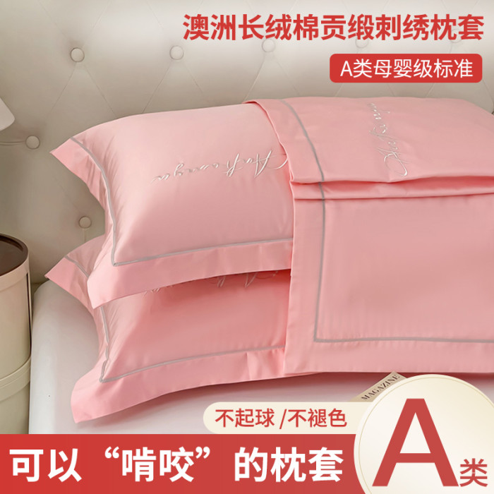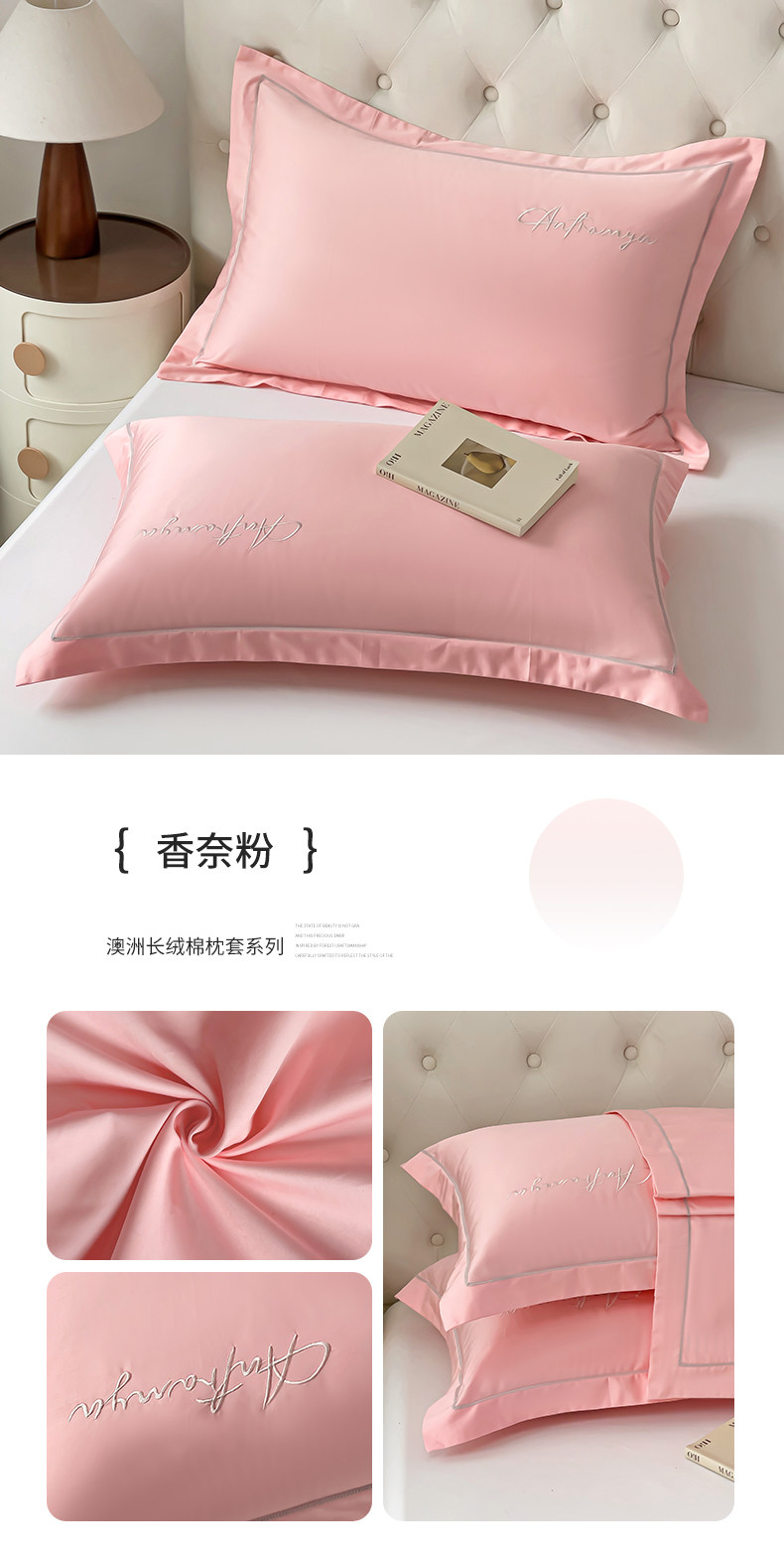 夏季澳洲100支長絨棉全棉純棉枕套一對裝家用純色刺綉枕頭套粉色
