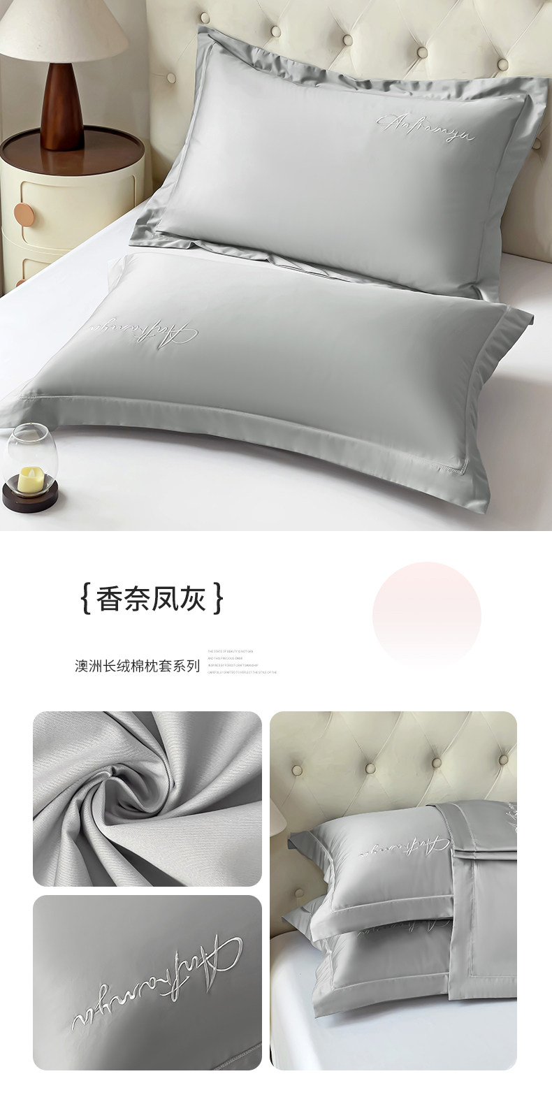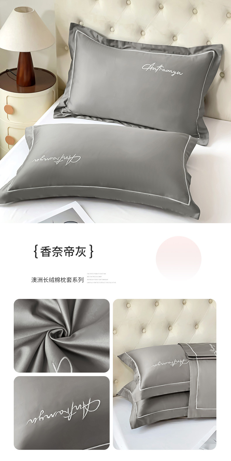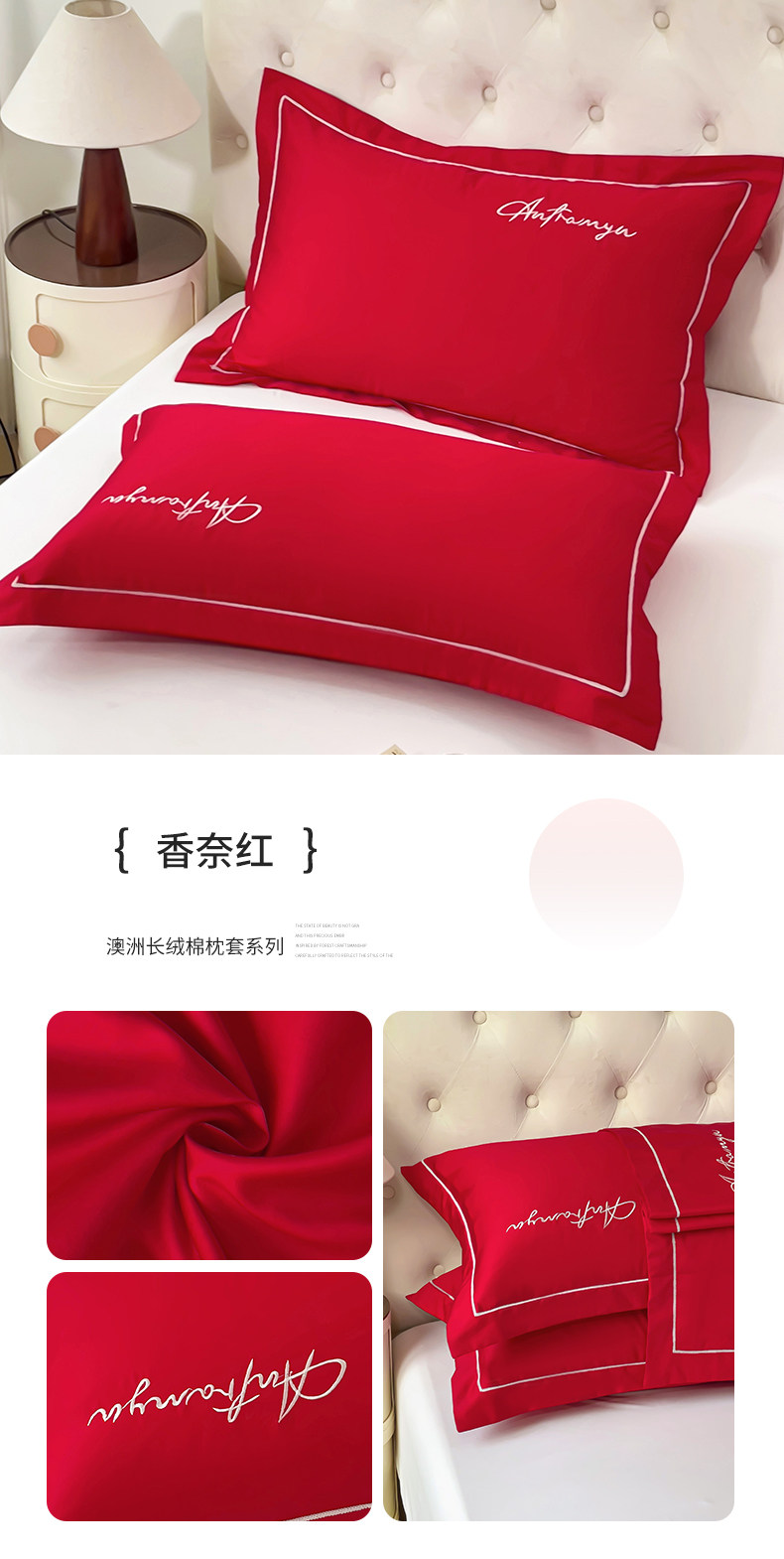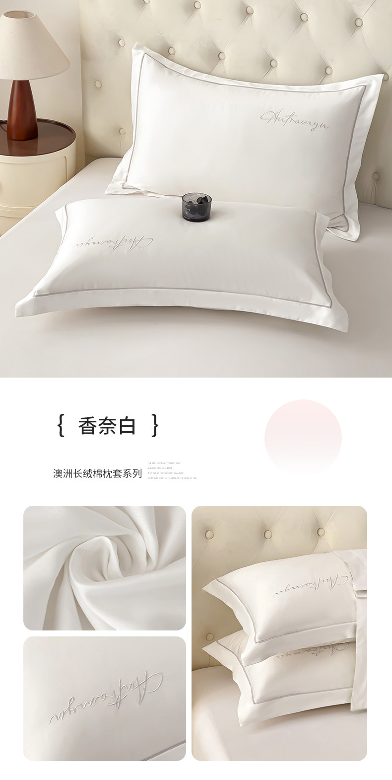 夏季澳洲100支長絨棉全棉純棉枕套一對裝家用純色刺綉枕頭套粉色