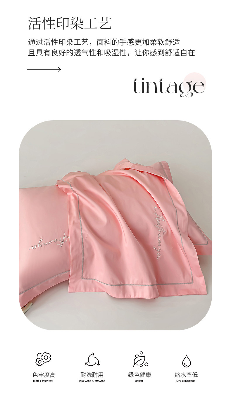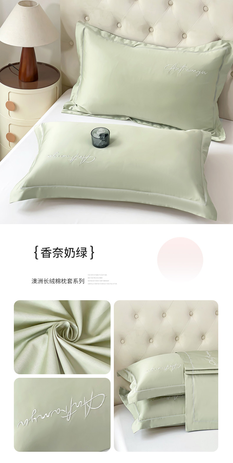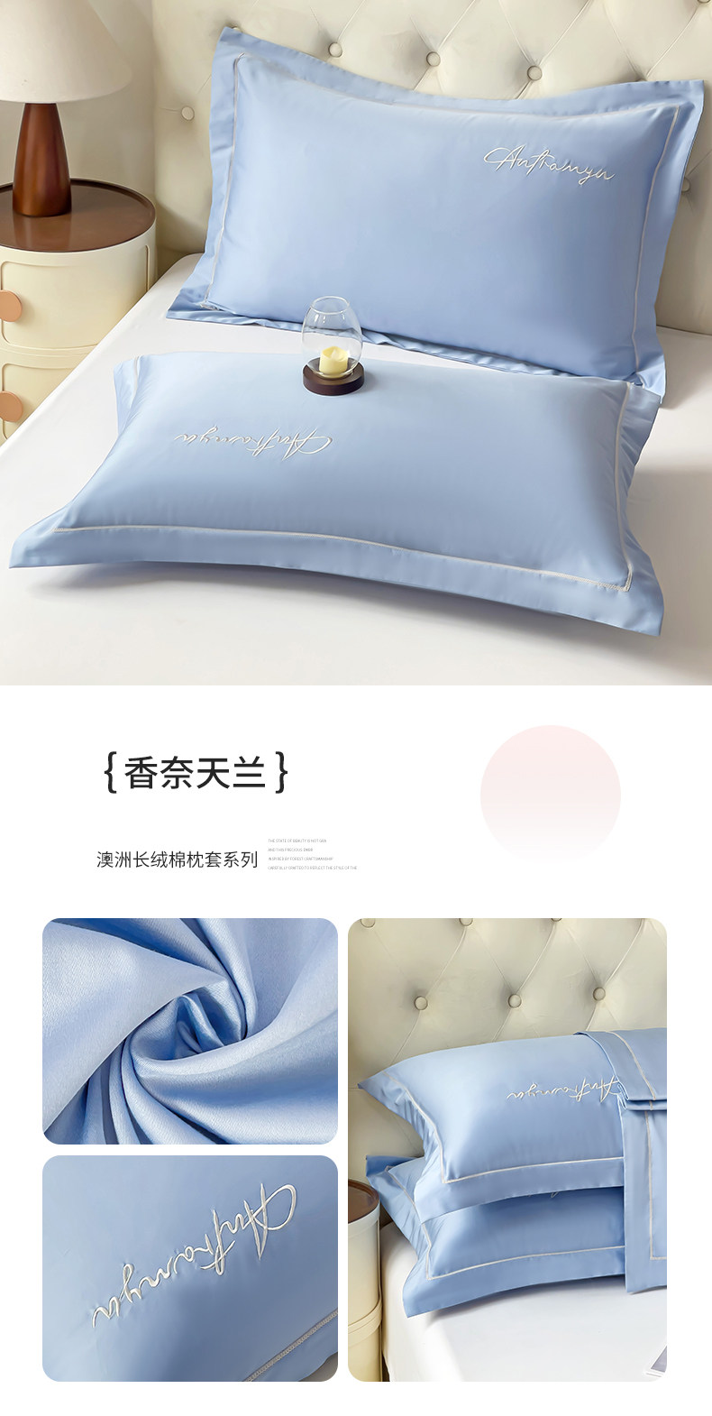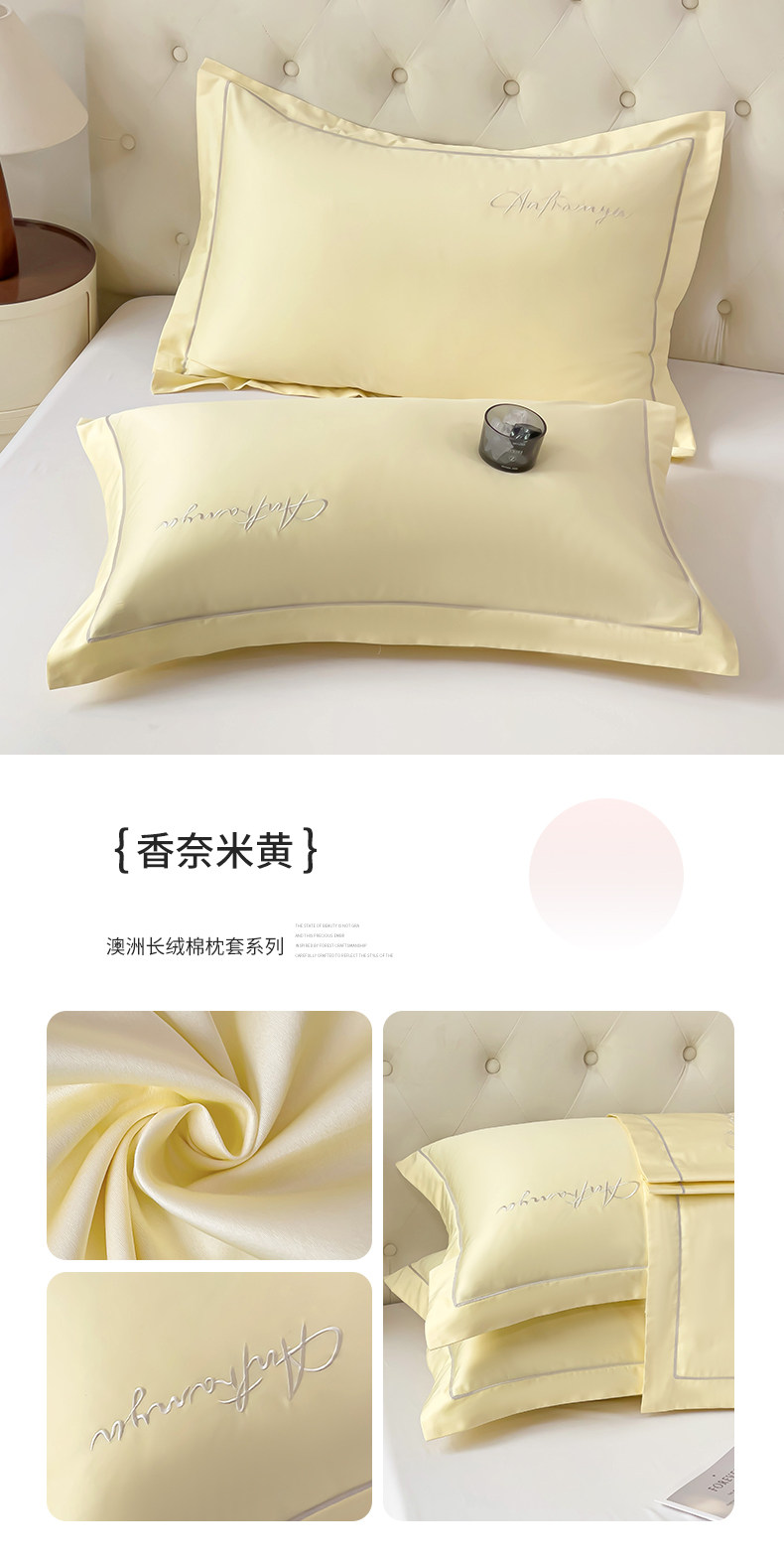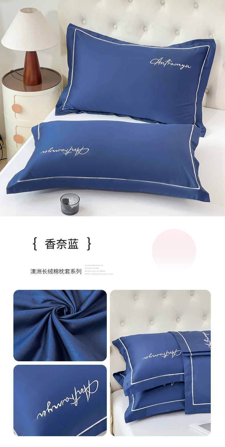 夏季澳洲100支長絨棉全棉純棉枕套一對裝家用純色刺綉枕頭套粉色