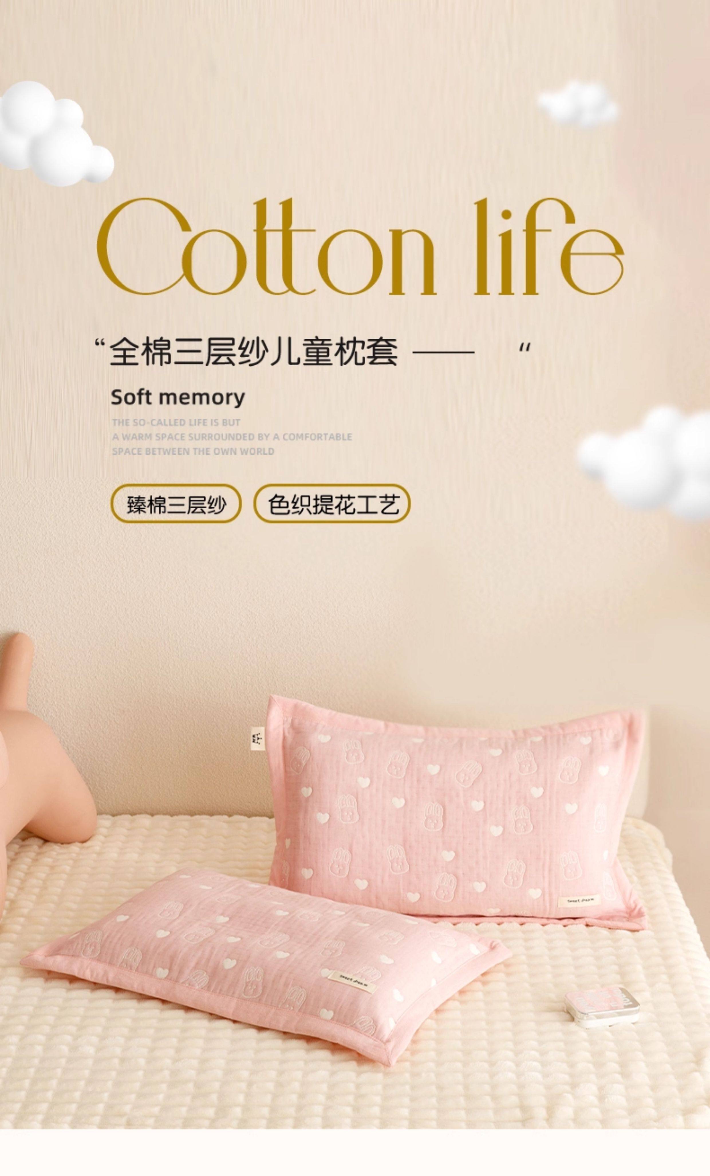 卡通兒童三層紗布枕套乳膠枕頭套純棉枕芯套40x60學生寶寶30x50cm