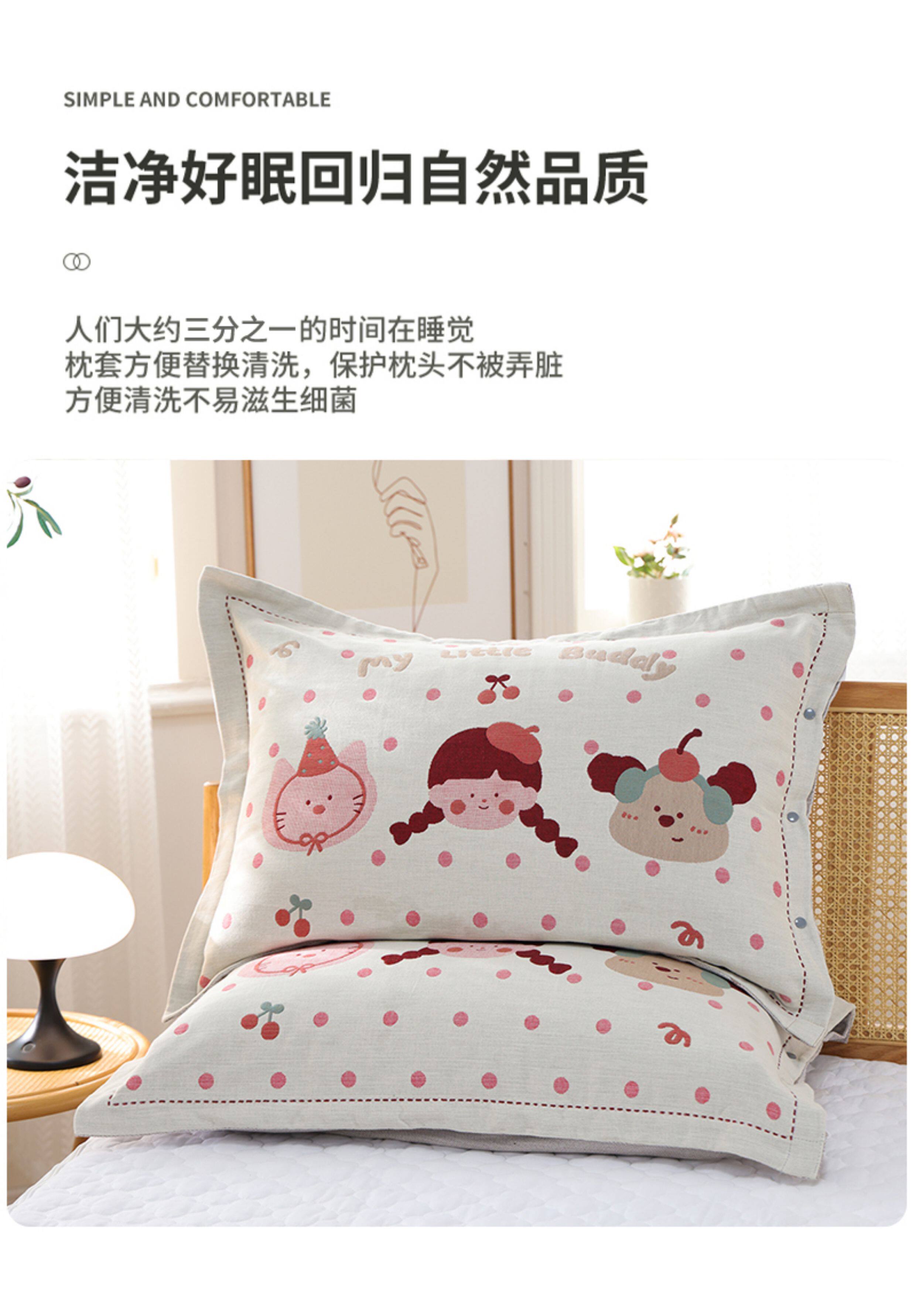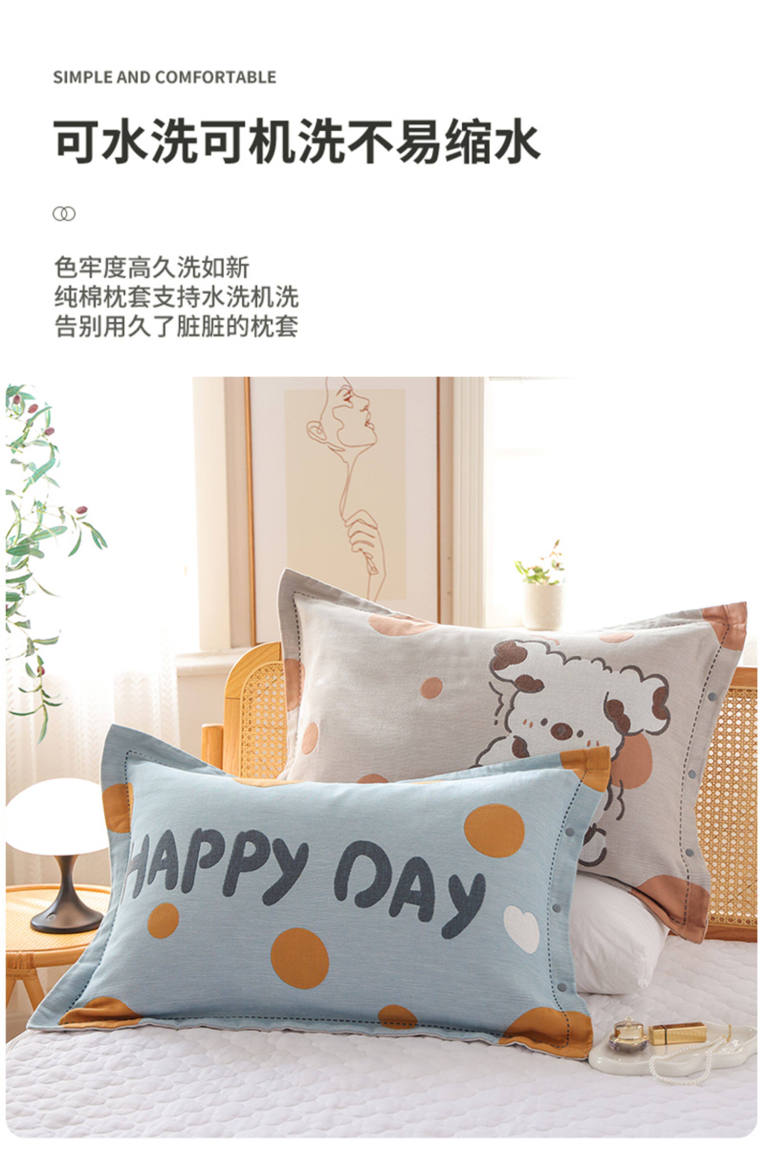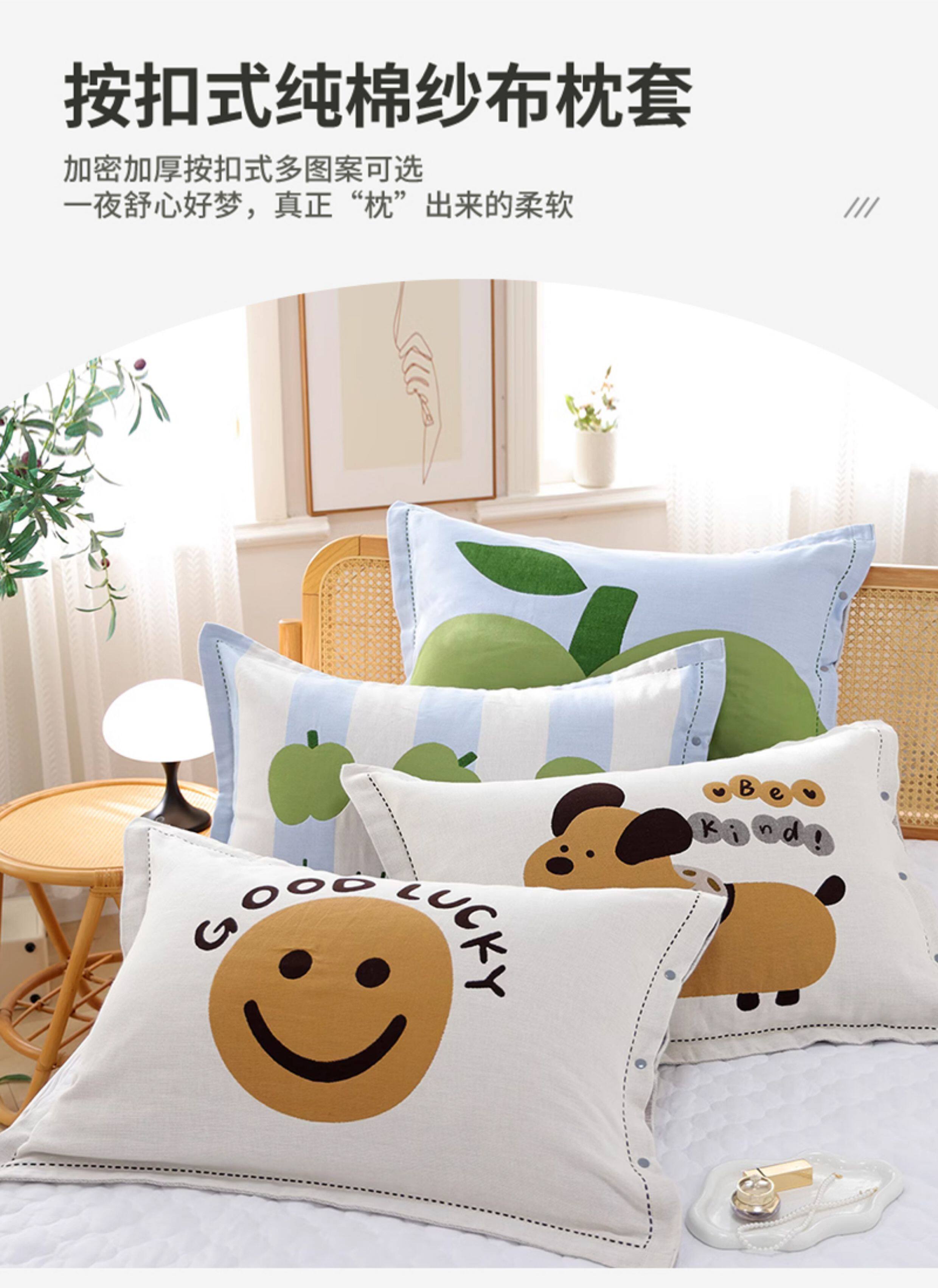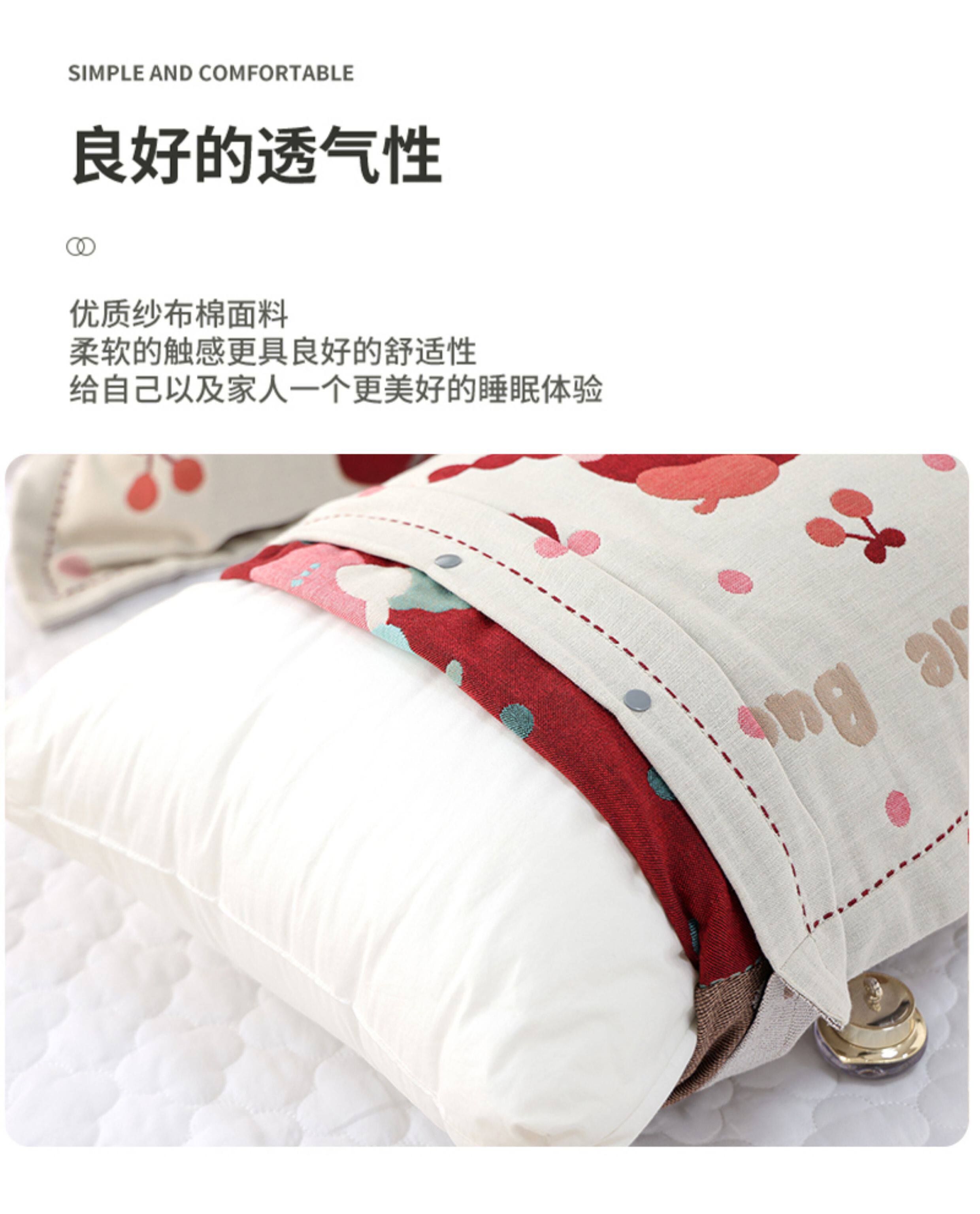 按釦純棉紗布枕套一對裝四季通用成人枕頭套家用加厚款全棉內膽套