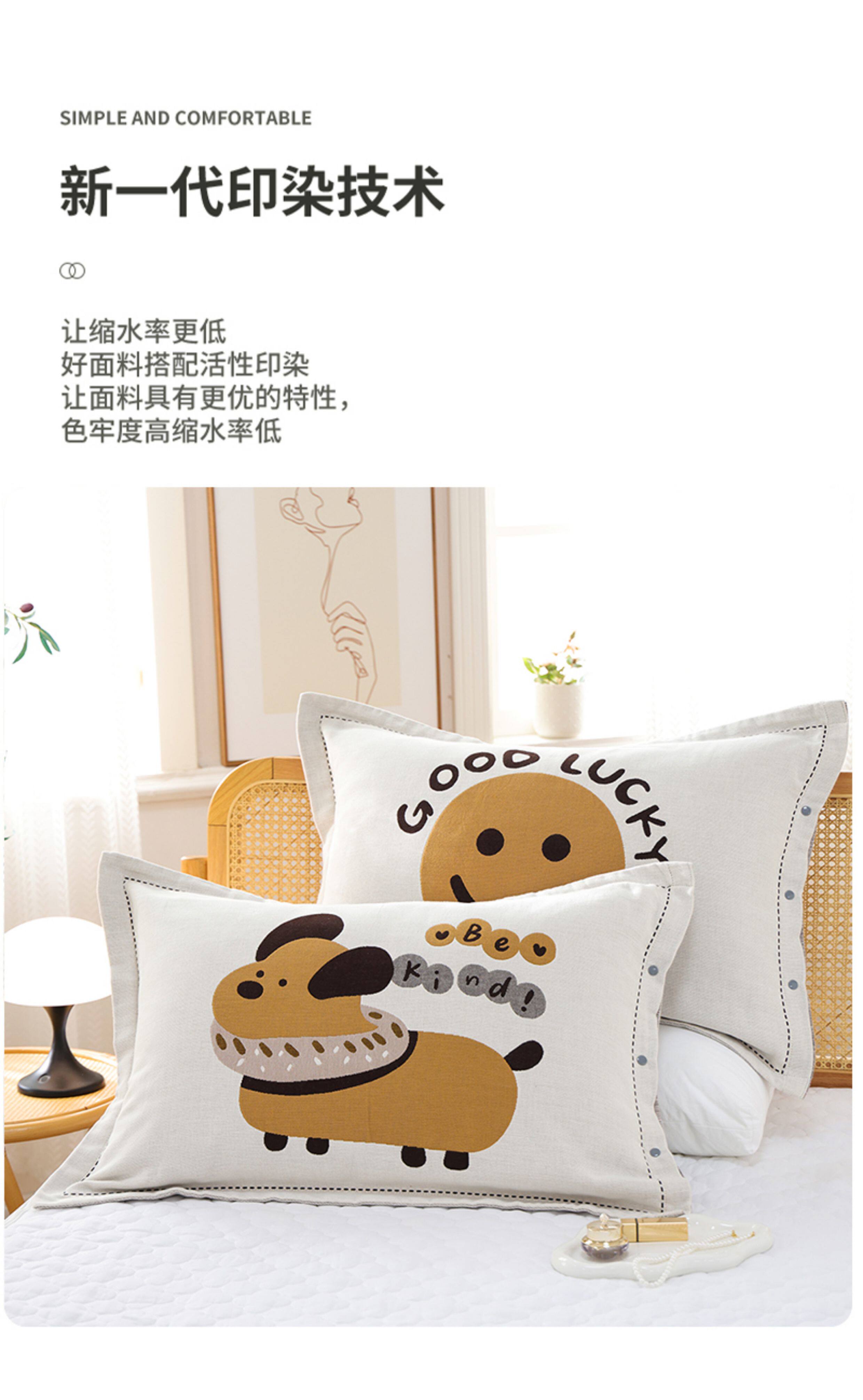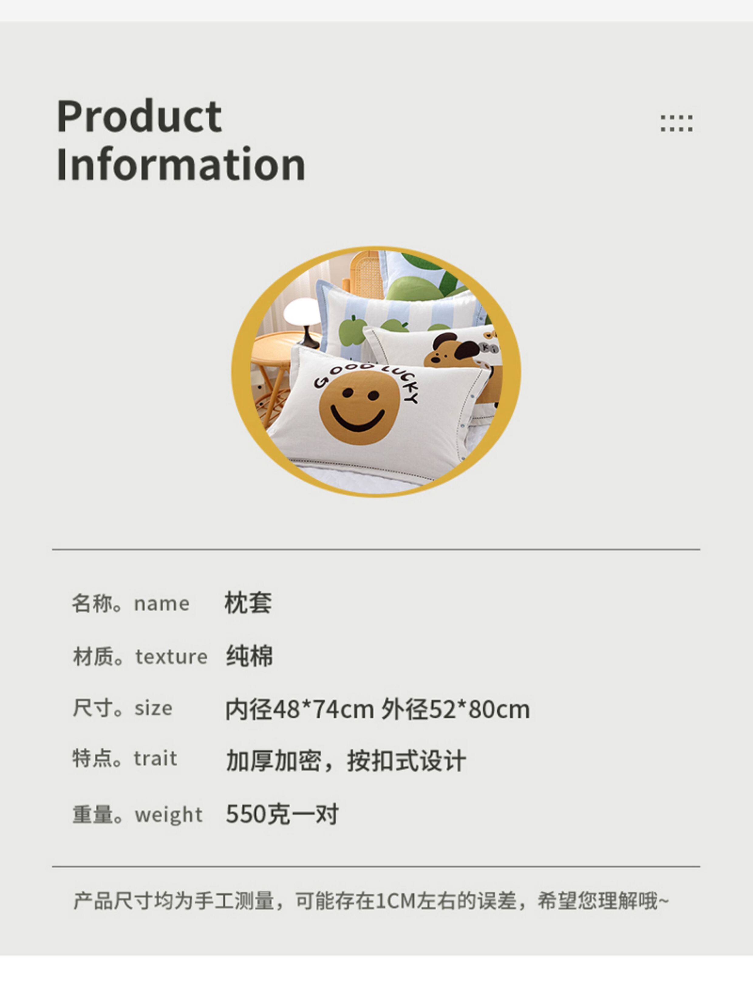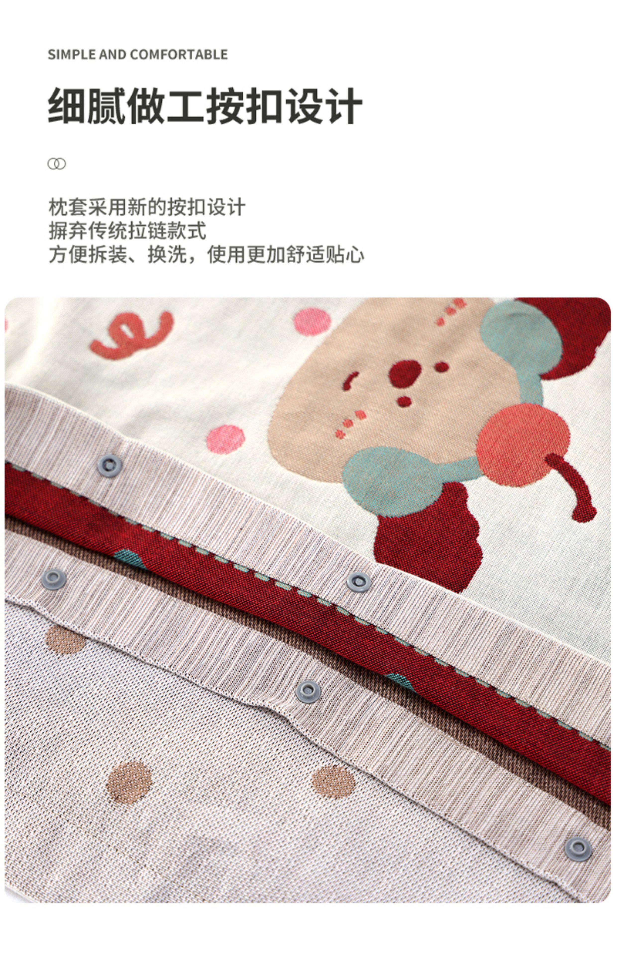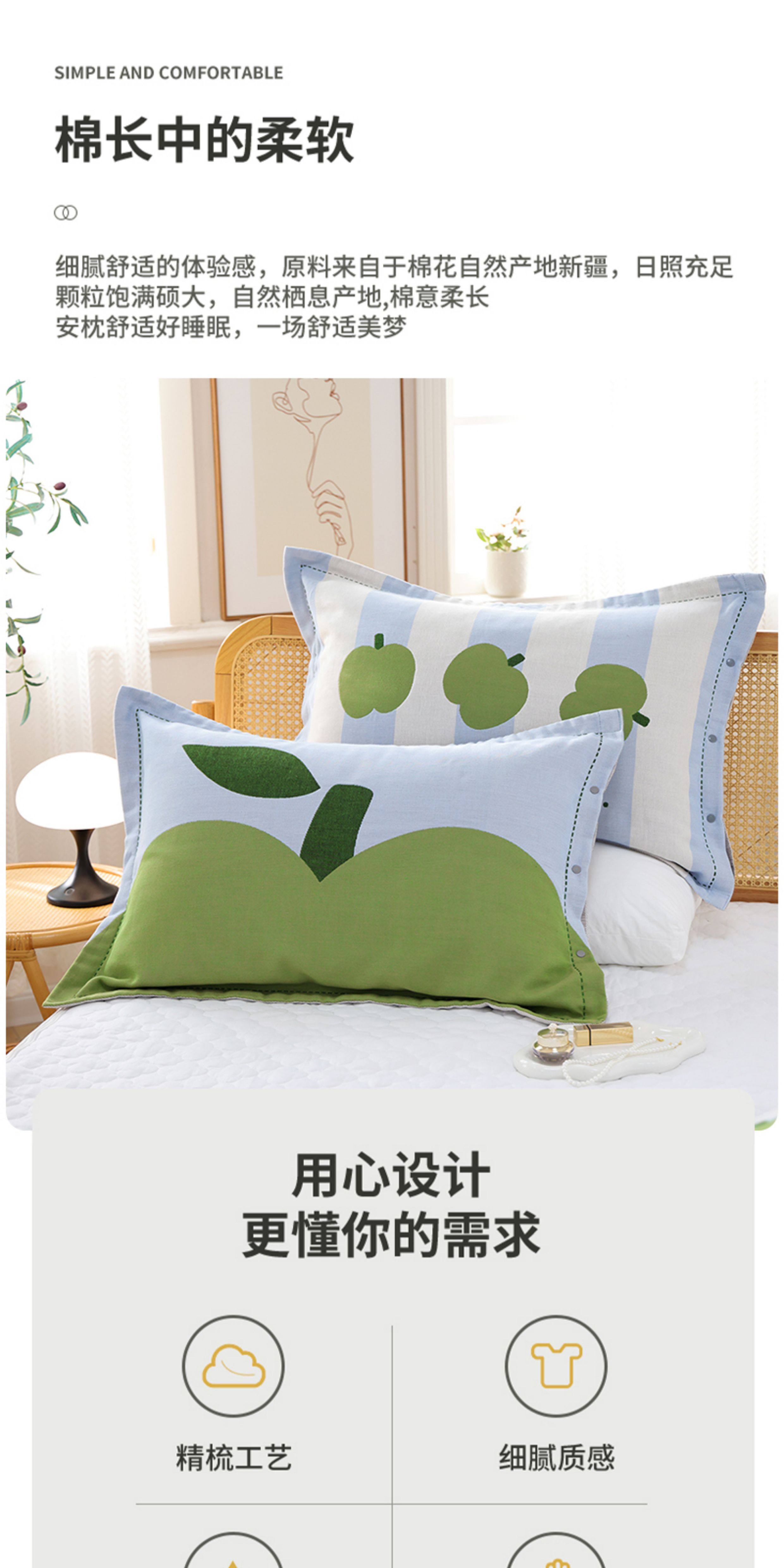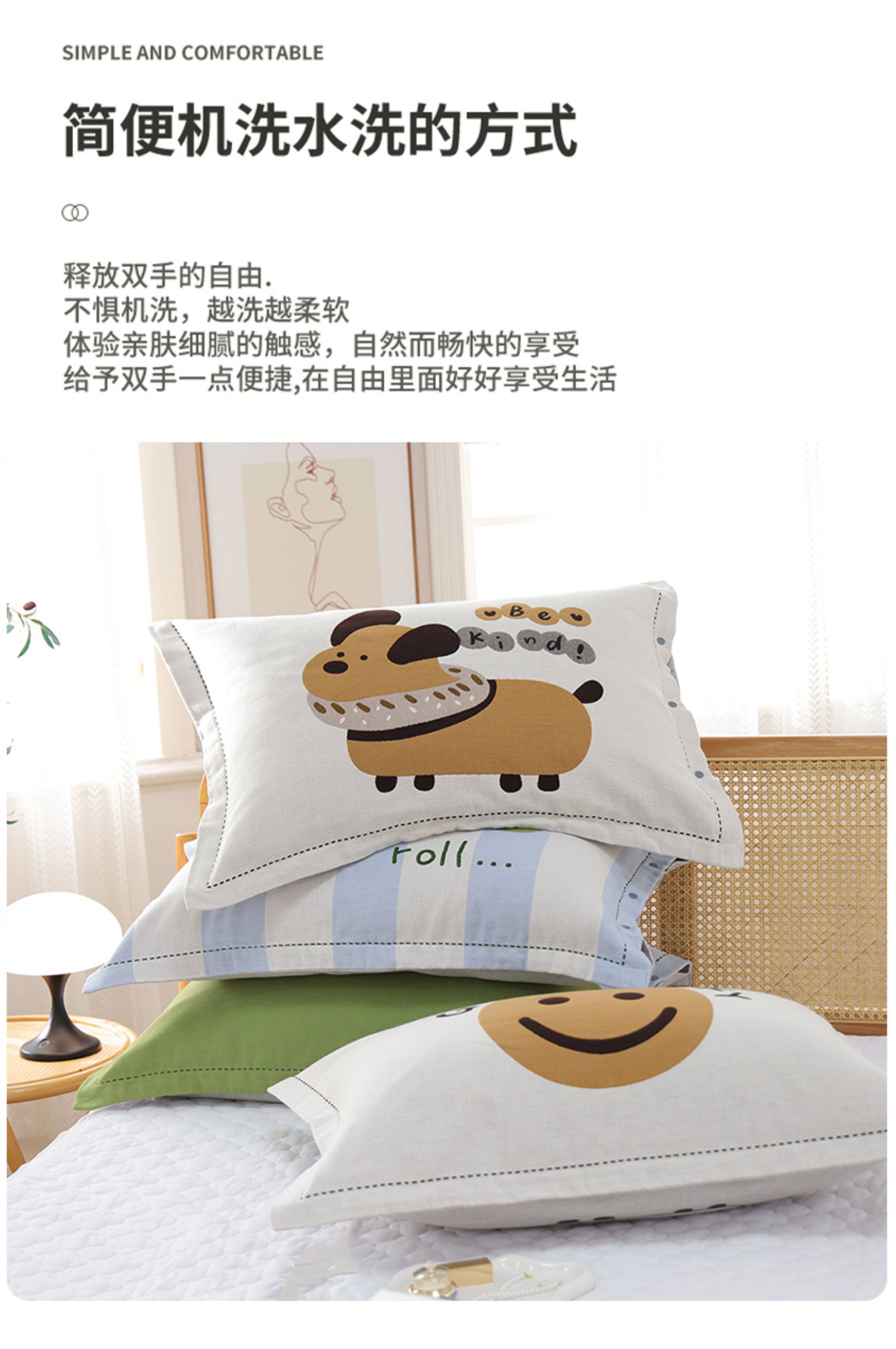 按釦純棉紗布枕套一對裝四季通用成人枕頭套家用加厚款全棉內膽套