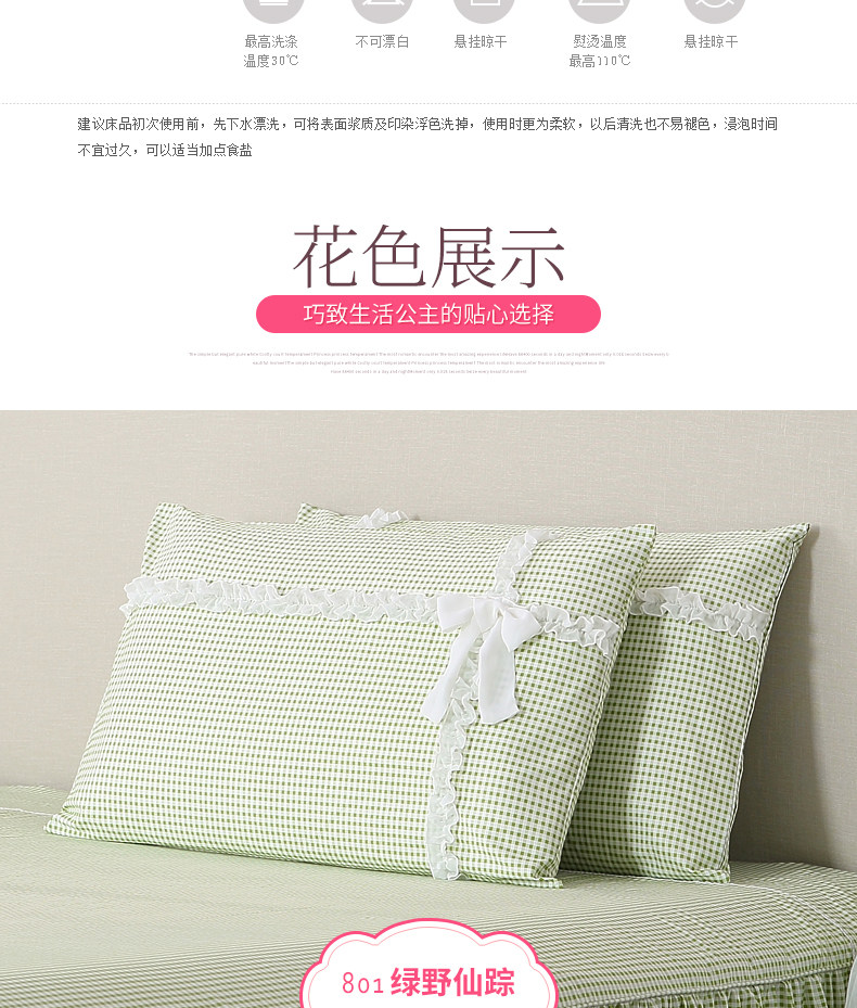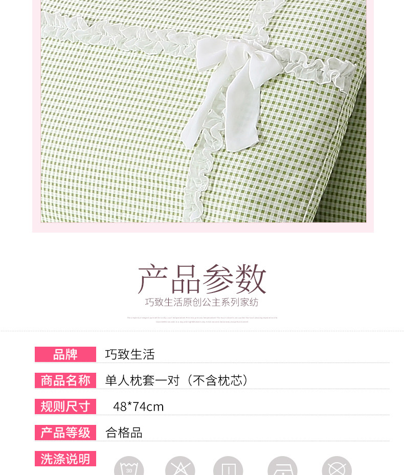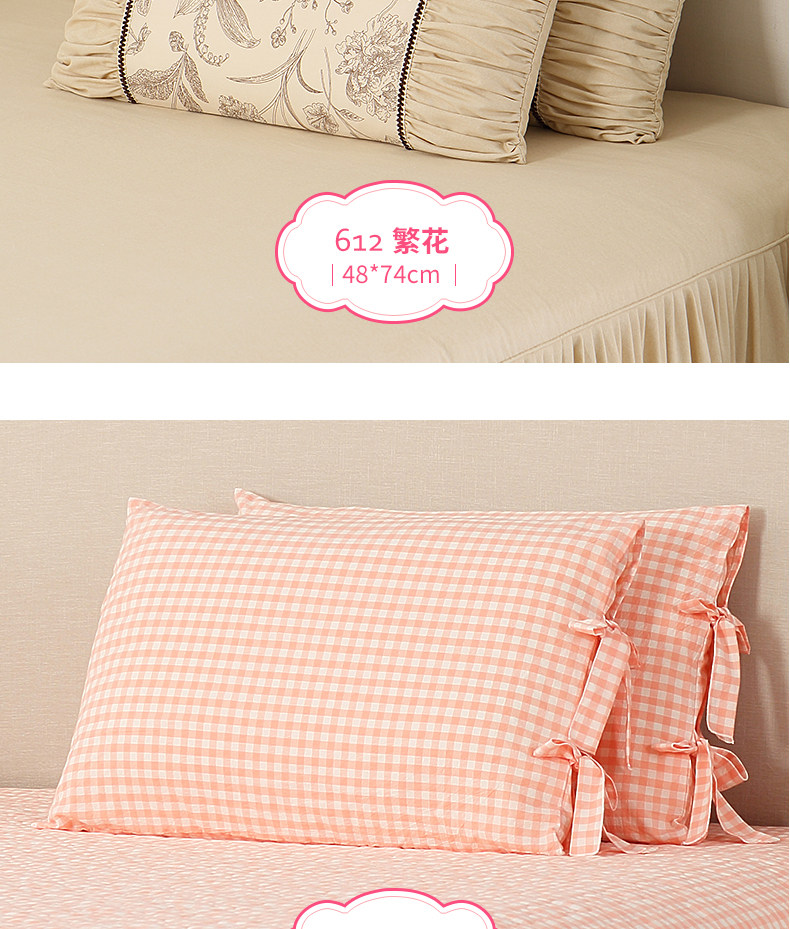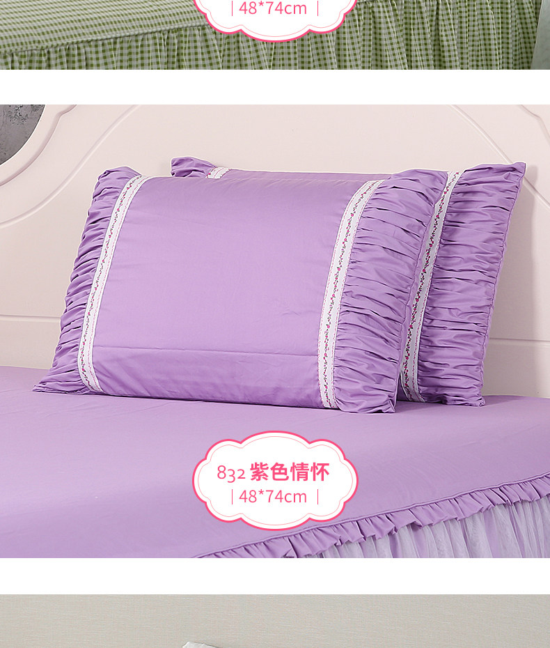 巧致生活純棉花邊蕾絲枕套枕頭套一對 全棉信封款枕頭套子48*74cm