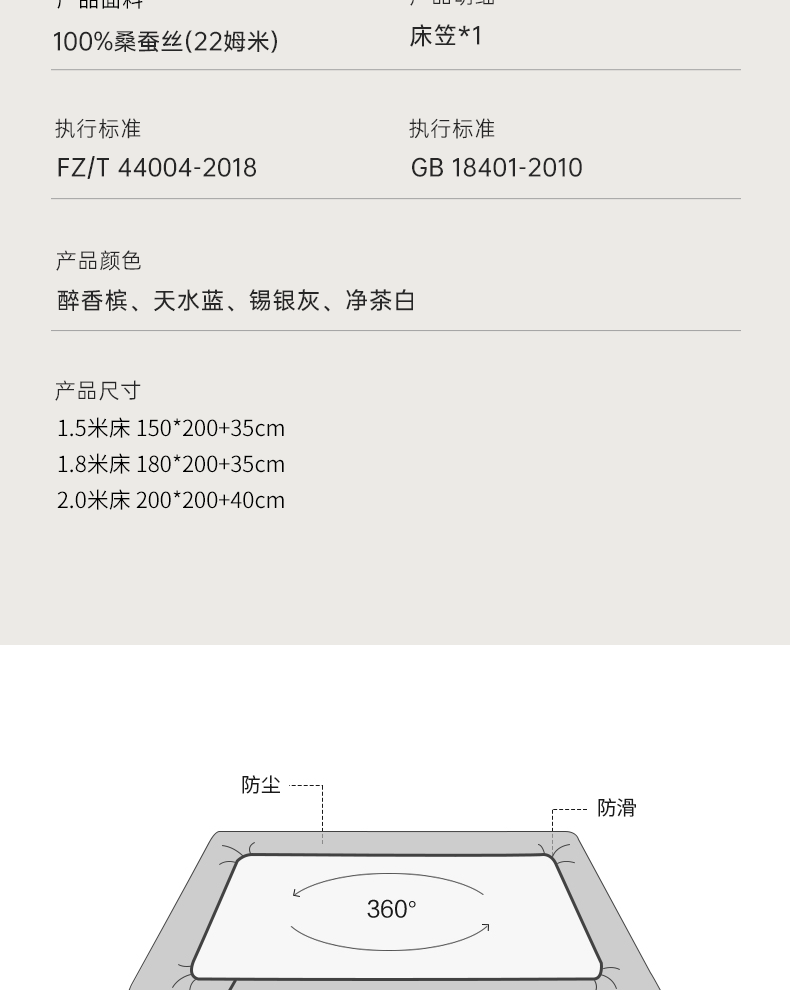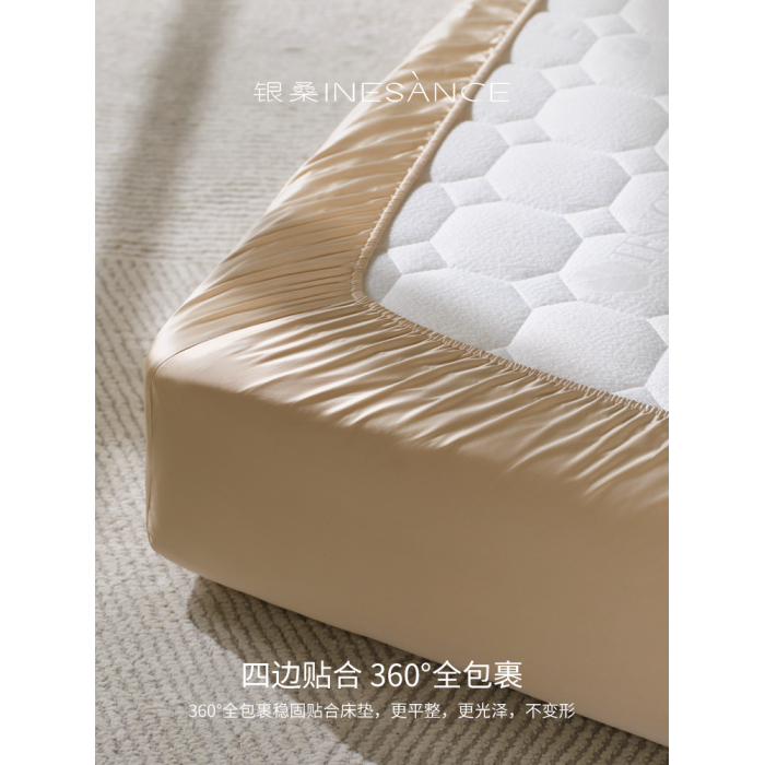 銀桑INESANCE22姆米重磅6A真絲床包高級100%桑蠶絲純色床墊罩床套