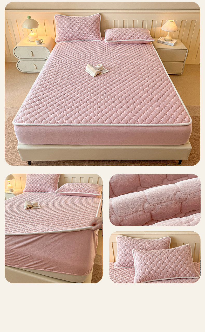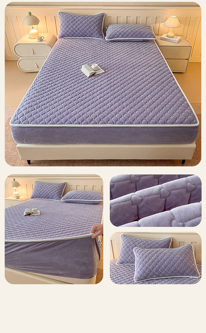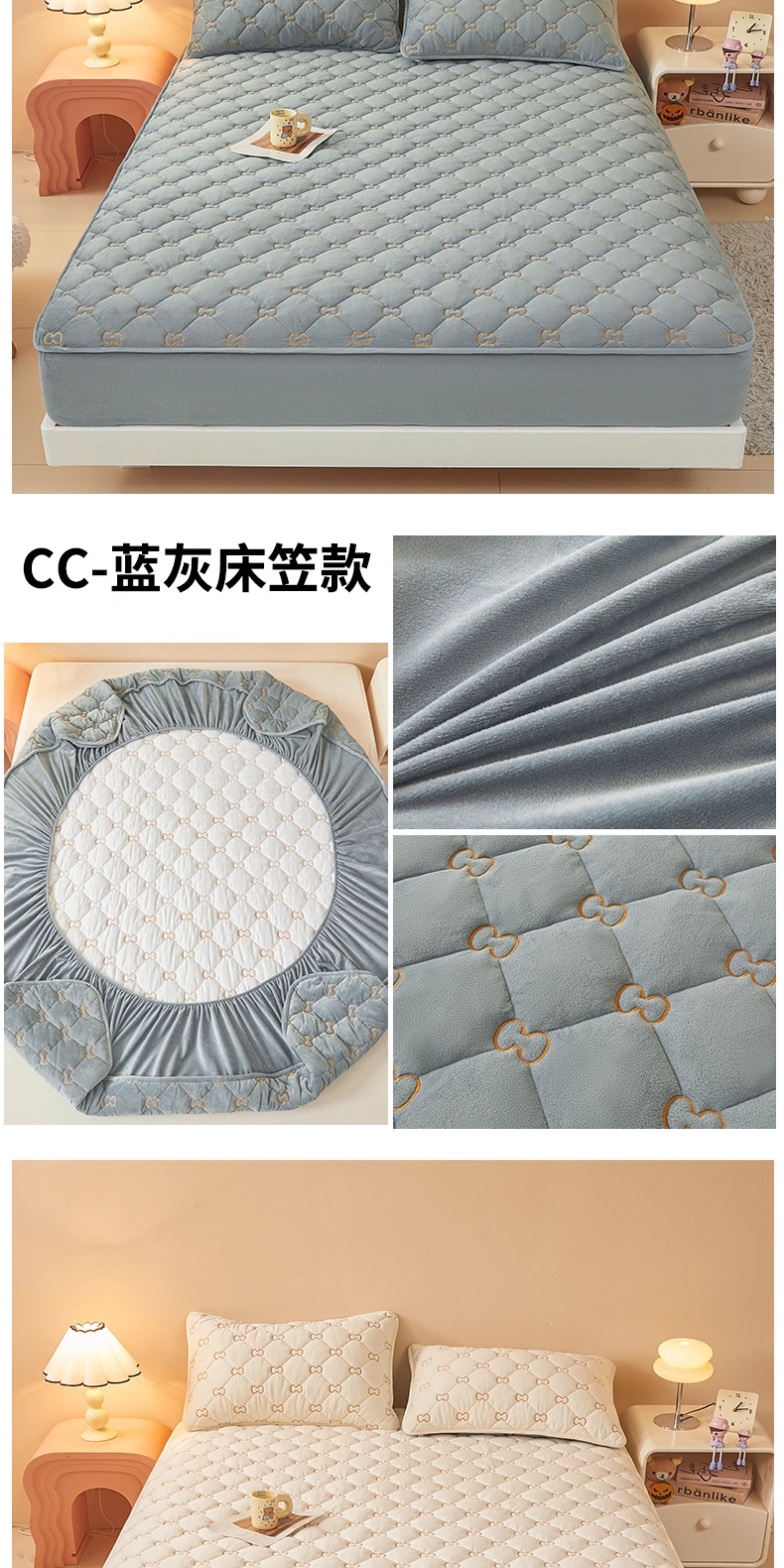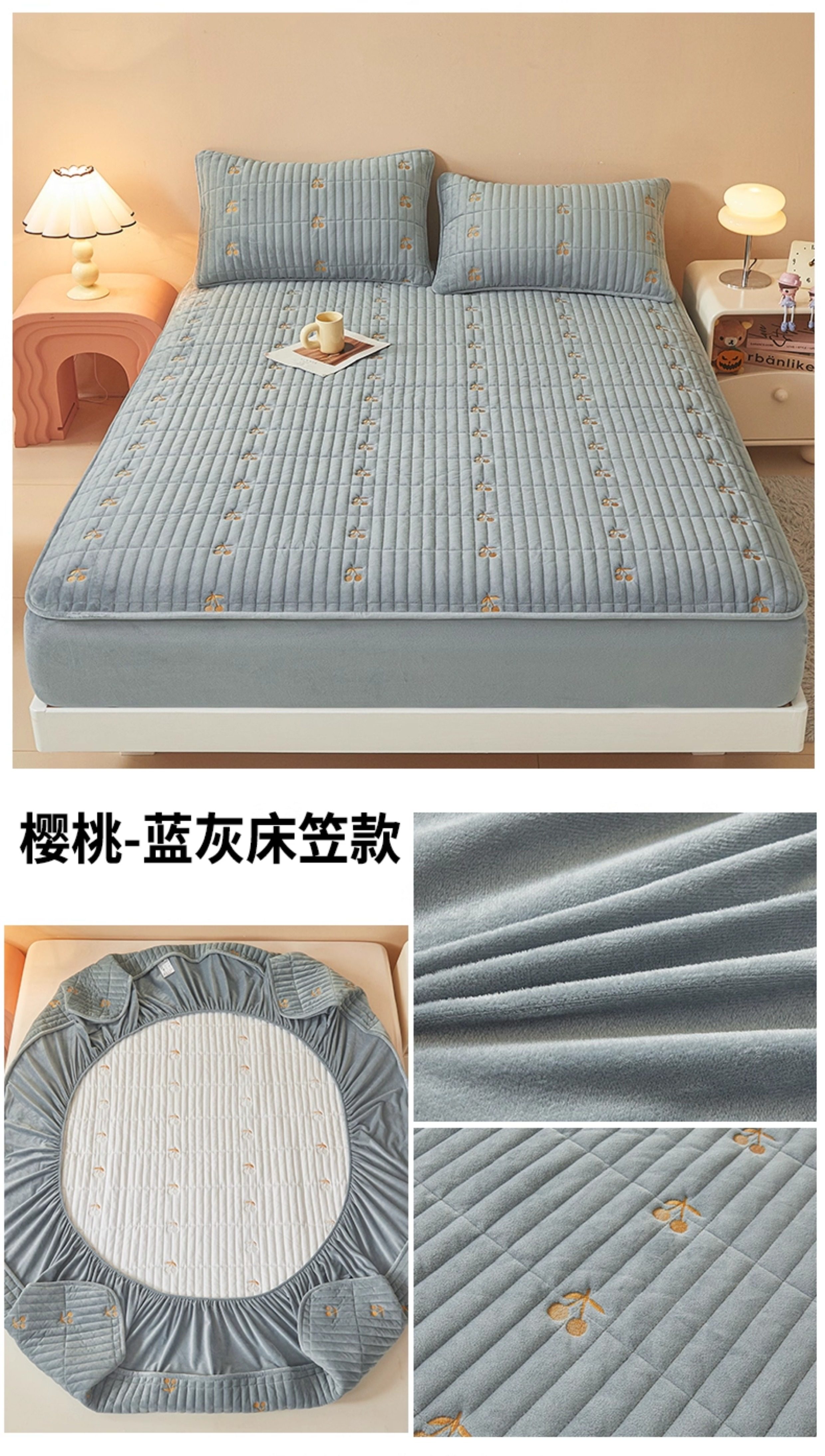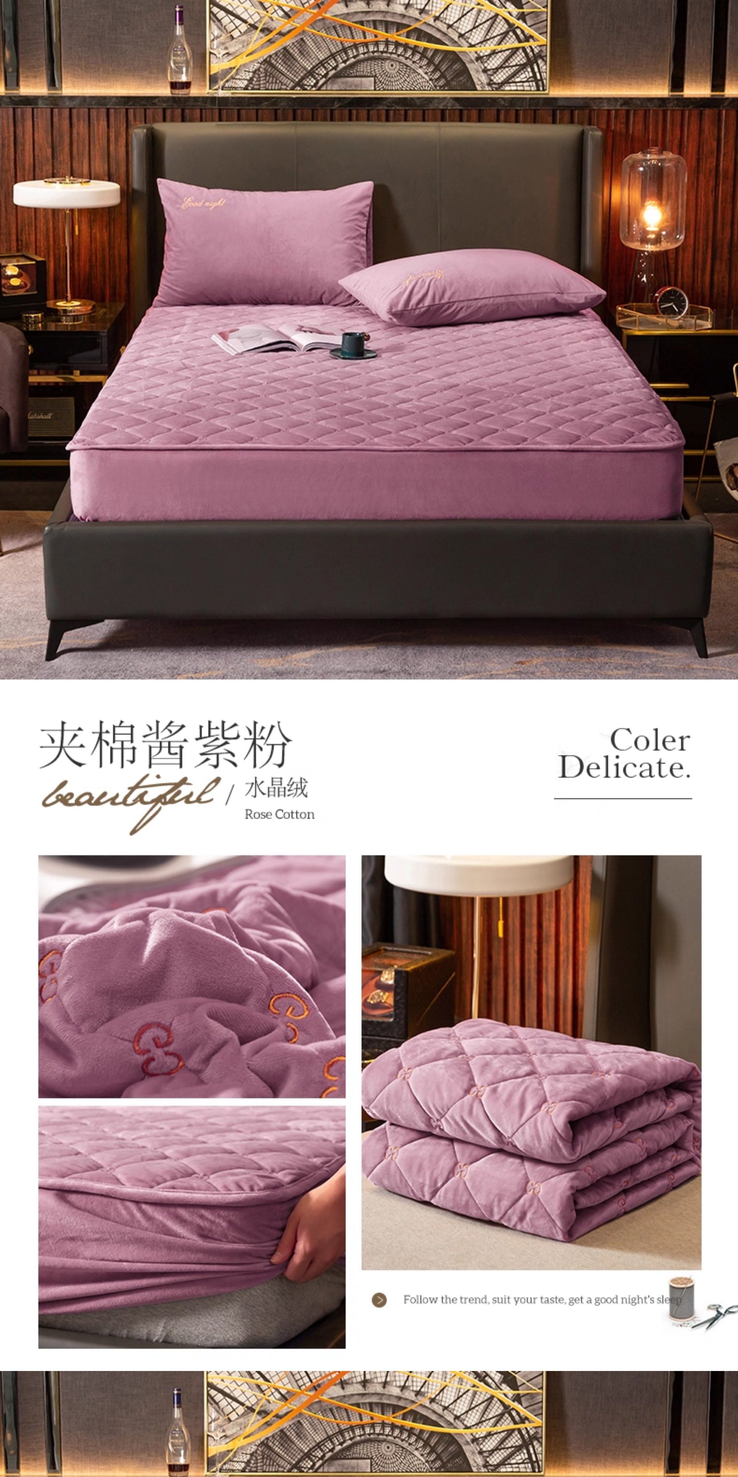 水晶絨夾棉床笠單件牛奶絨冬季加厚床罩床墊套保暖珊瑚絨床立防滑