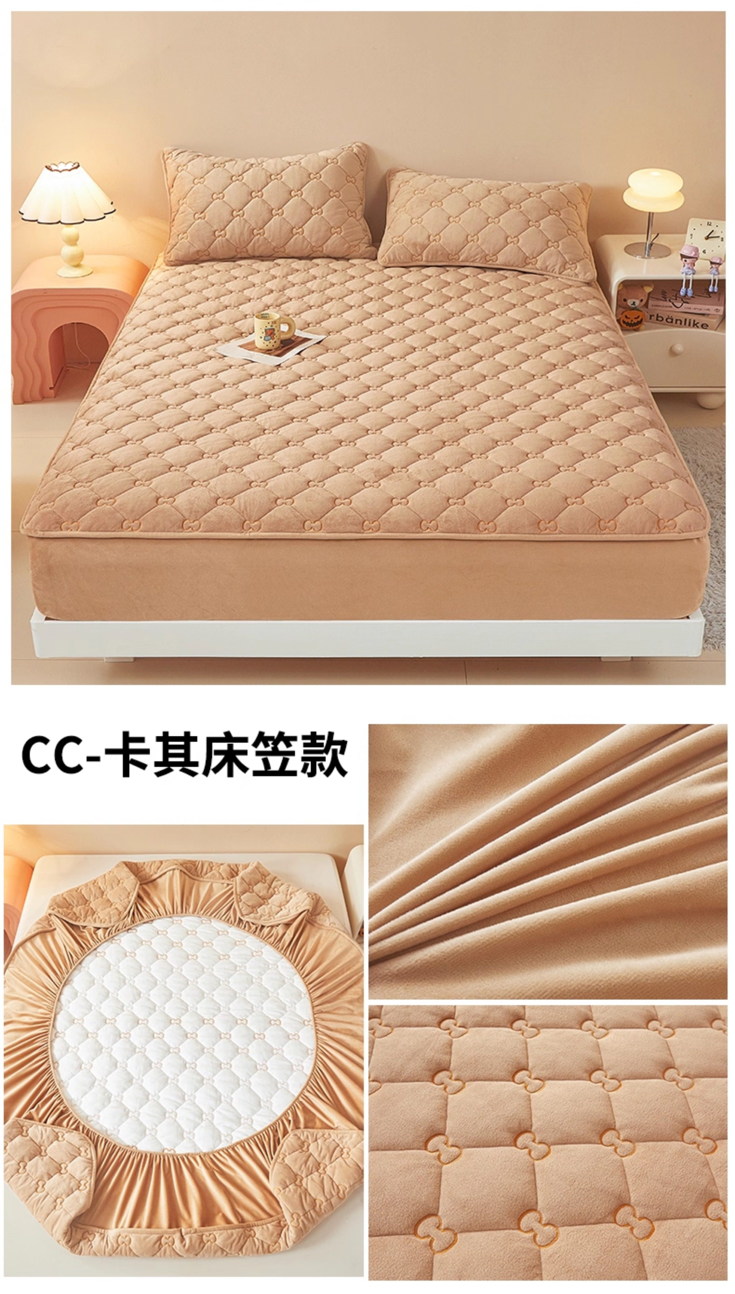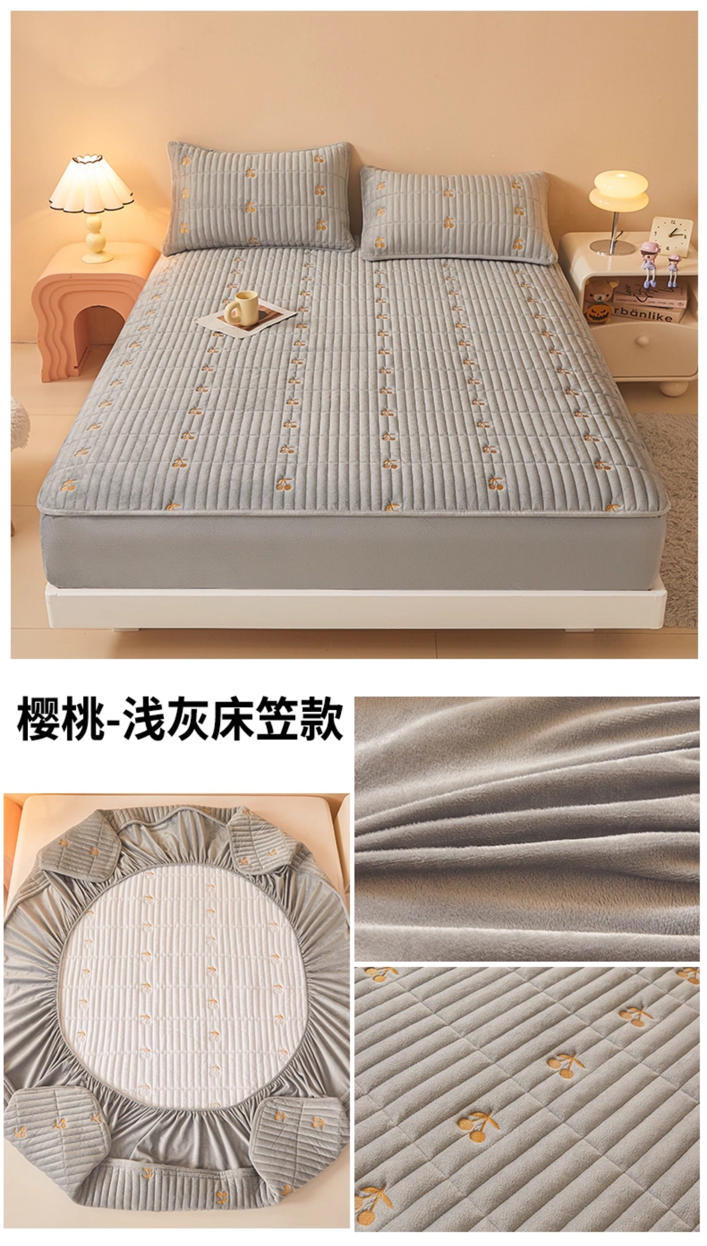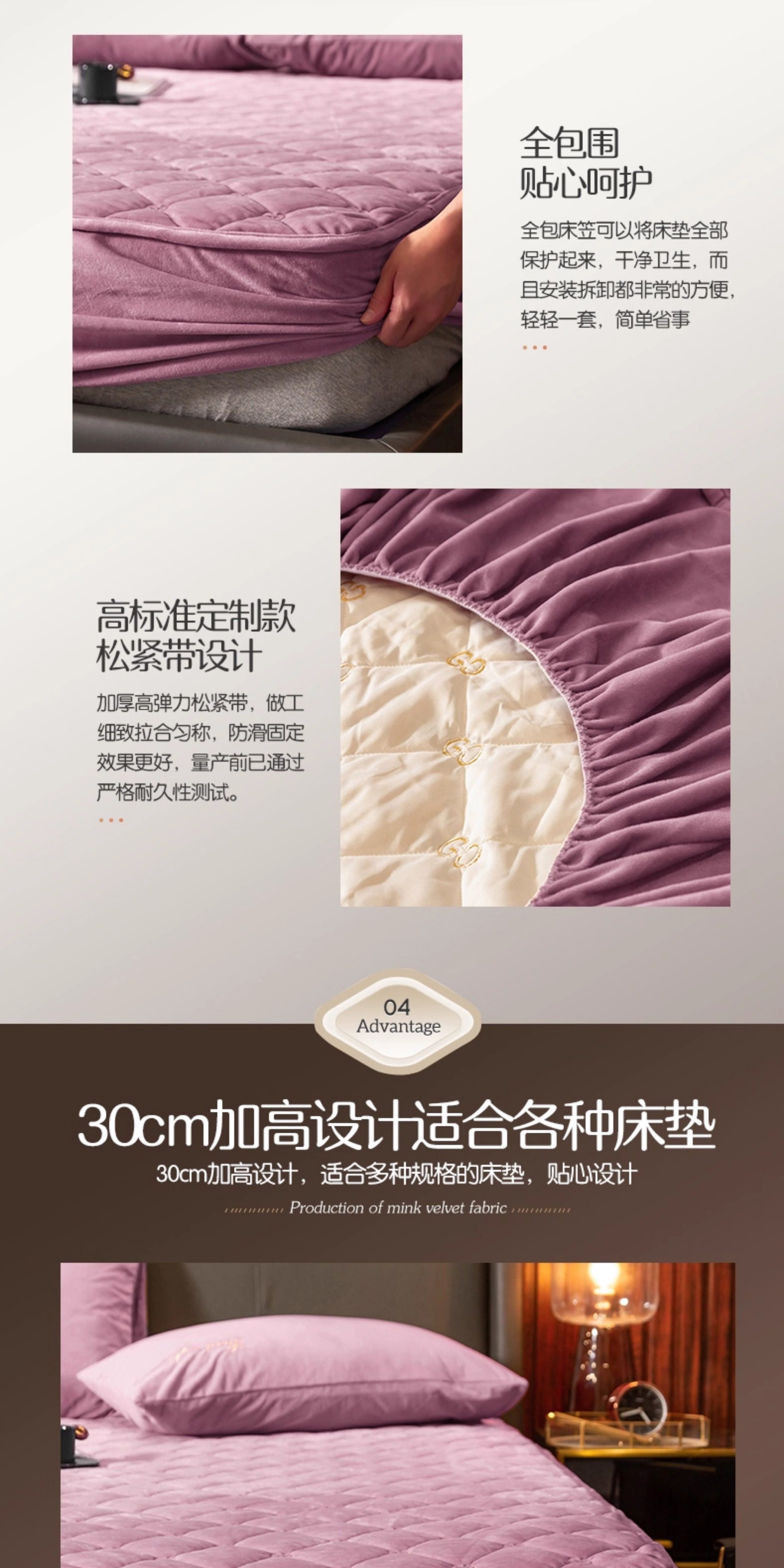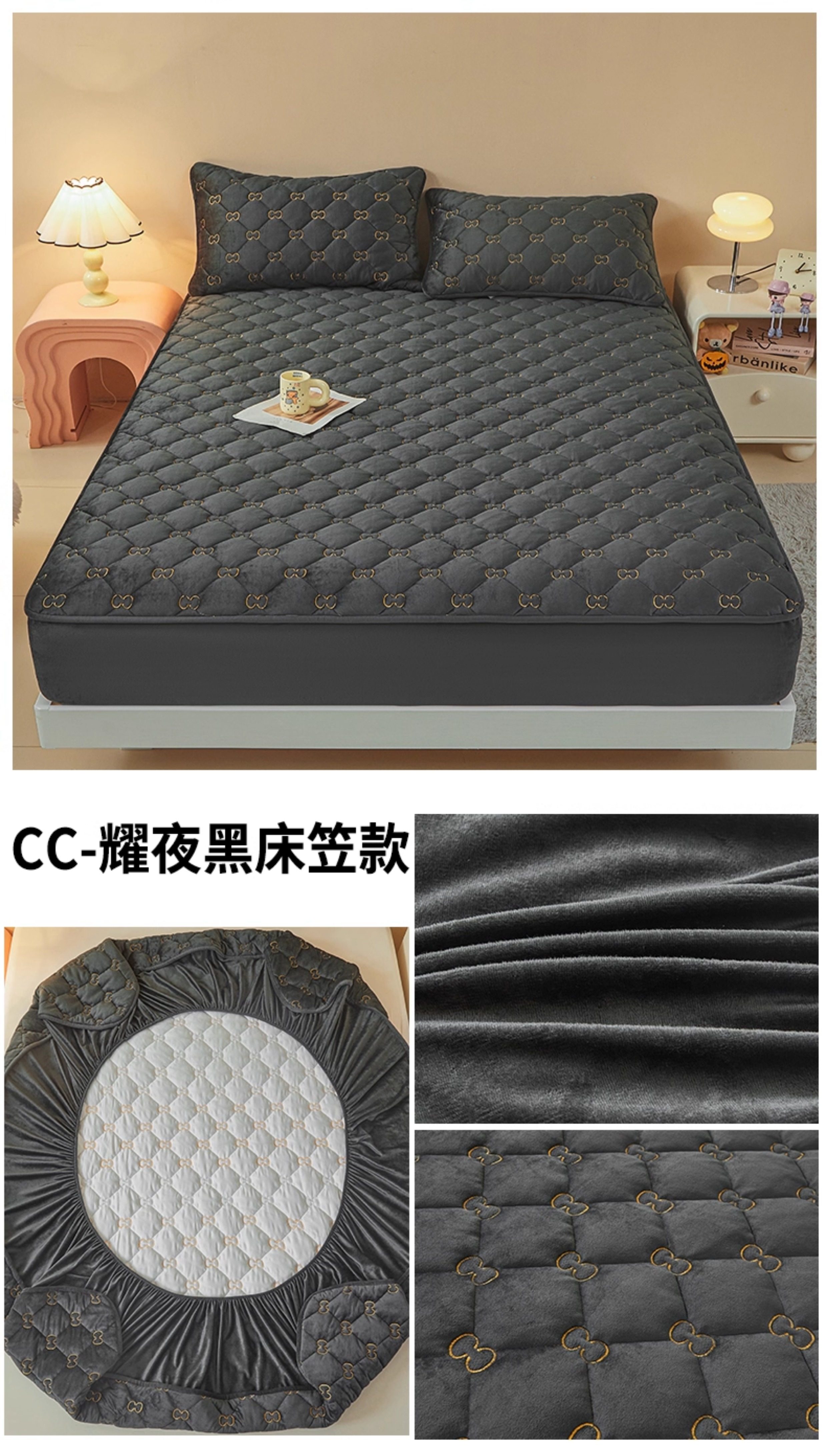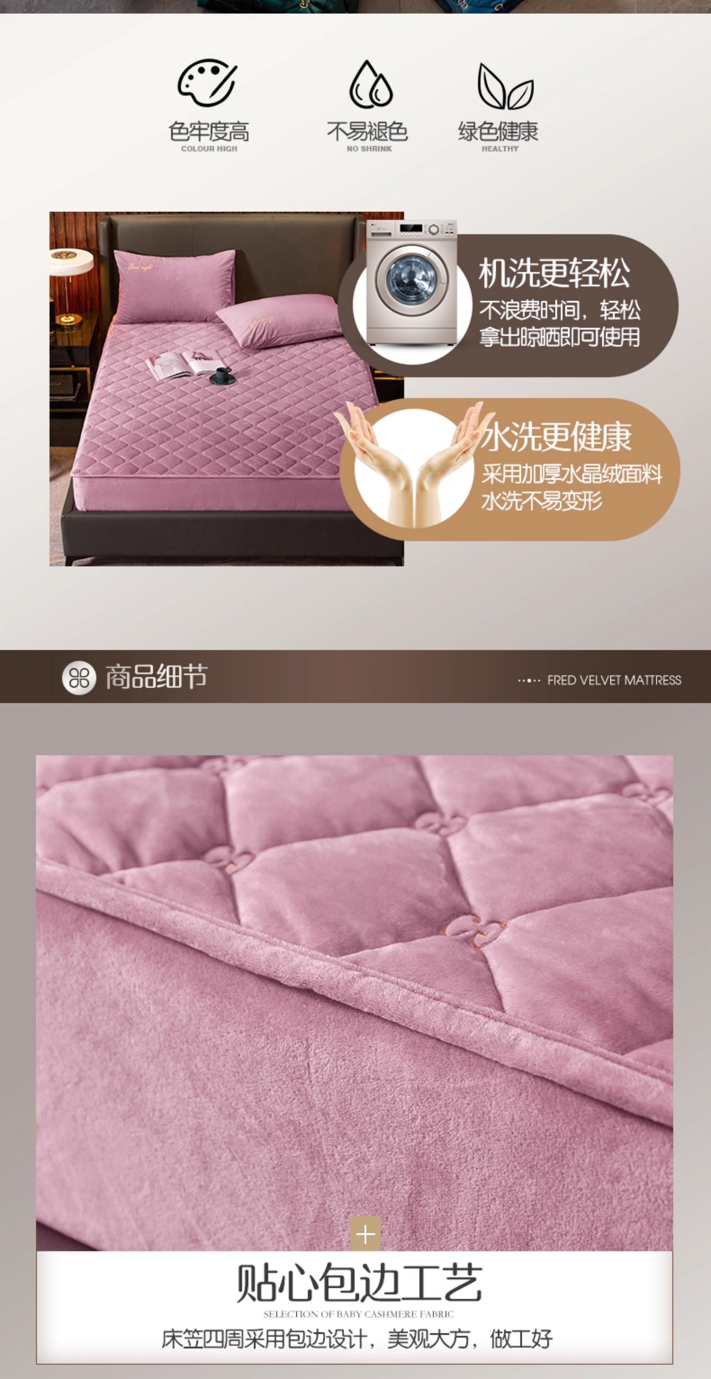 水晶絨夾棉床笠單件牛奶絨冬季加厚床罩床墊套保暖珊瑚絨床立防滑