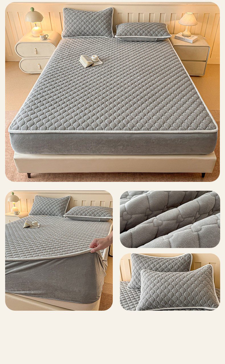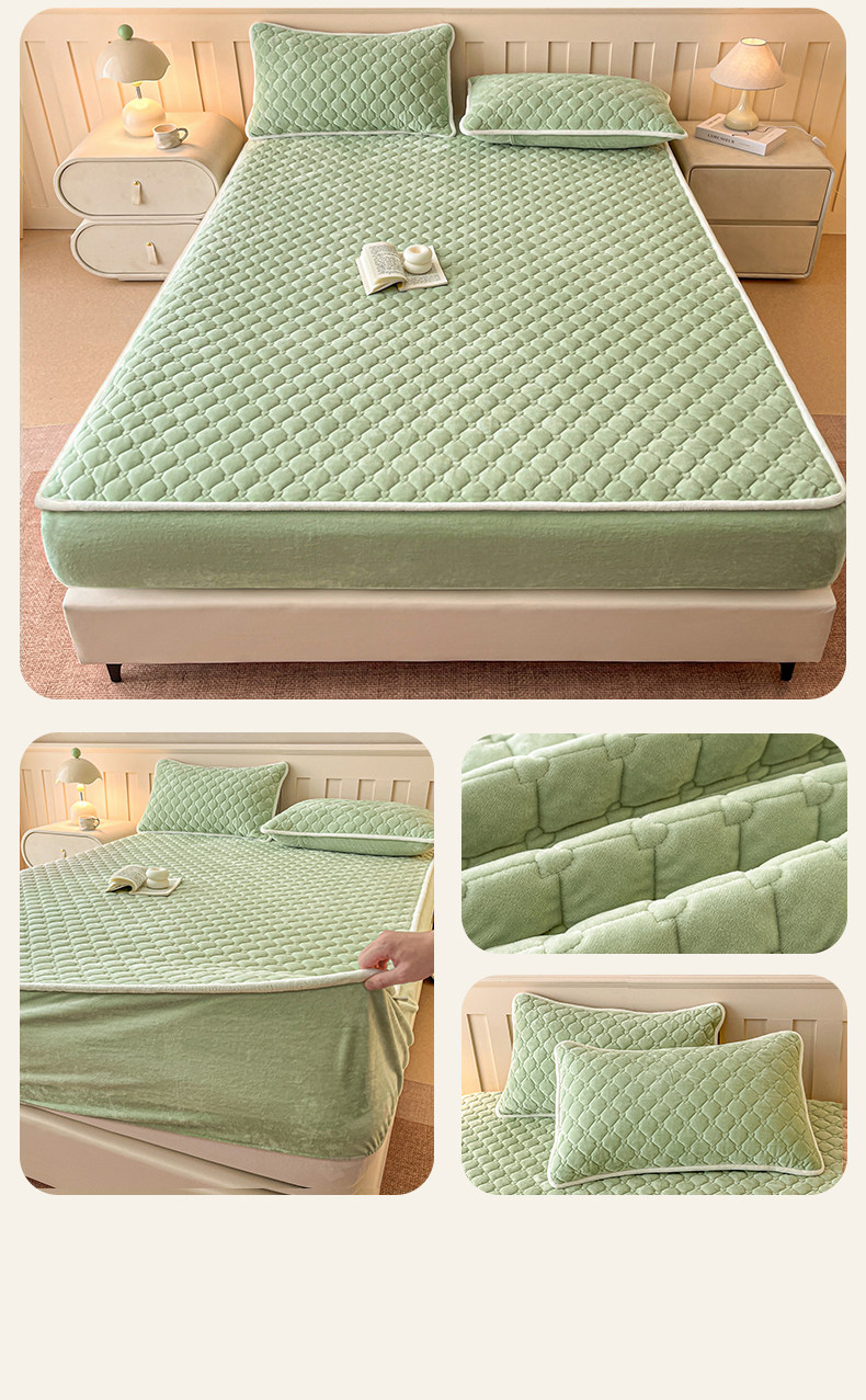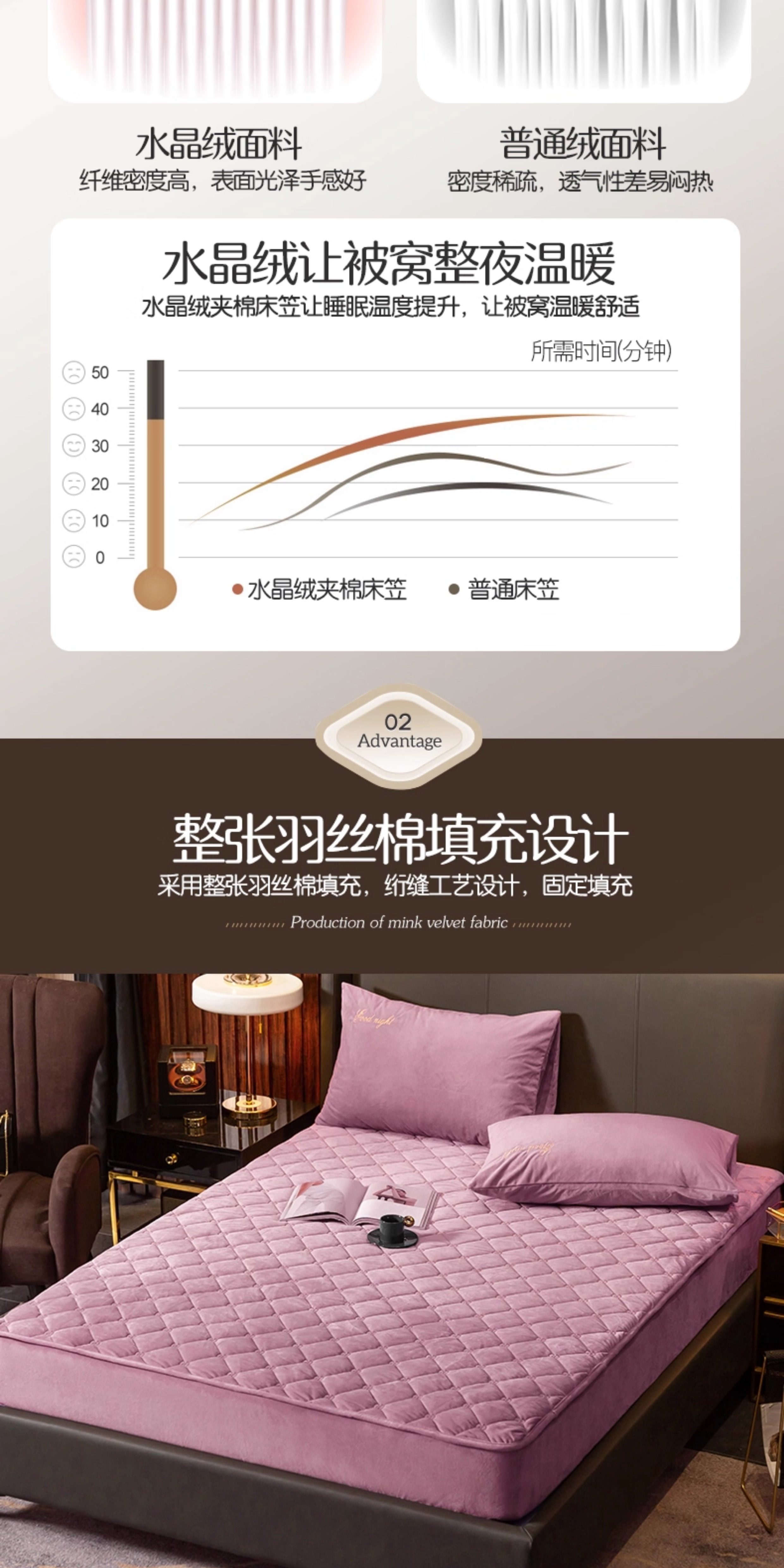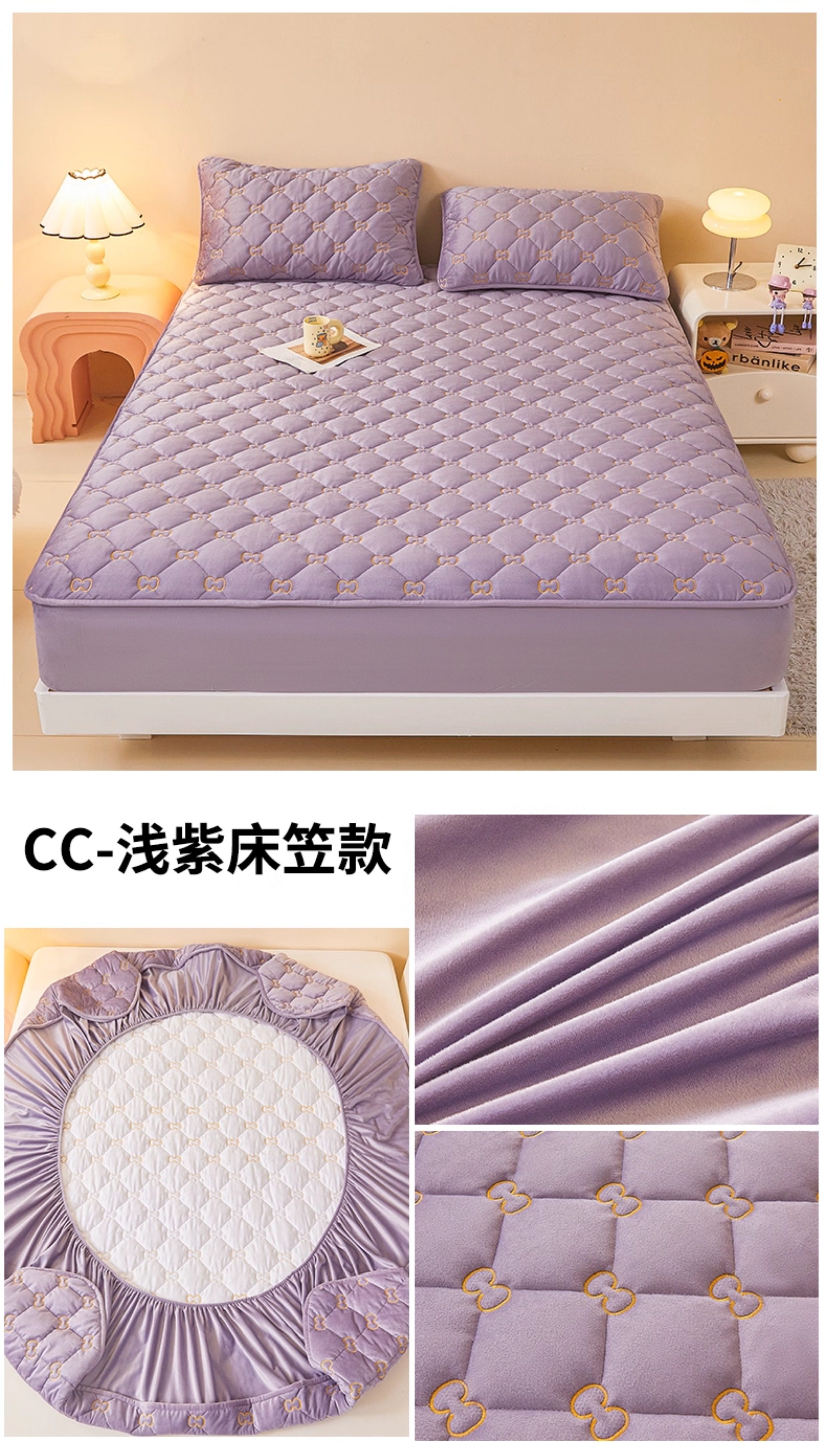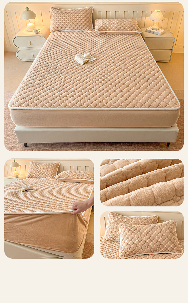 水晶絨夾棉床笠單件牛奶絨冬季加厚床罩床墊套保暖珊瑚絨床立防滑