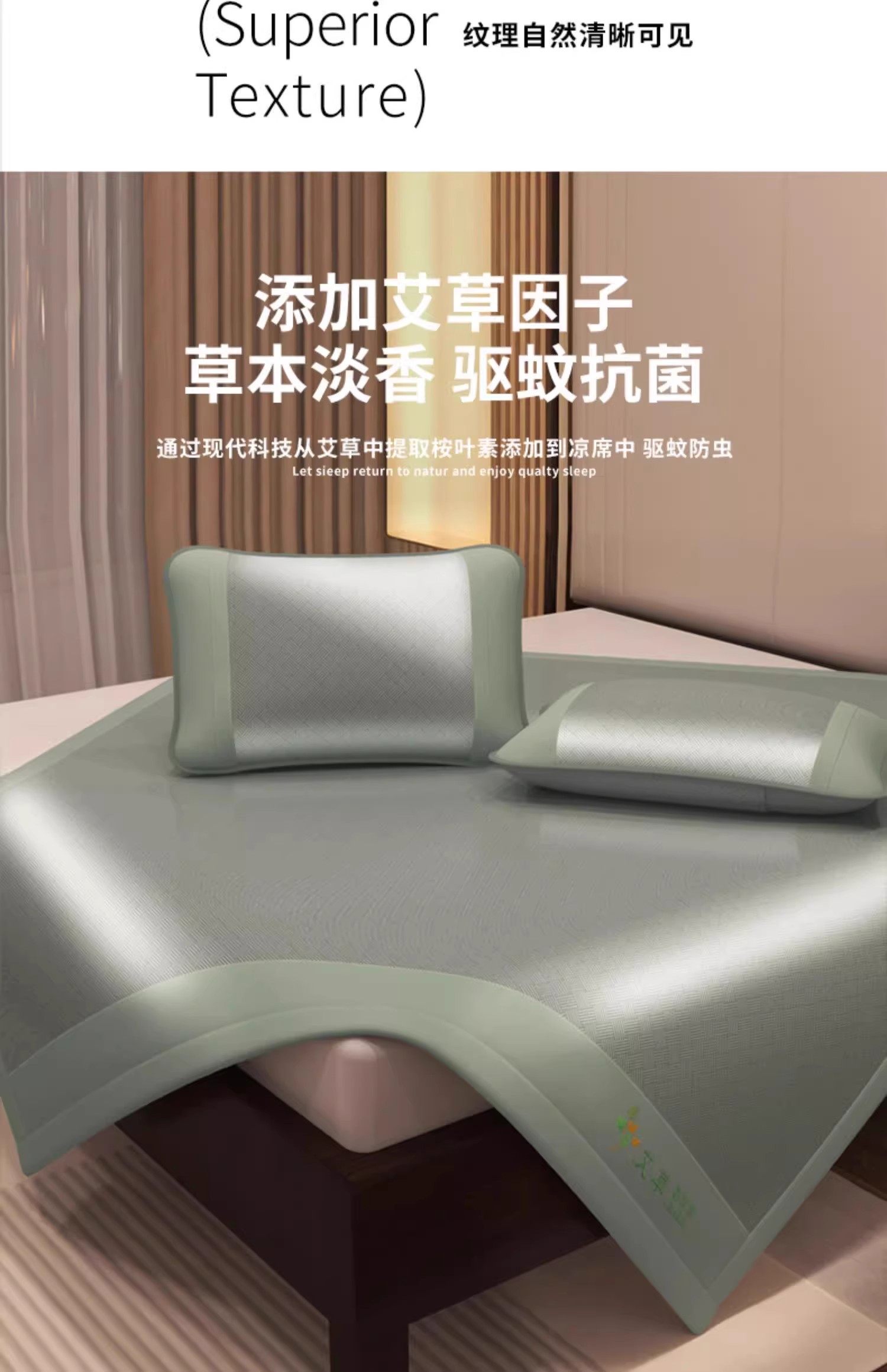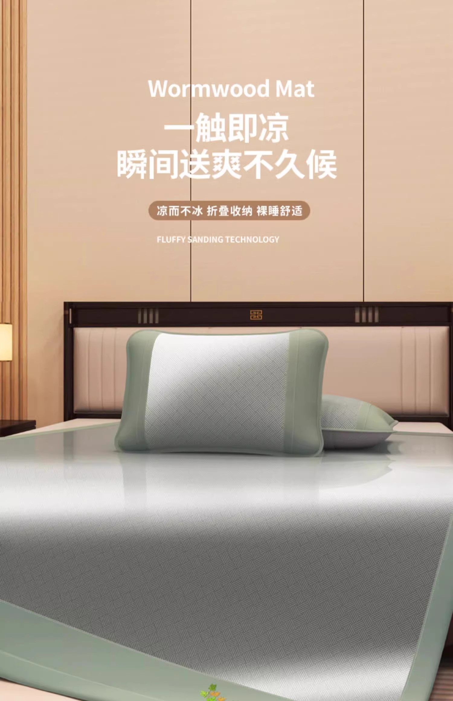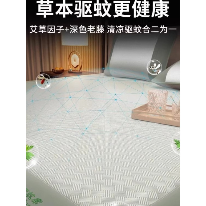 ESSONIO意大利夏季艾草涼蓆冰絲蓆無毛刺親膚可折曡單人藤蓆涼蓆