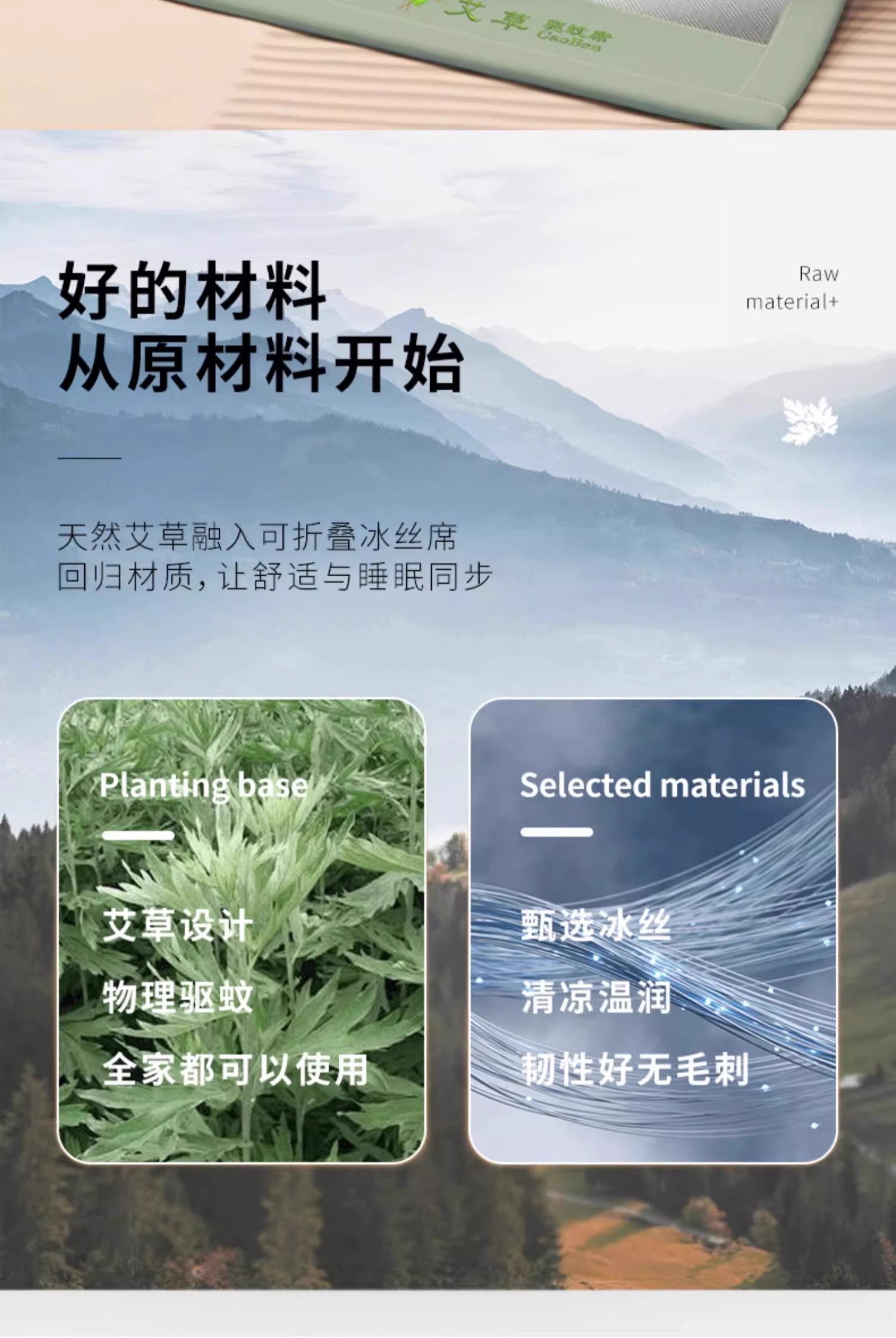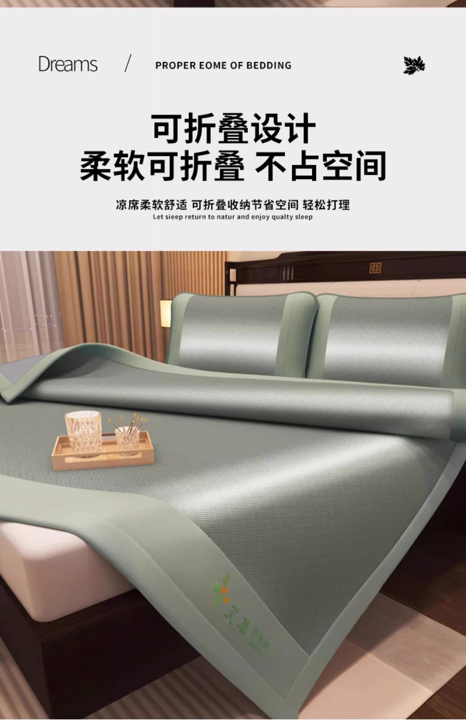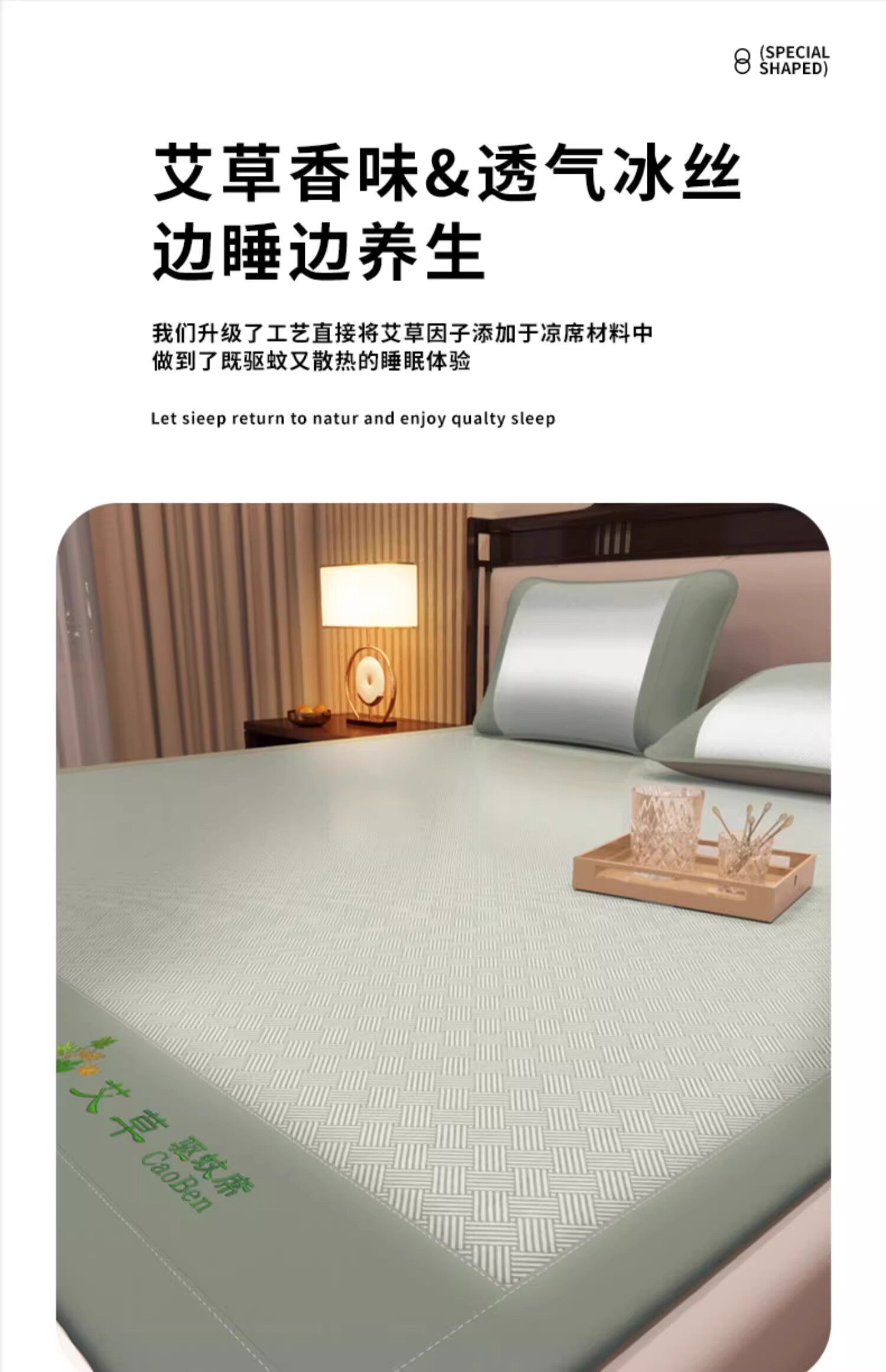 ESSONIO意大利夏季艾草涼蓆冰絲蓆無毛刺親膚可折曡單人藤蓆涼蓆