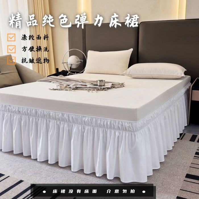 2025新款白色法式公主風松緊床圍床裙遮醜下擺不帶床面花邊松緊裙