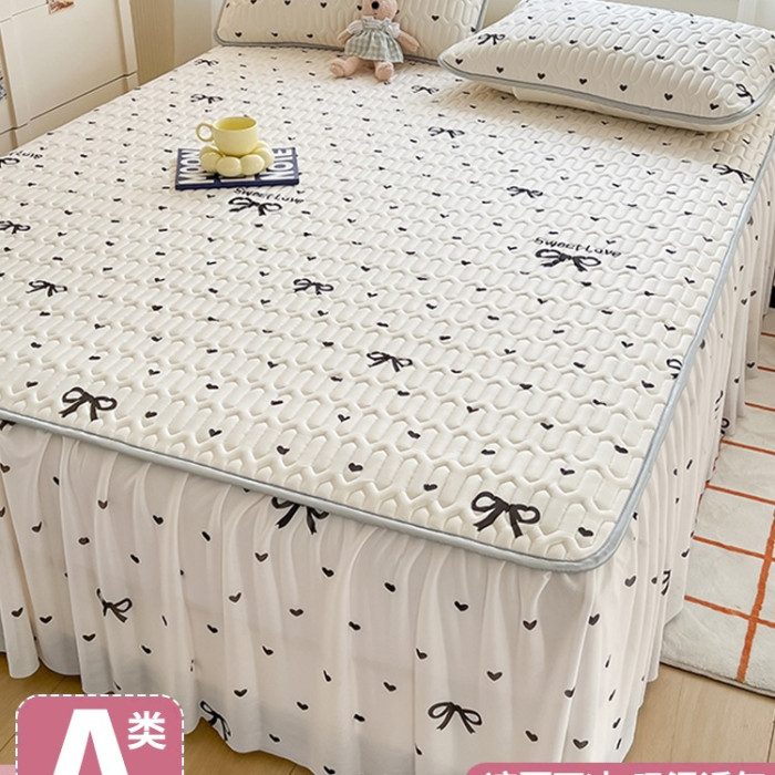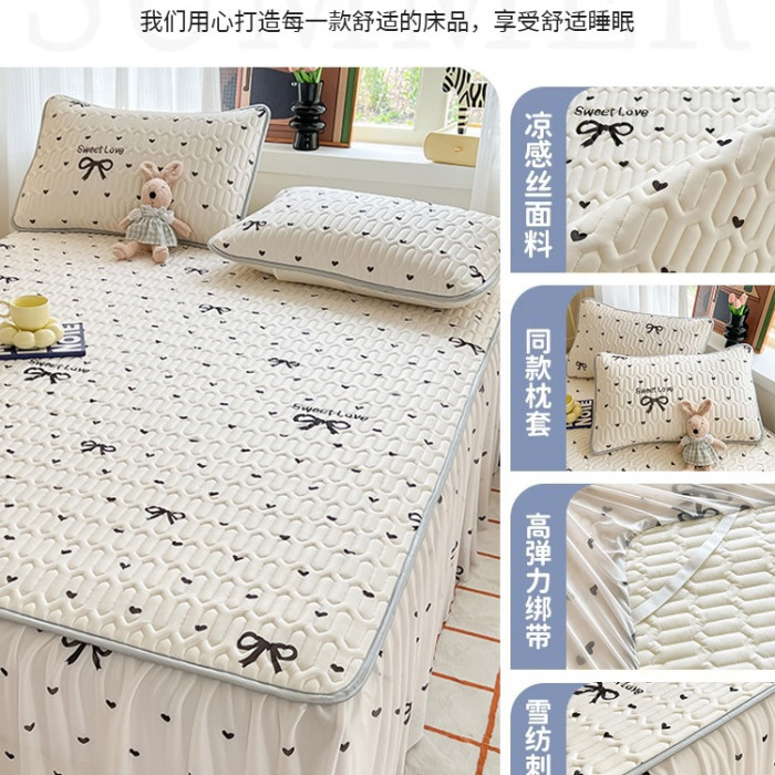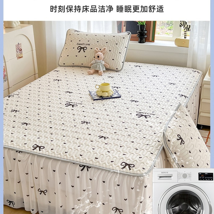 夏季乳膠床裙款單件床罩三件套冰絲涼蓆床笠帶裙邊2025新款可機洗