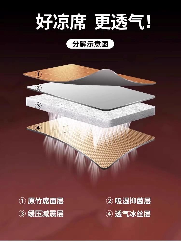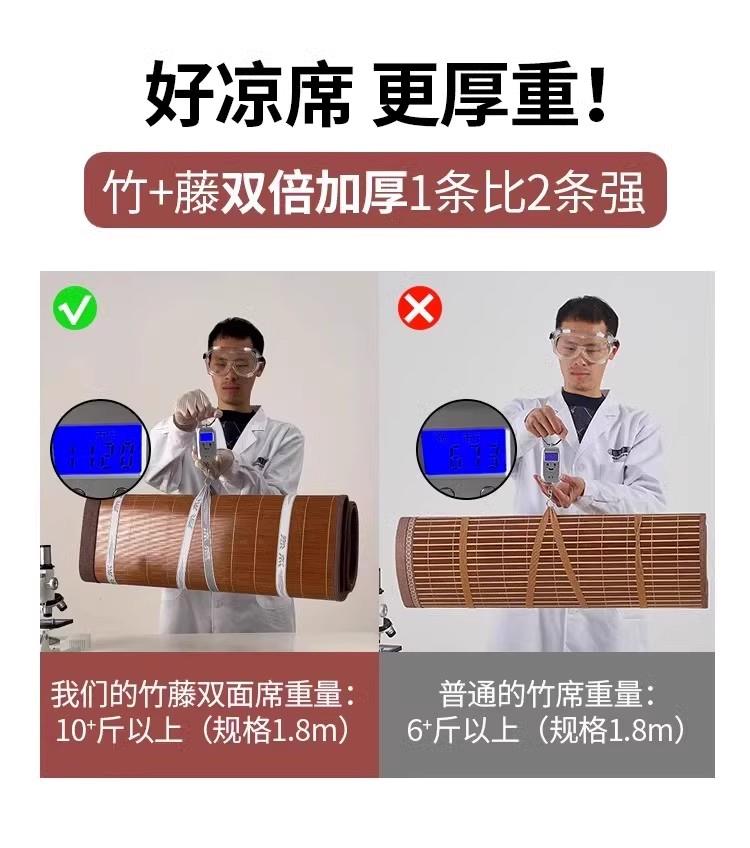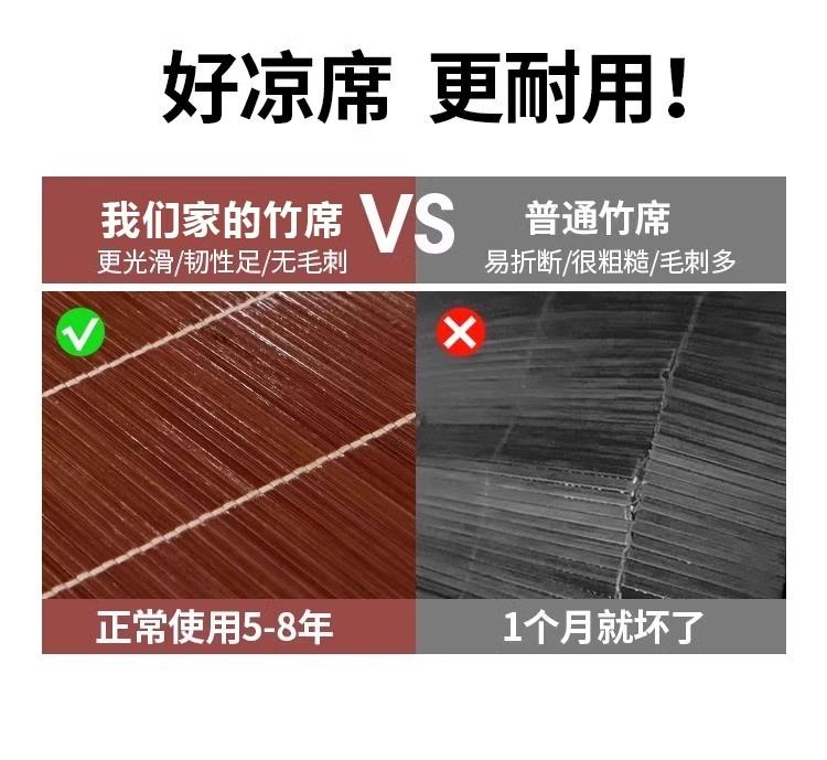 高級天然涼蓆碳化純竹蓆夏季冰絲草蓆子可折曡宿舍冬夏兩用雙面蓆