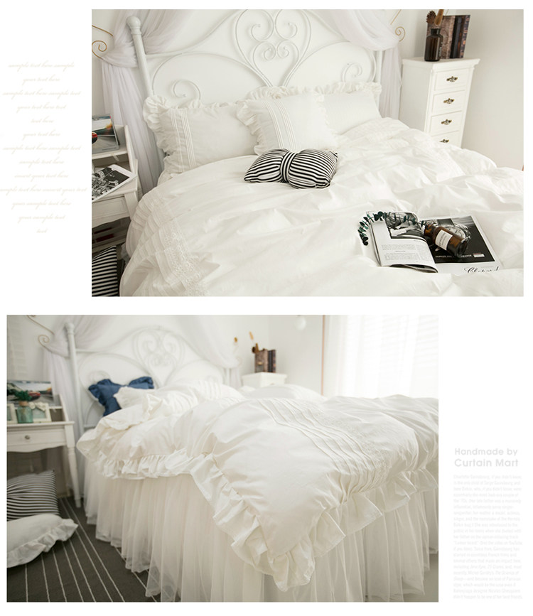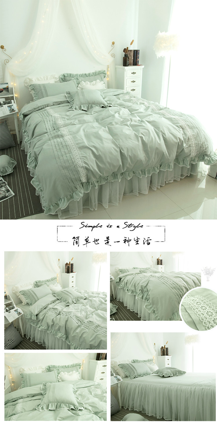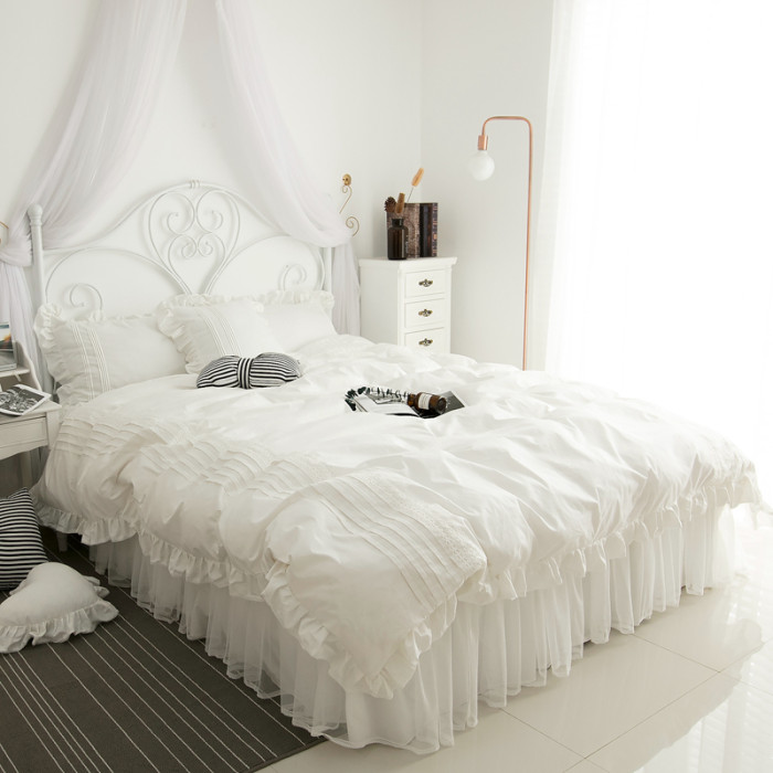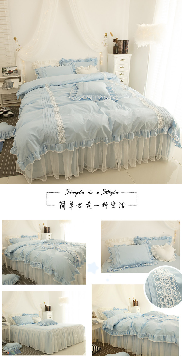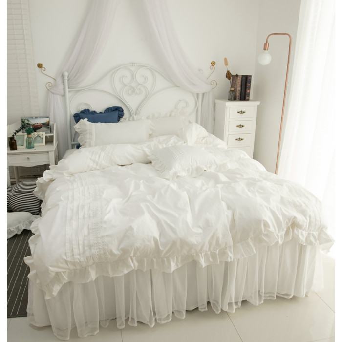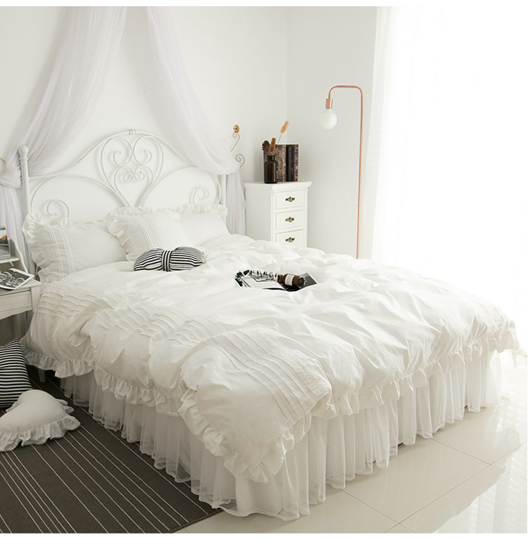 ins白色公主風純棉床上四件套韓國全棉少女被套蕾絲花邊床裙床品