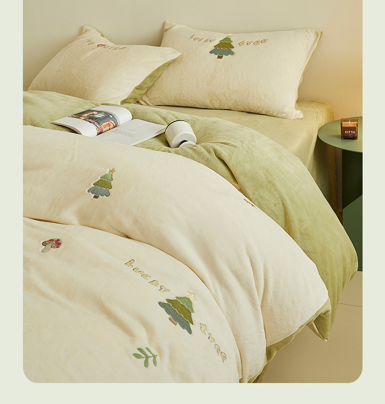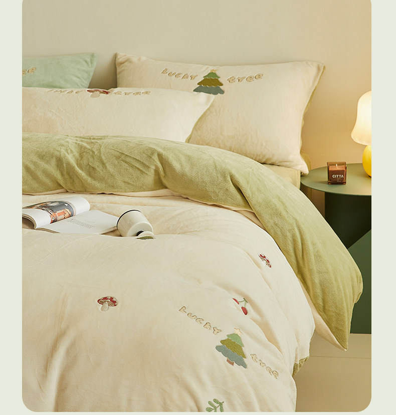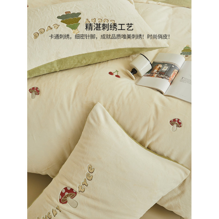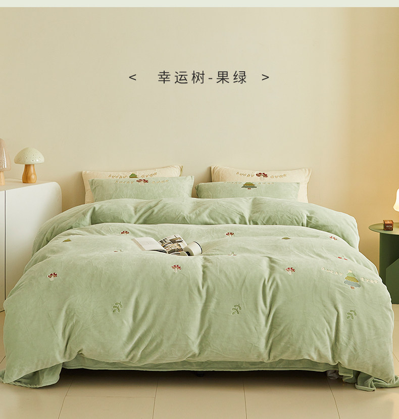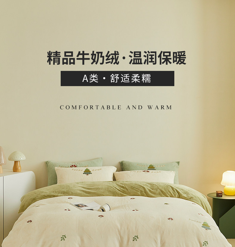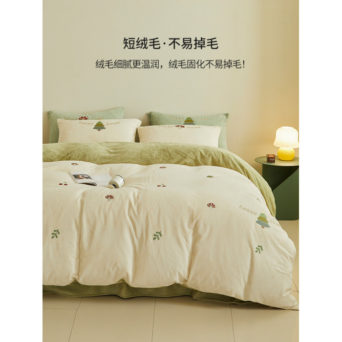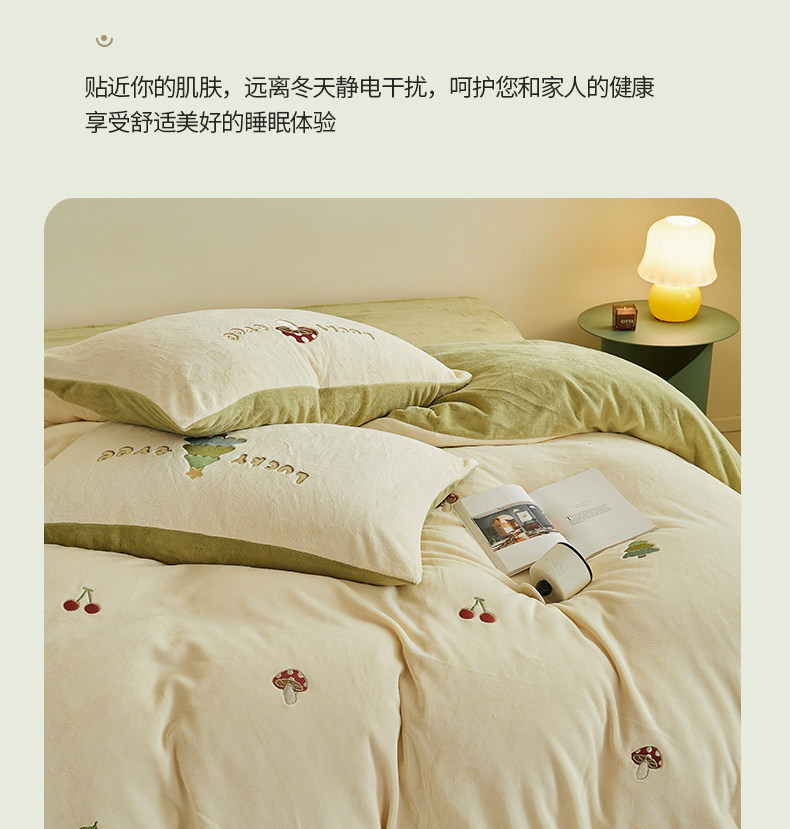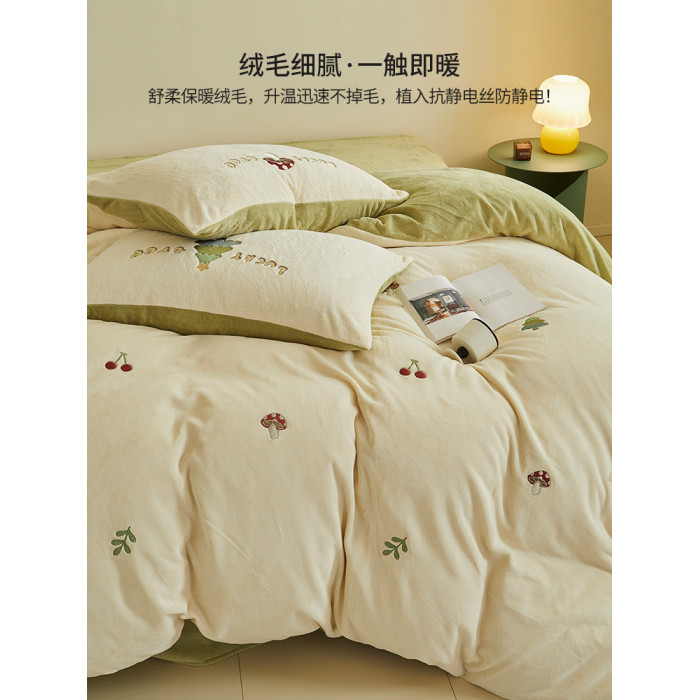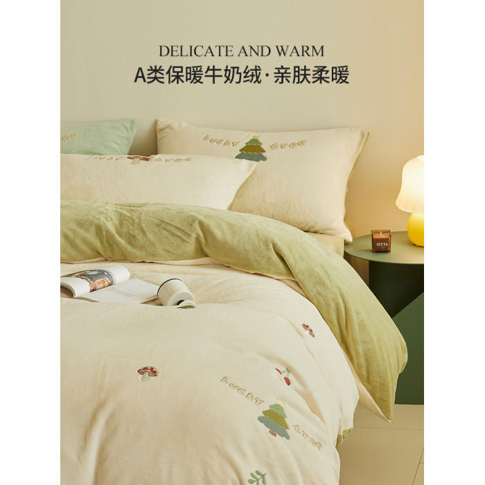 可愛牛奶絨四件套2025新款冬季加厚珊瑚絨被套床單法萊絨床上用品