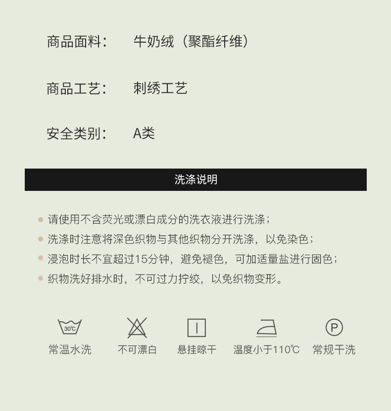 | 面料密度 | 240g/m2高密度牛奶絨 |