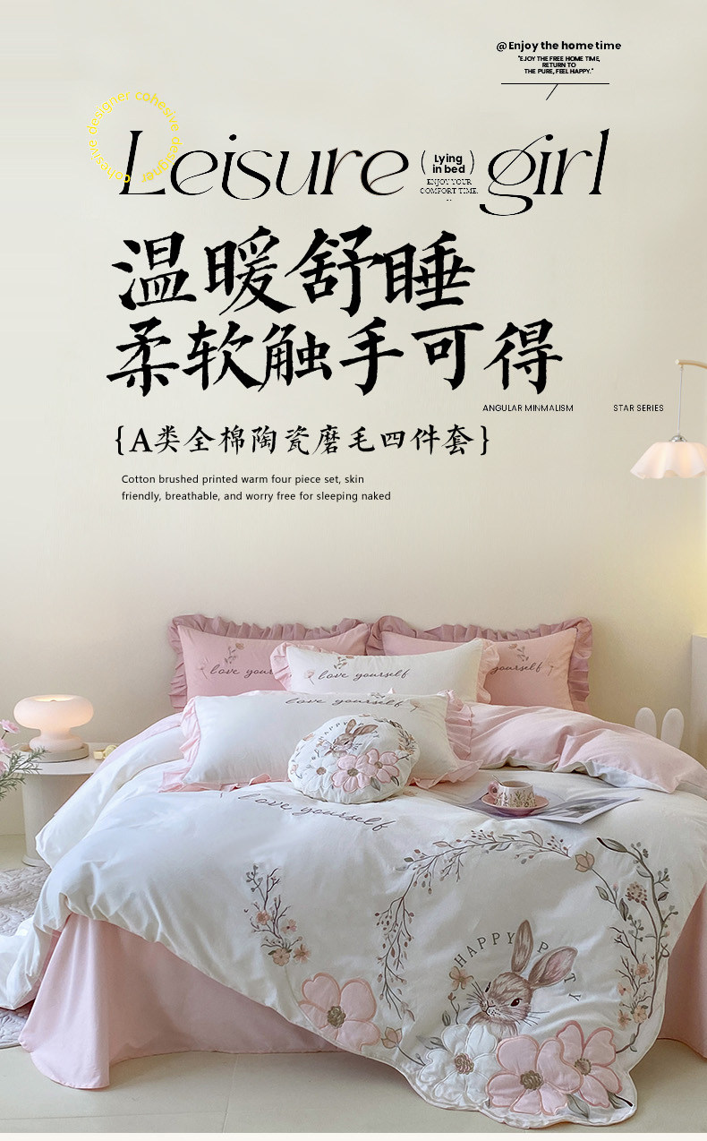 新款秋冬A類母嬰級全棉磨毛四件套純棉加厚保暖花卉被套床上用品4