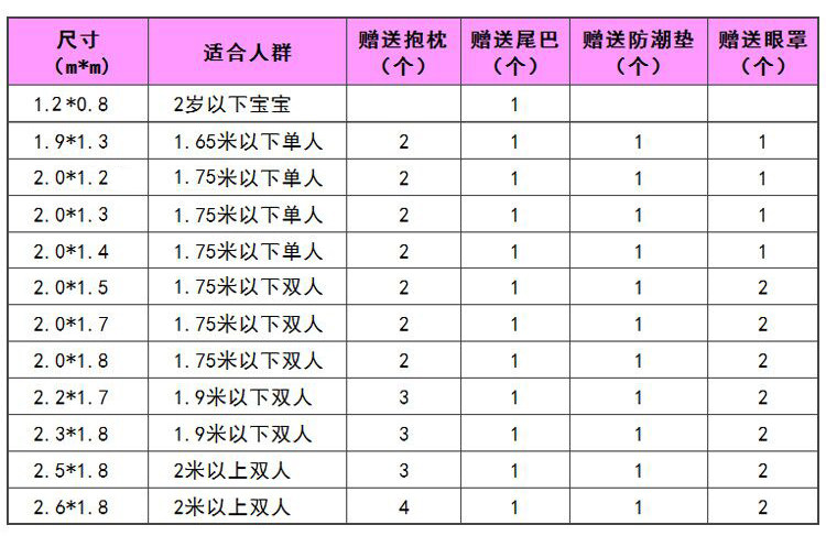 款式及尺寸: