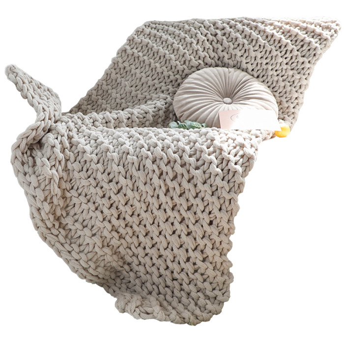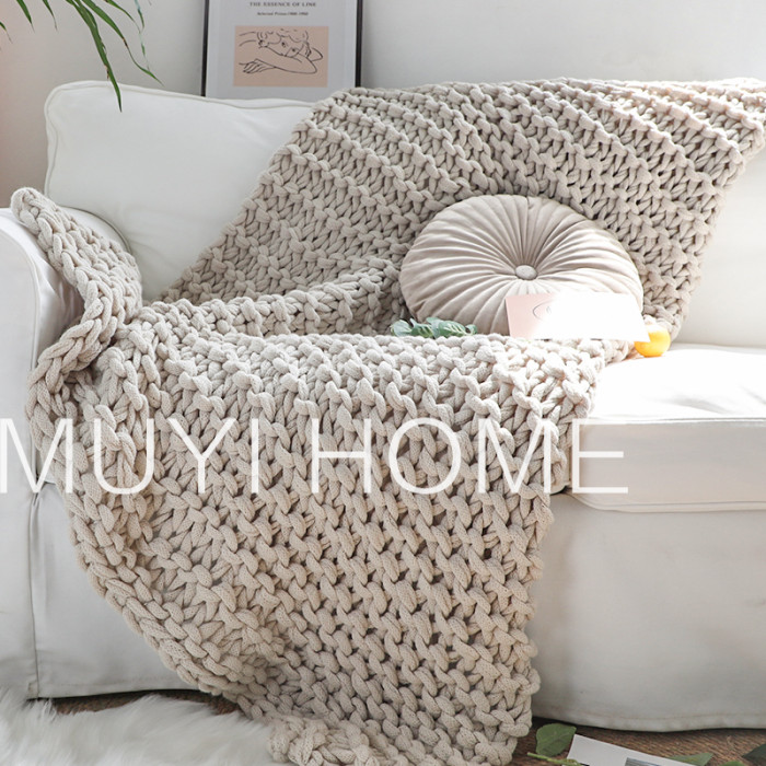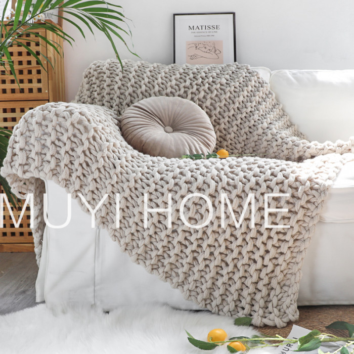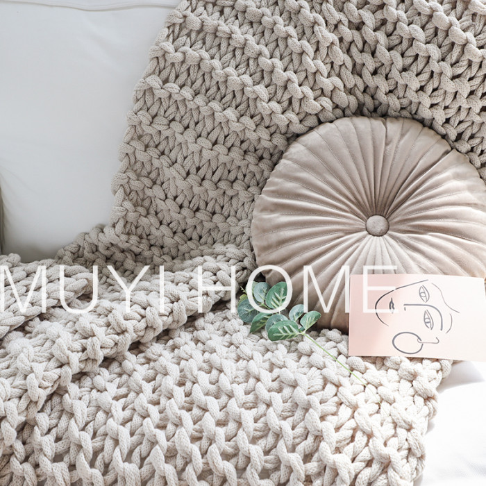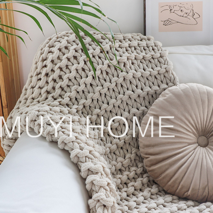 北歐INS網紅特粗毛線手工編織毯樣板間床尾裝飾毯沙發毯民宿床搭
