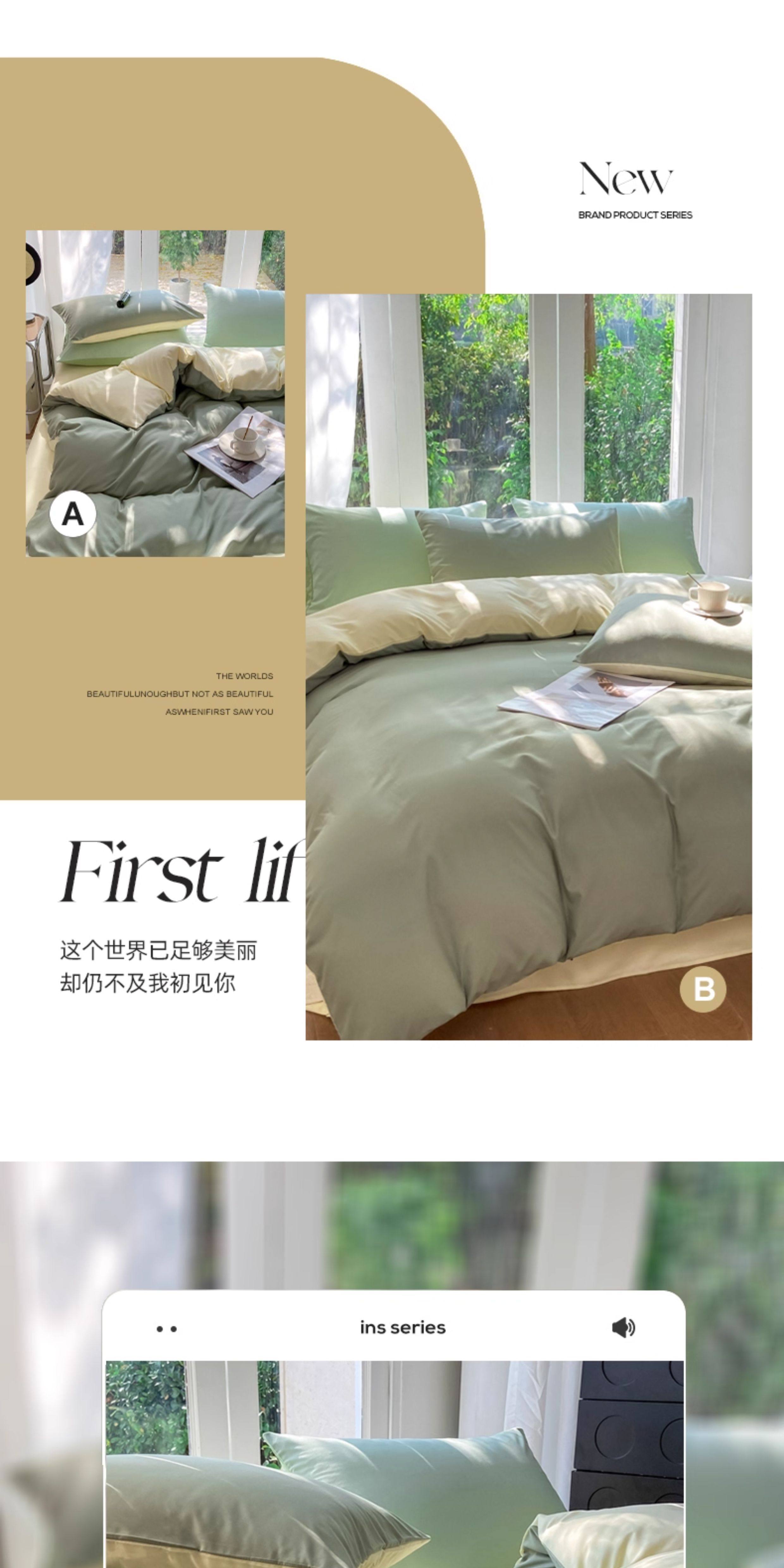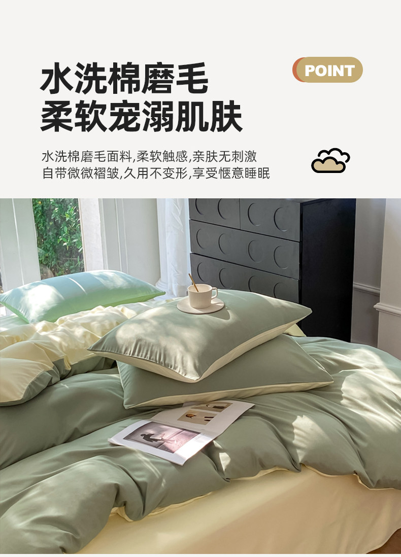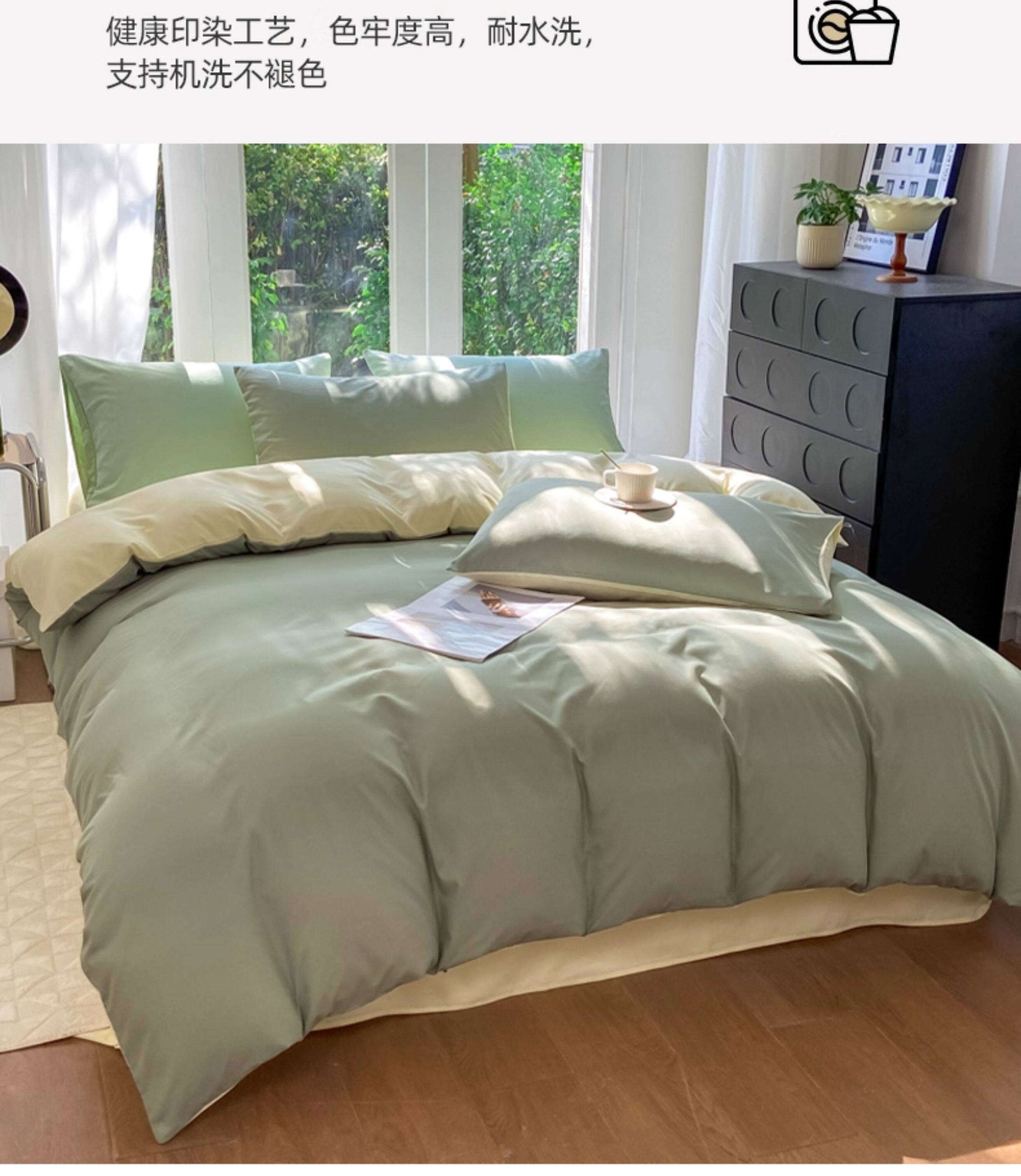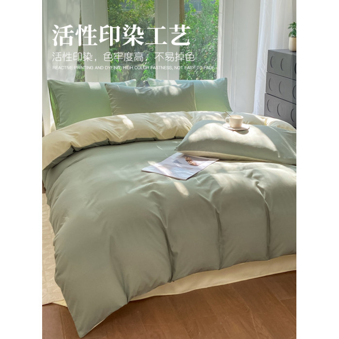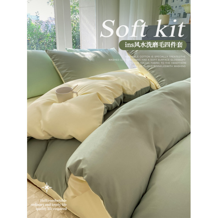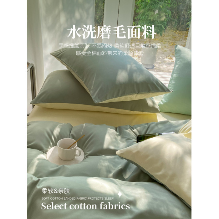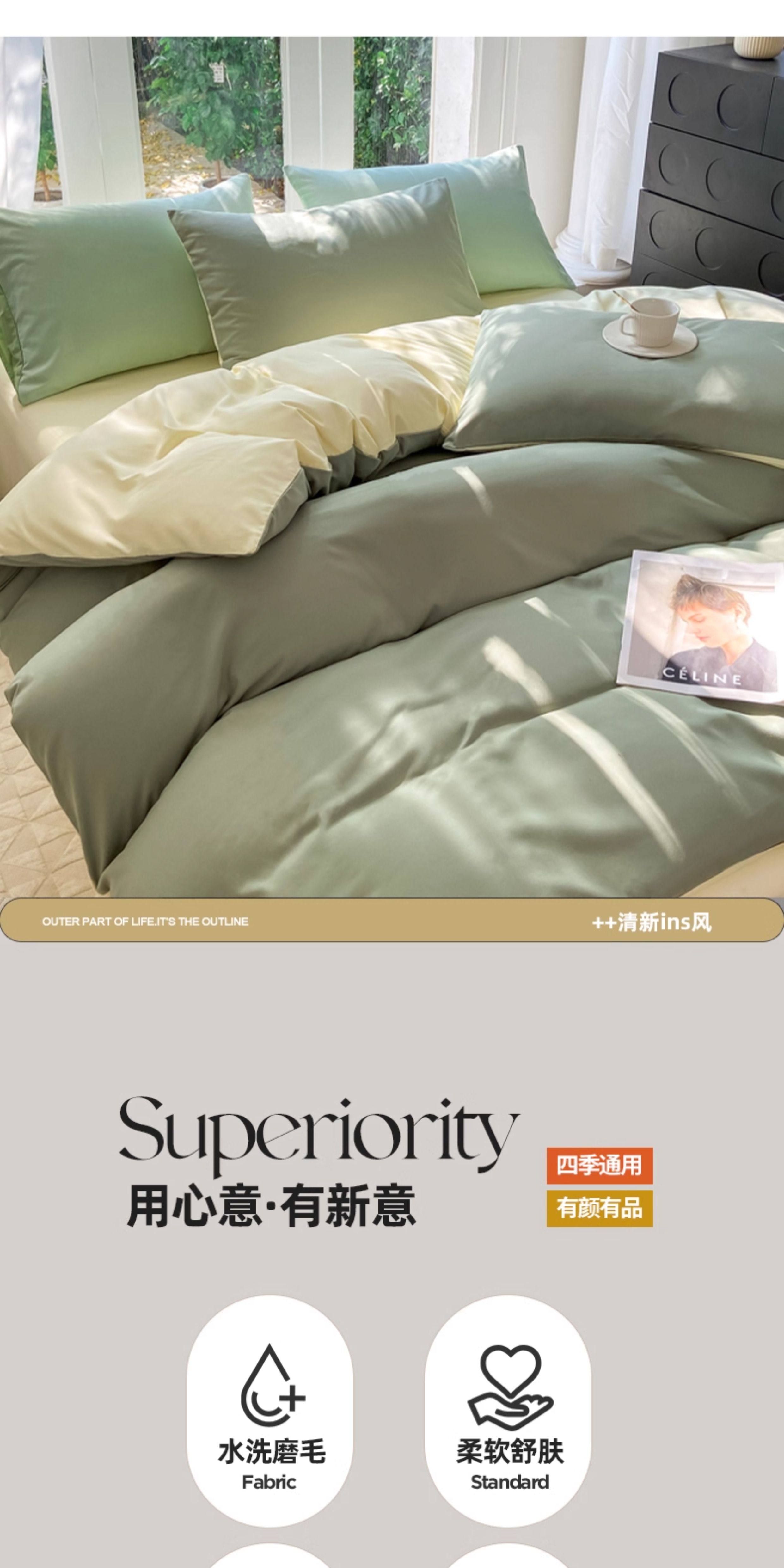 ins簡約風水洗棉磨毛床上四件套雙拼純色被套床單宿捨床上三件套