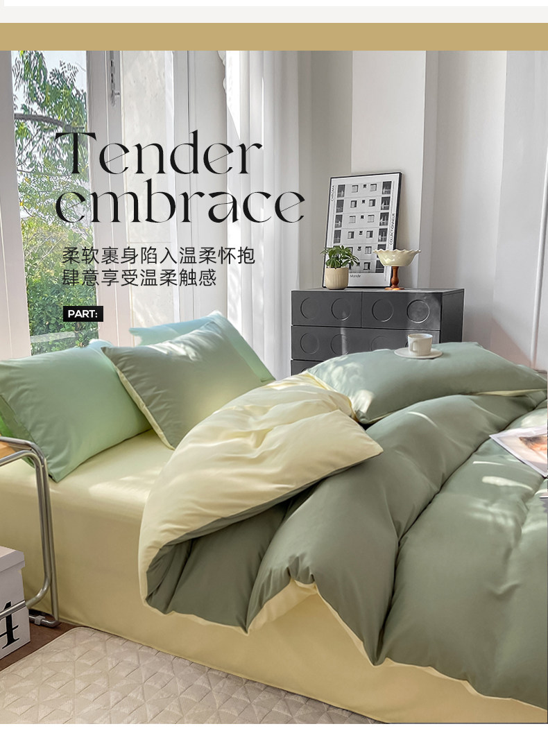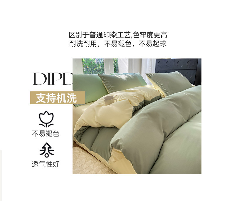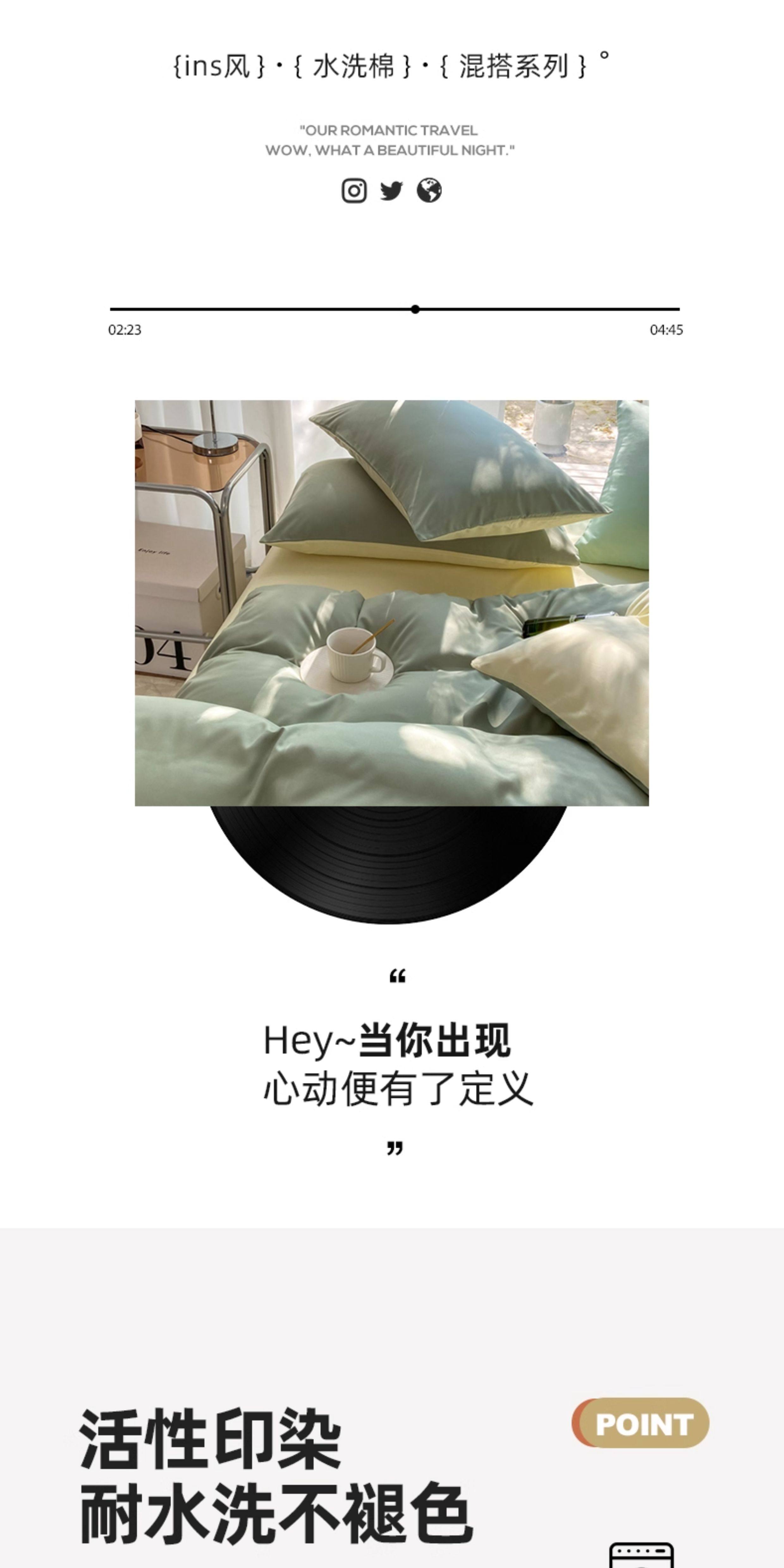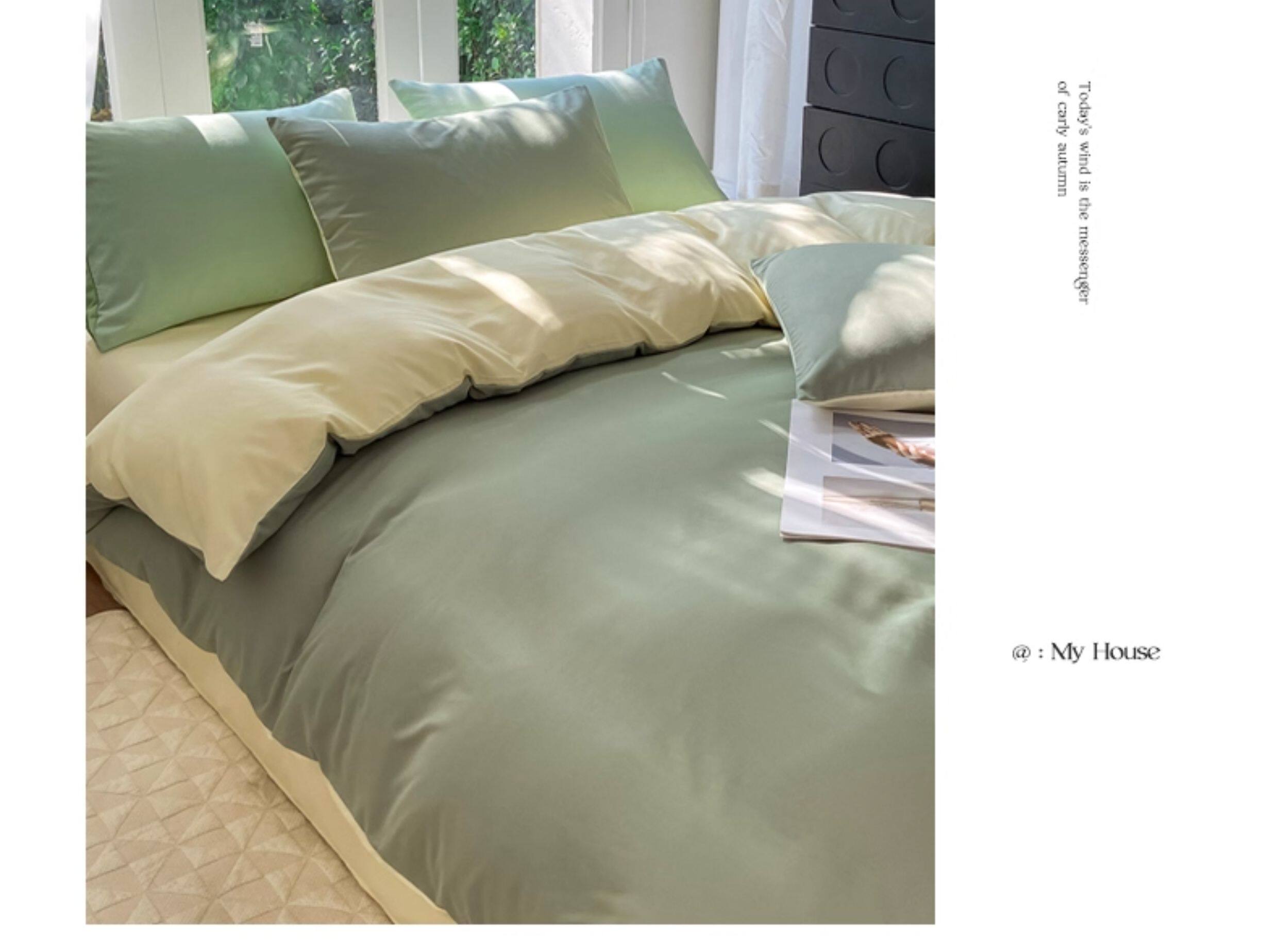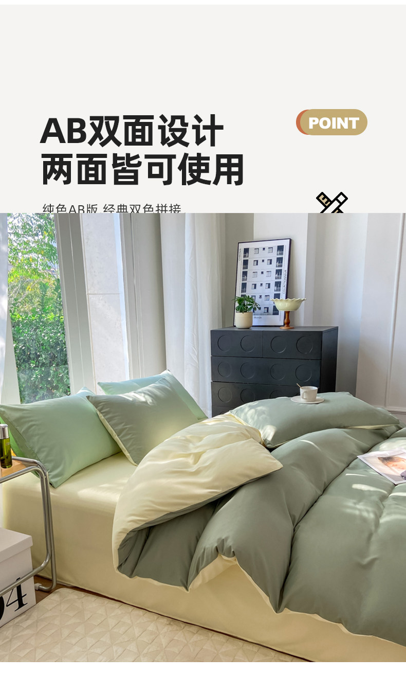 ins簡約風水洗棉磨毛床上四件套雙拼純色被套床單宿捨床上三件套
