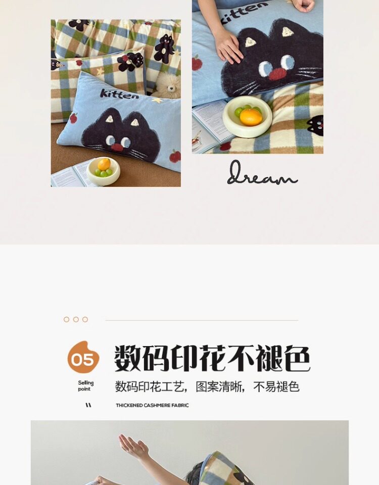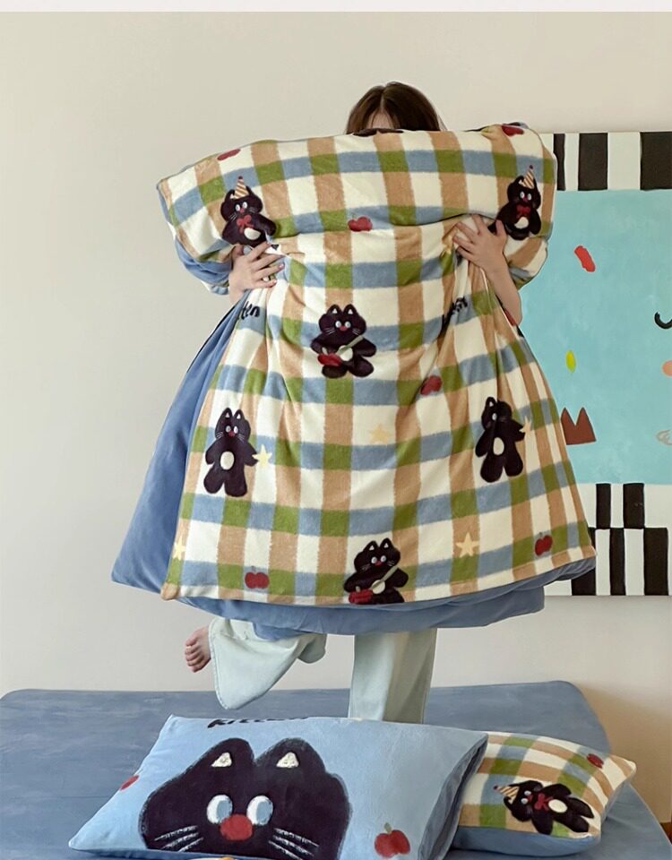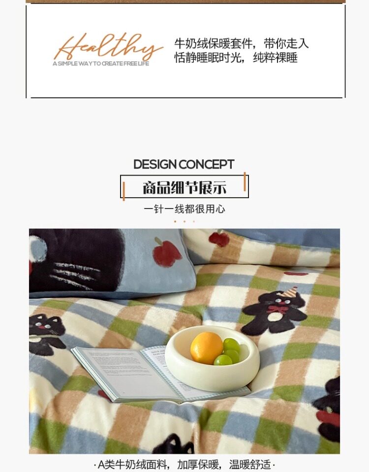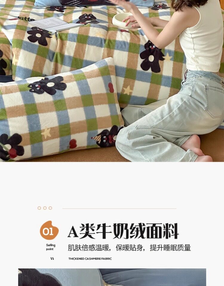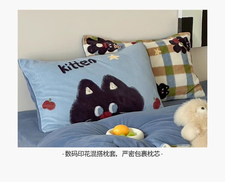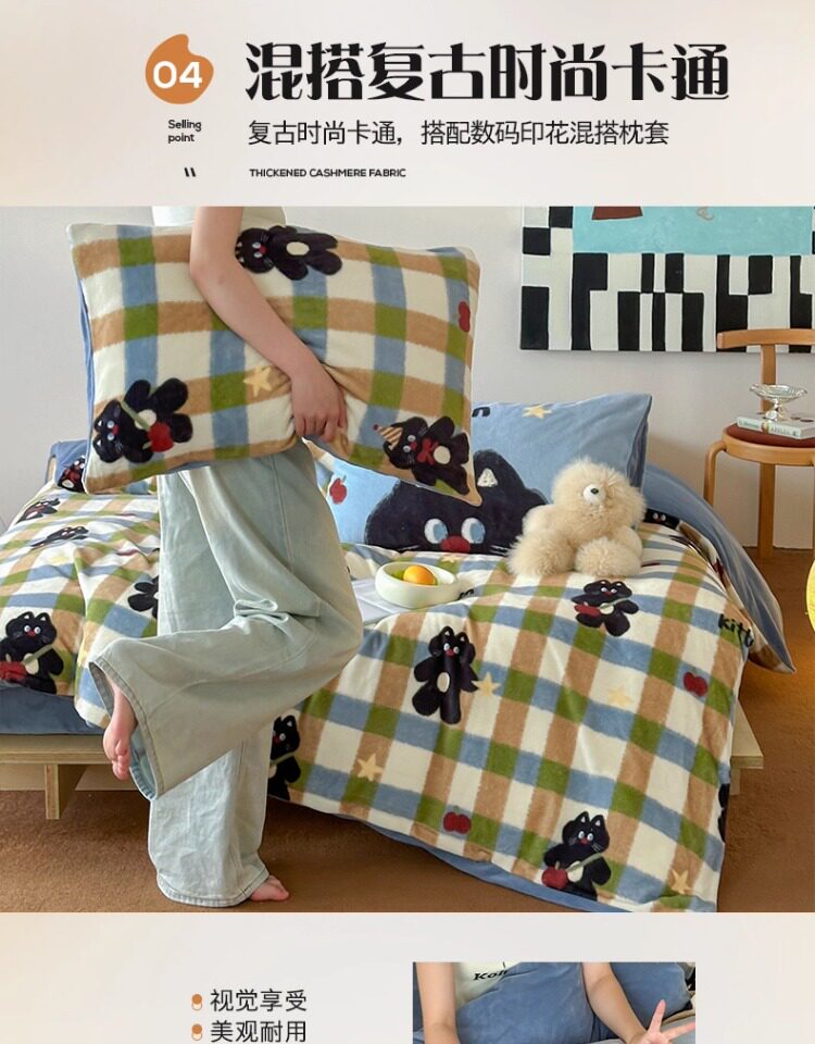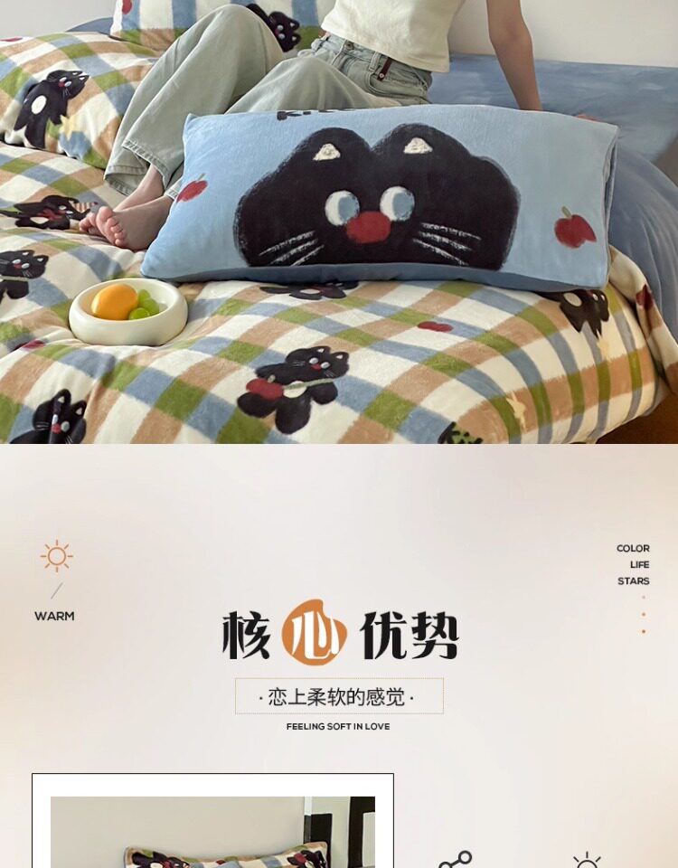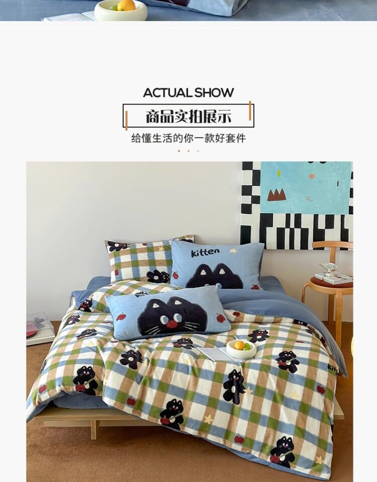 ins甜酷哈曼貓牛奶絨加厚四件套多巴胺雙面珊瑚絨被套卡通三件套4