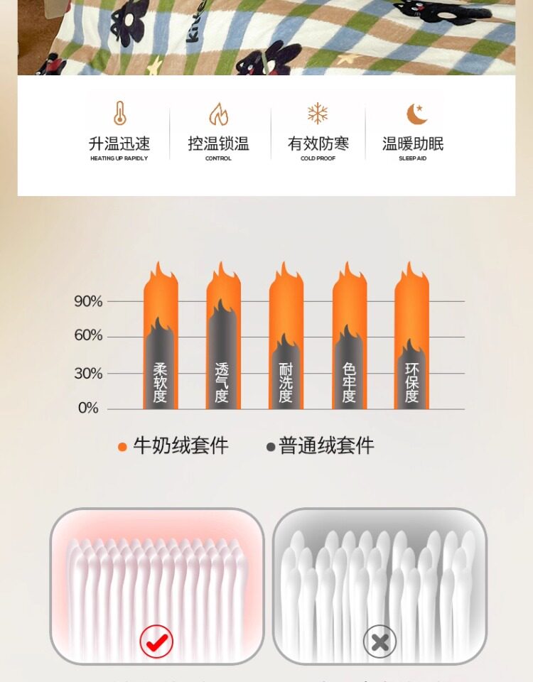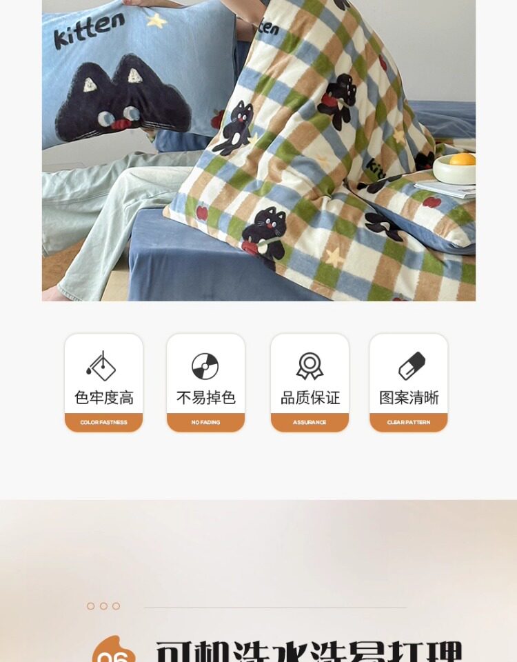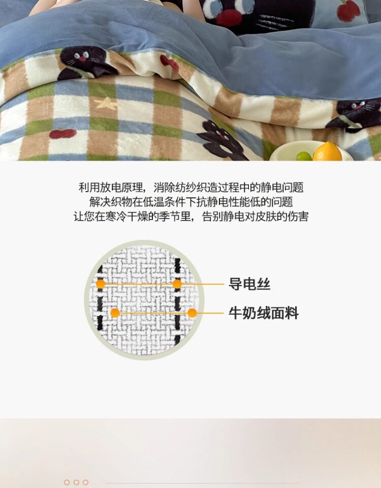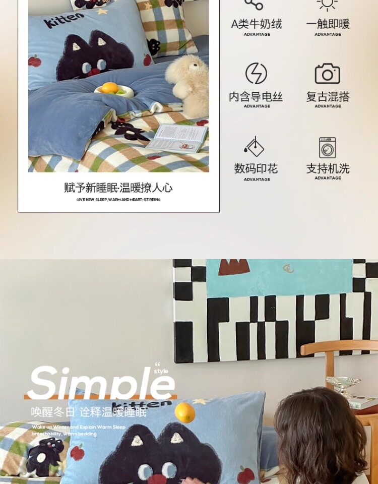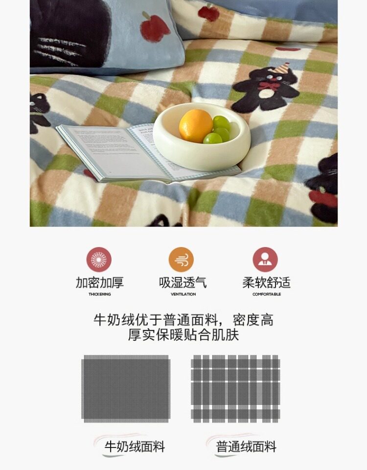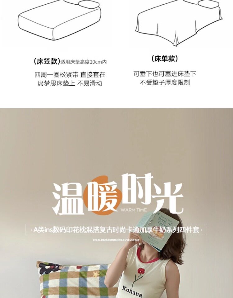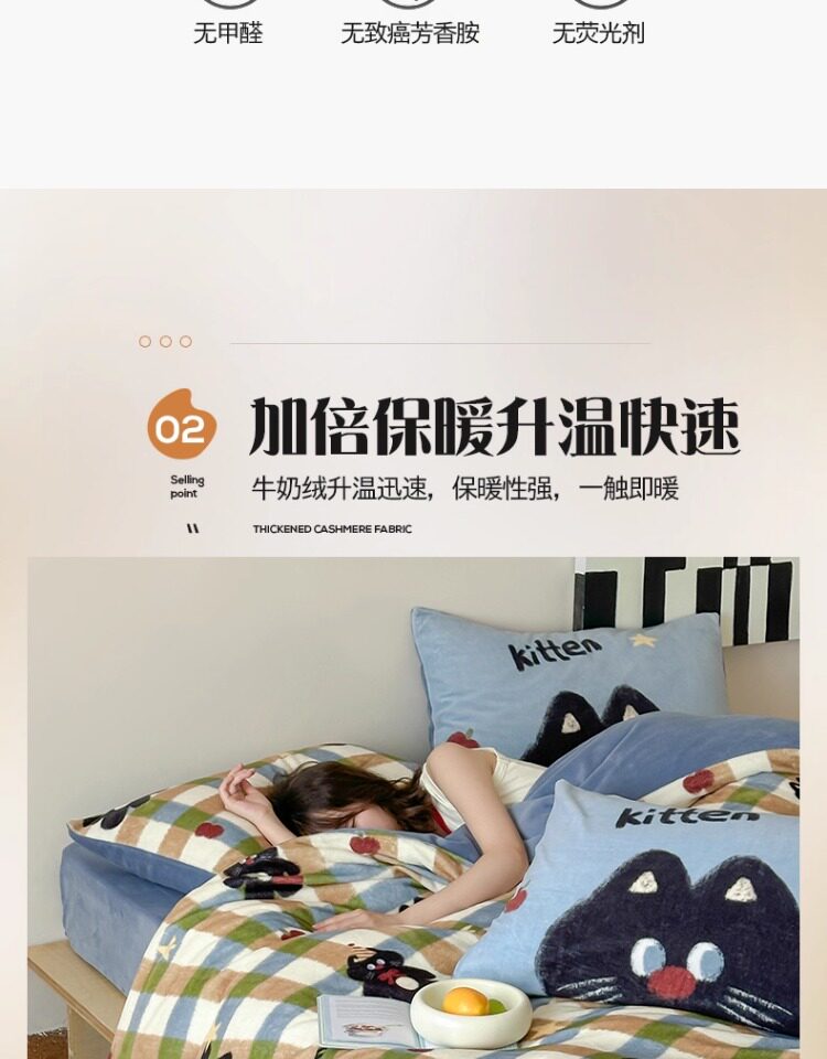 ins甜酷哈曼貓牛奶絨加厚四件套多巴胺雙面珊瑚絨被套卡通三件套4