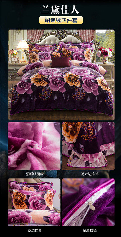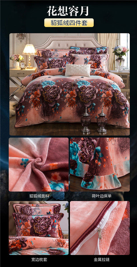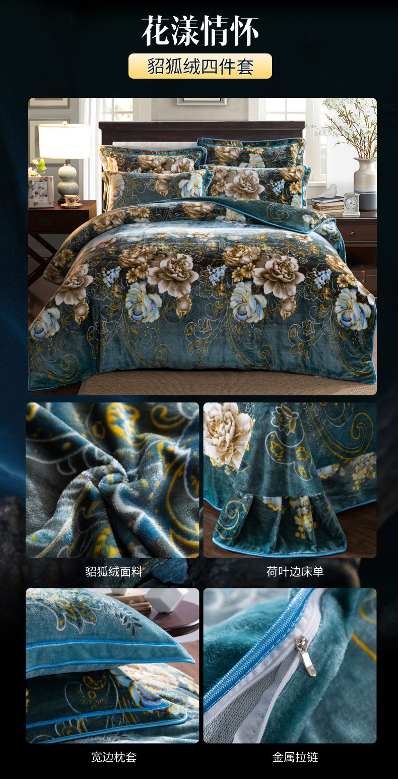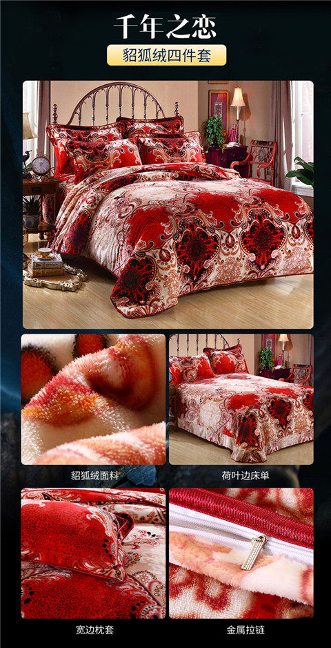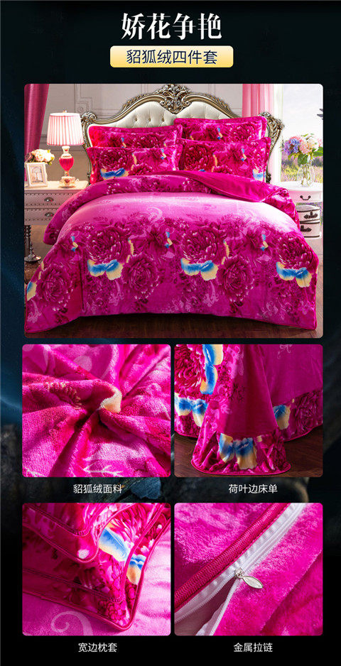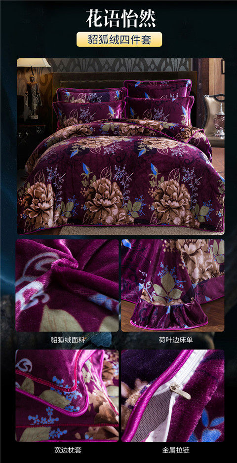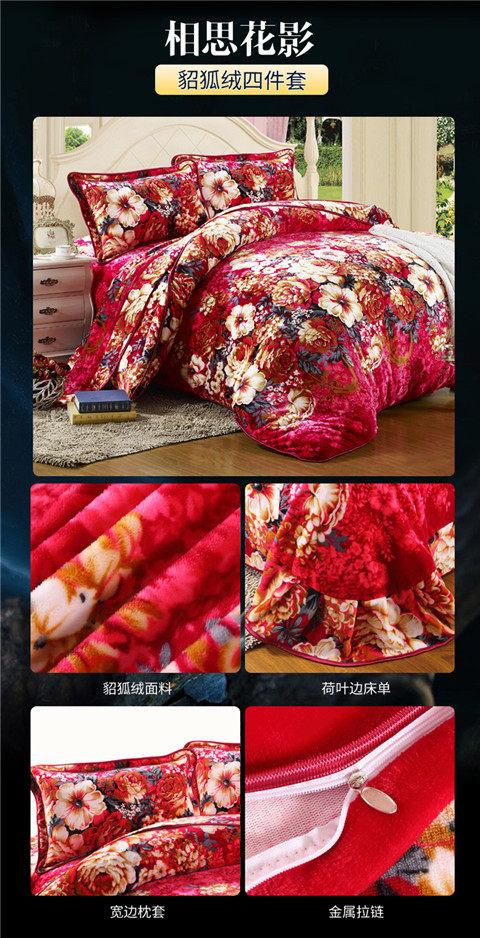 8.5斤加厚保暖金貂絨四件套冬季貂狐絨加絨法蘭絨珊瑚絨四件套