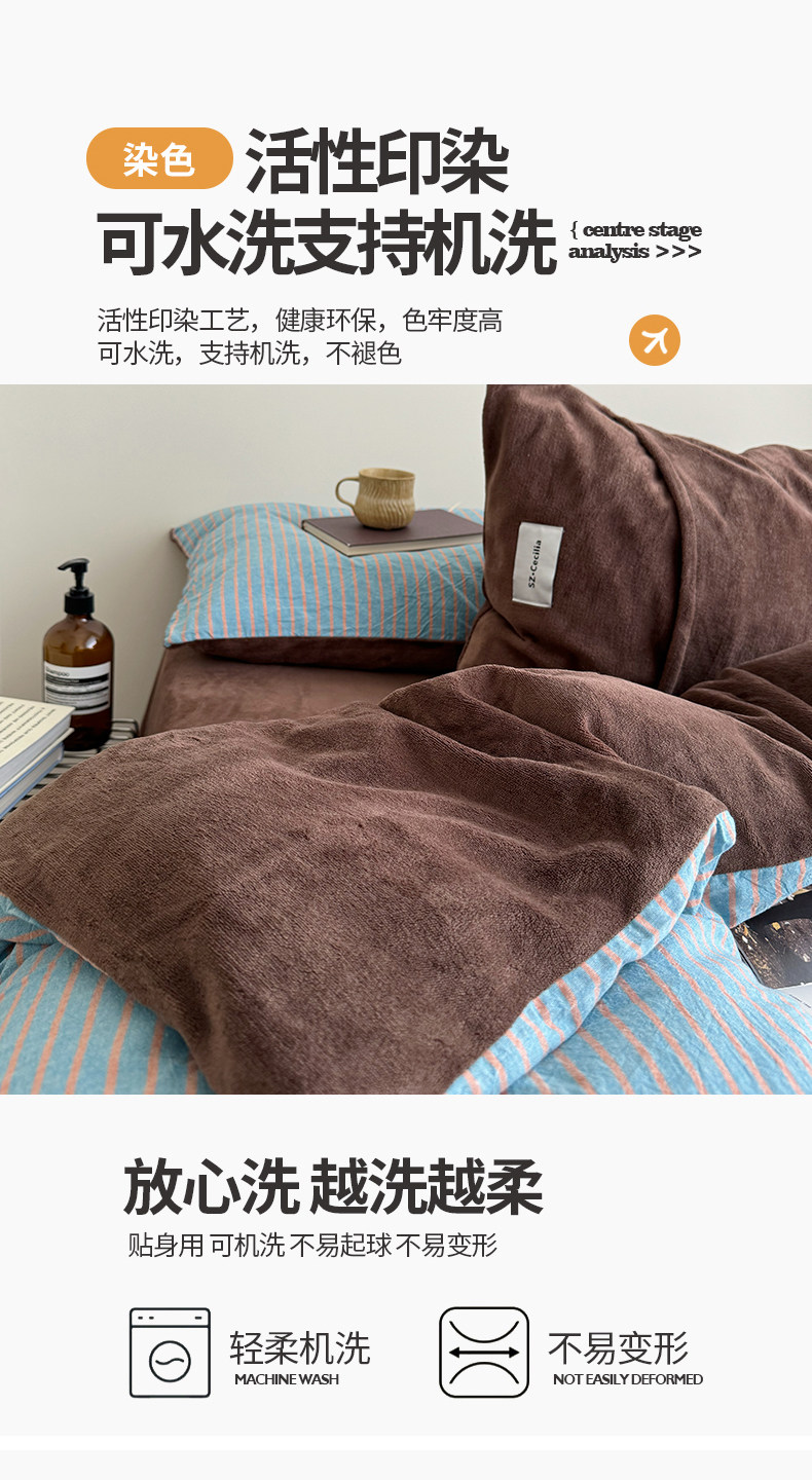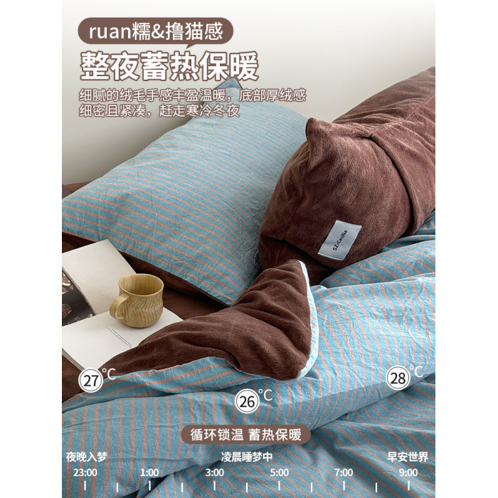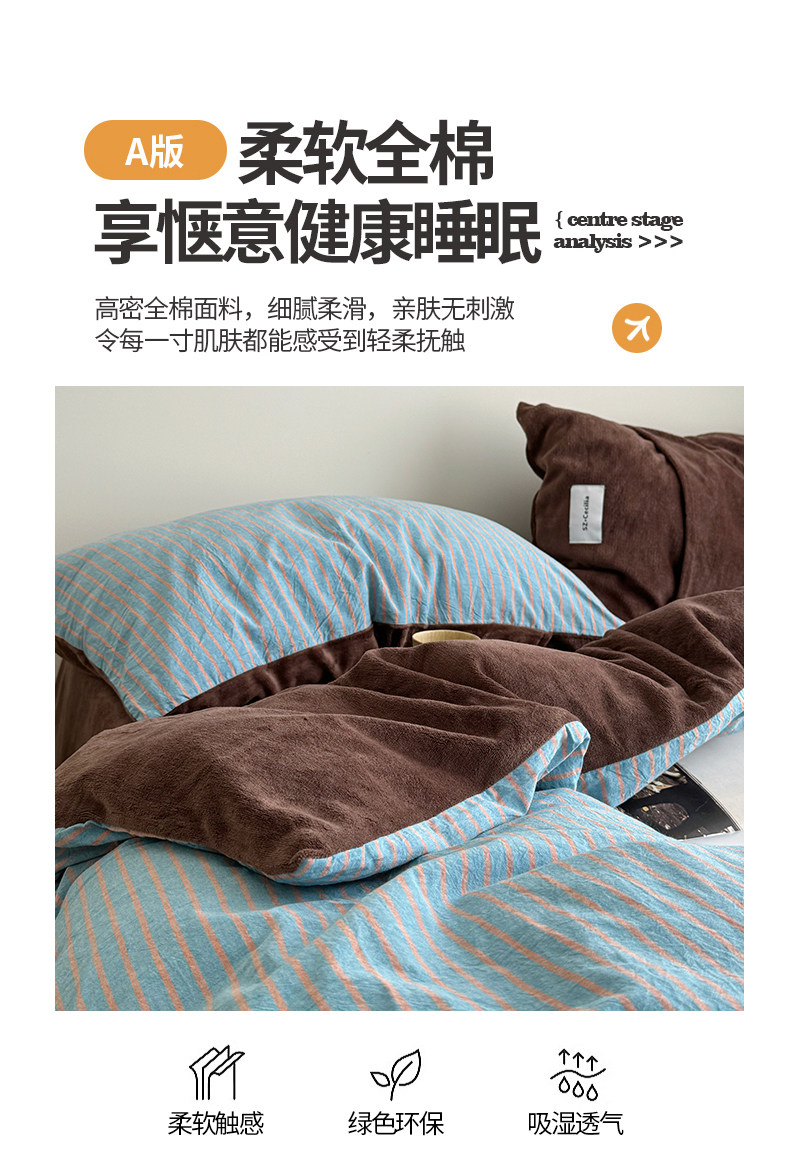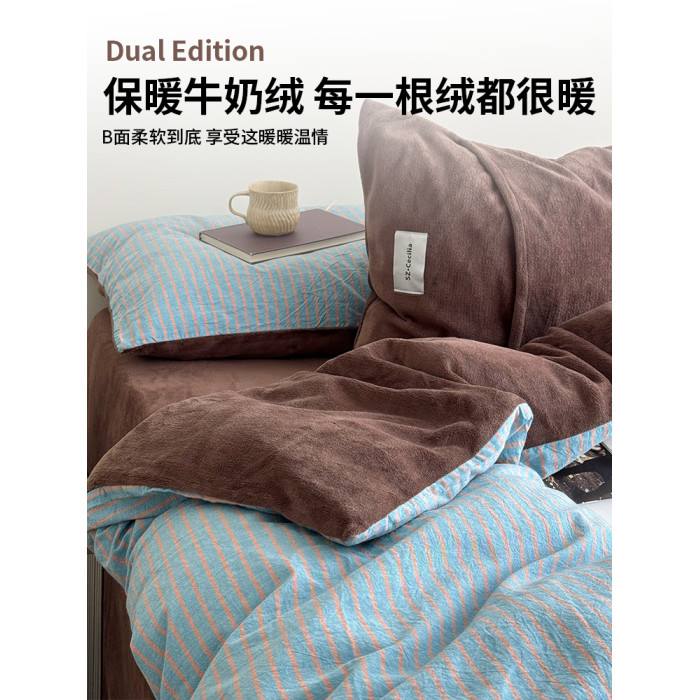 秋冬ab版全棉牛奶絨床上四件套加厚珊瑚絨面被套床單床包款三件套