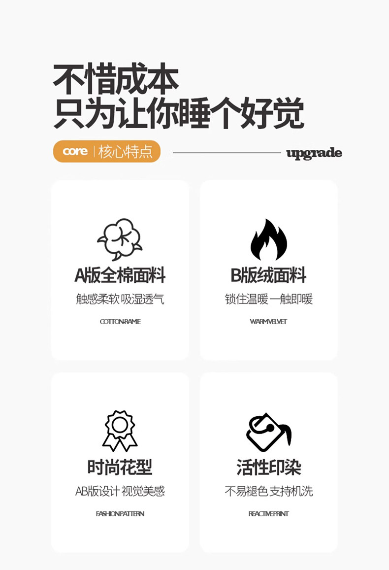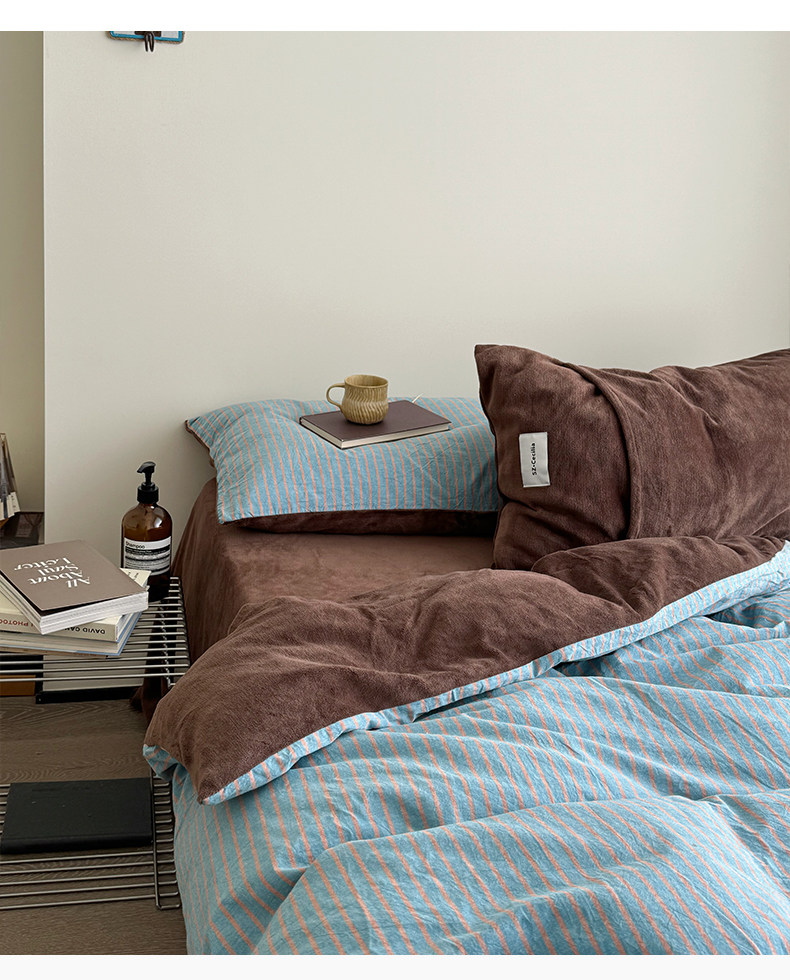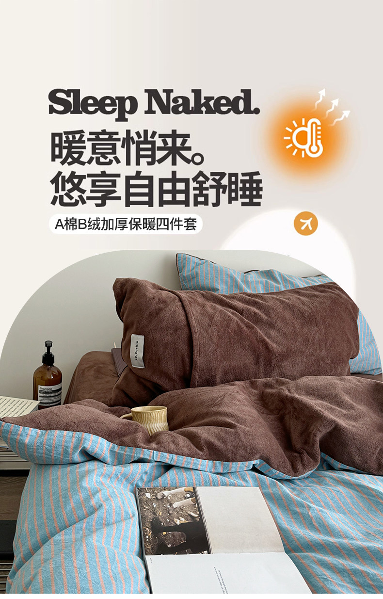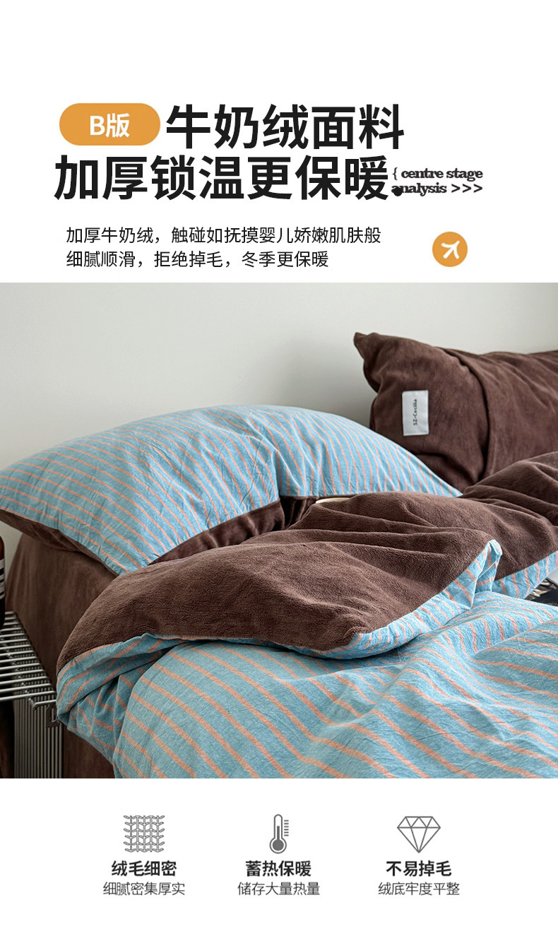 秋冬ab版全棉牛奶絨床上四件套加厚珊瑚絨面被套床單床包款三件套