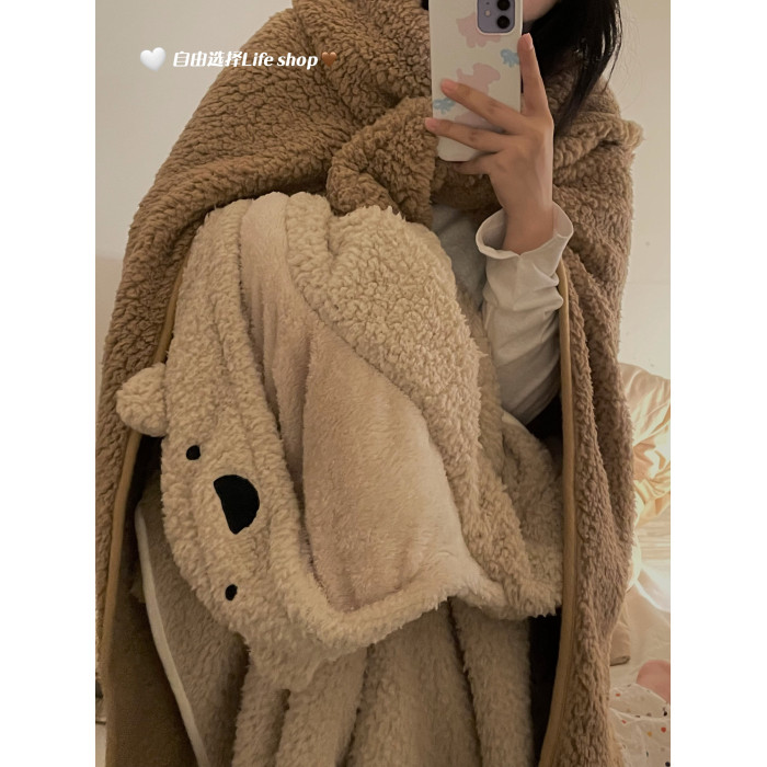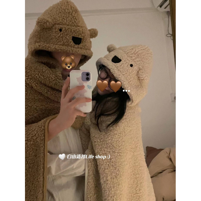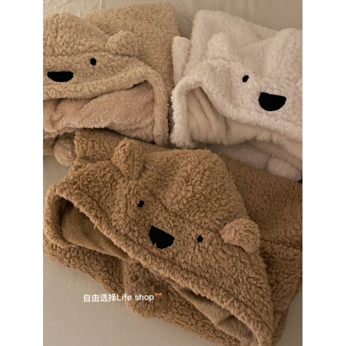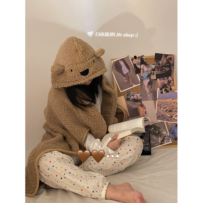 卡通小熊披風可愛秋冬加厚保暖毛毯披肩帶帽學生午休午睡毯子鬥篷