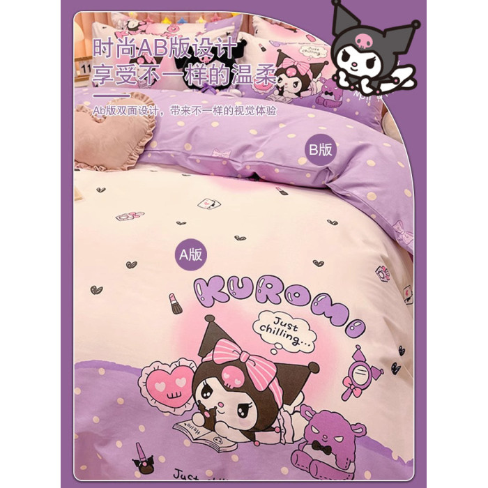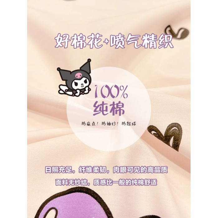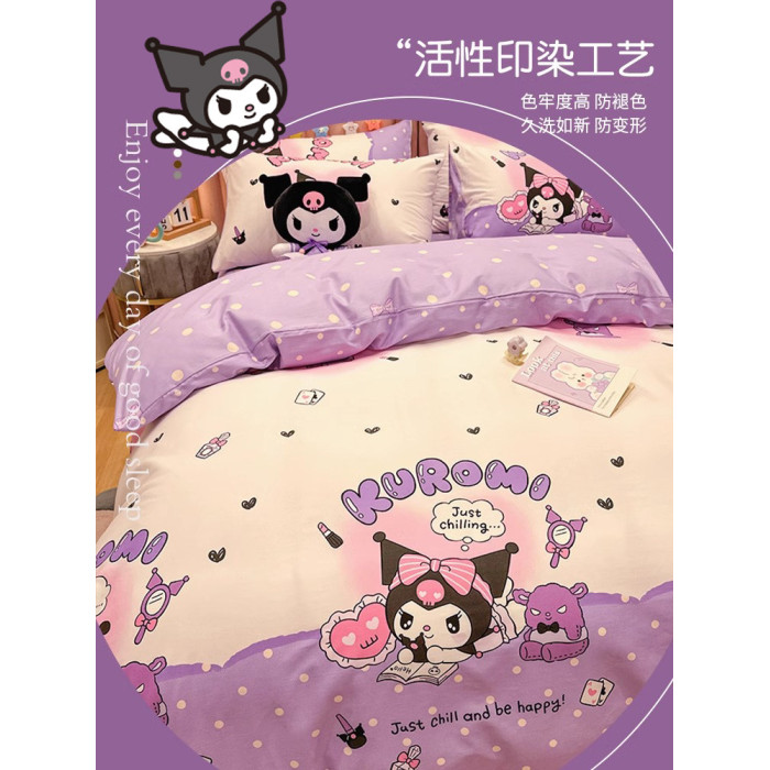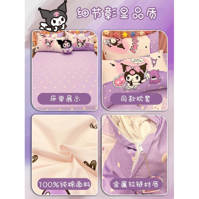 庫洛米公主風純棉床上四件套兒童女孩床品全棉被套宿捨床單三件套