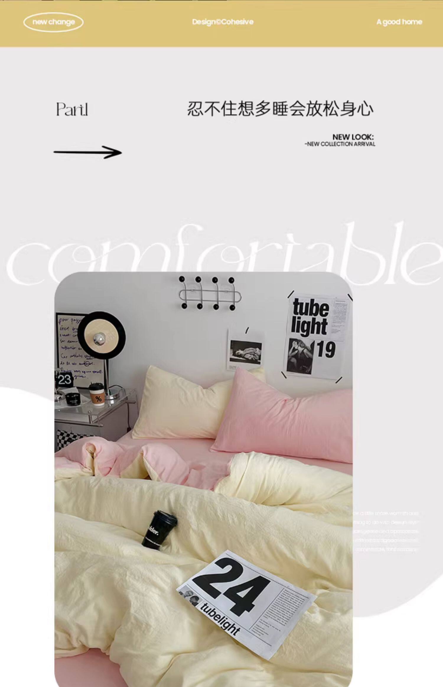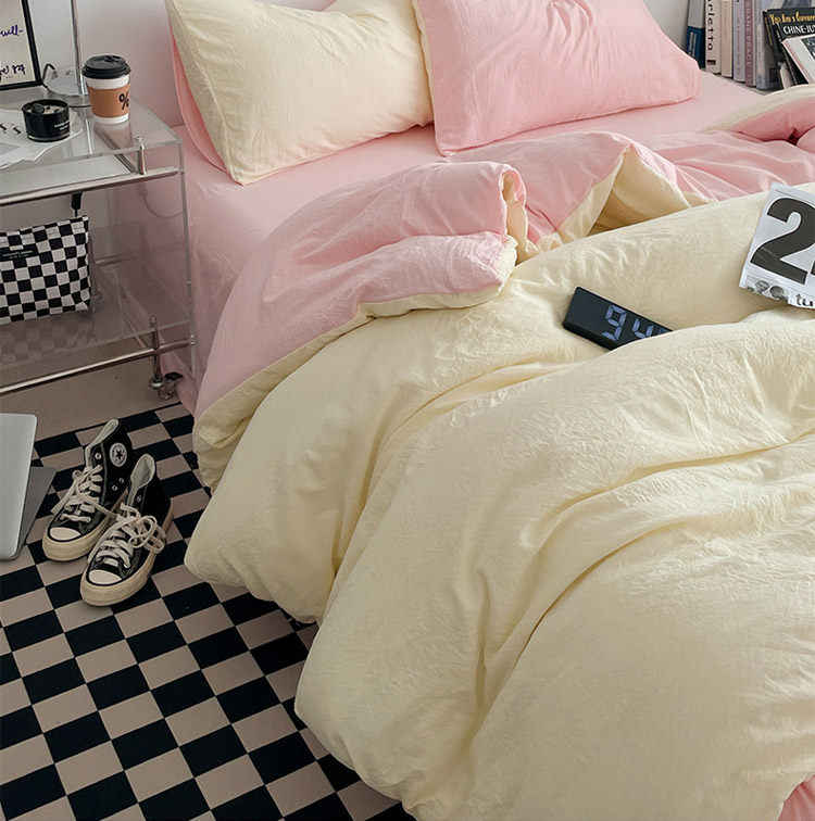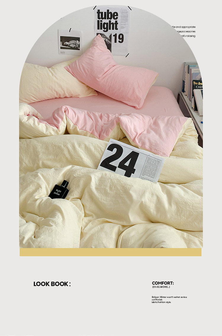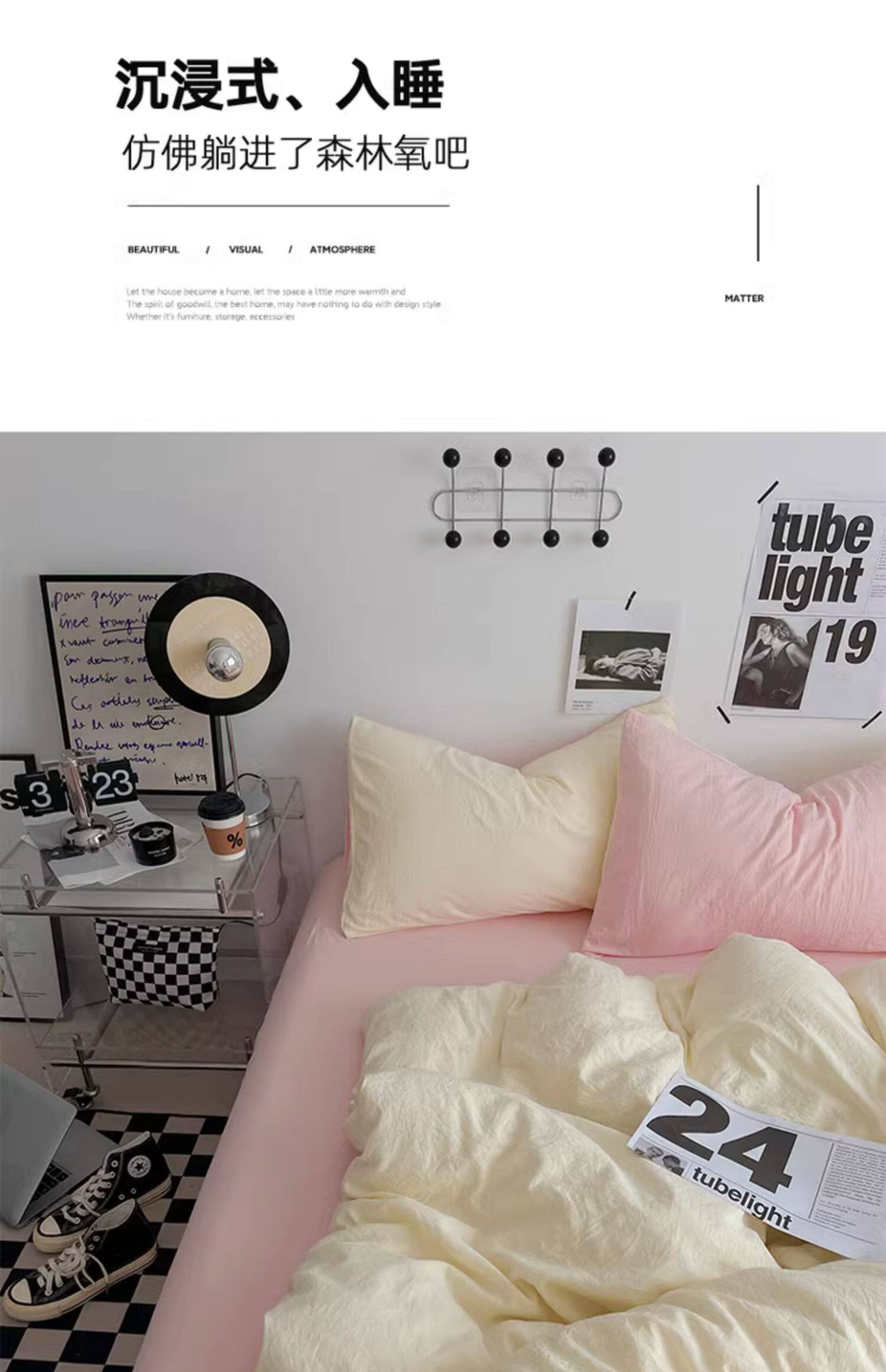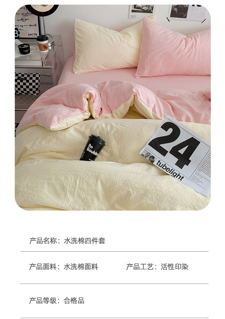 韓式ins風高顔值雙拼純色被套床上用品四件套床單宿捨親膚三件套4