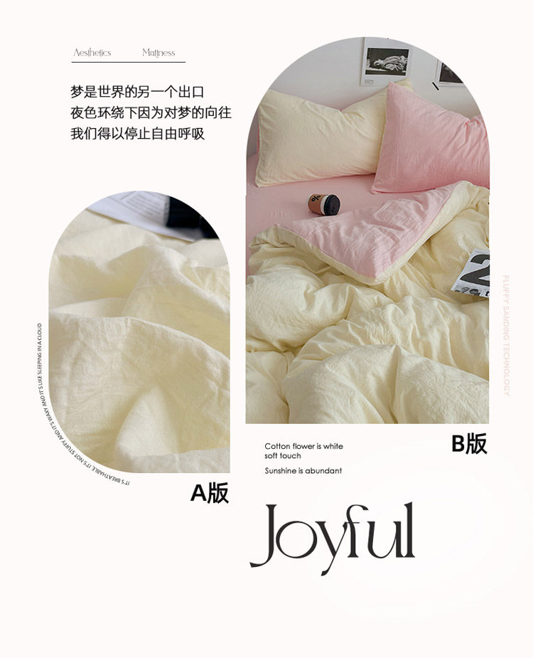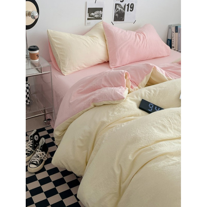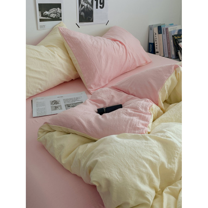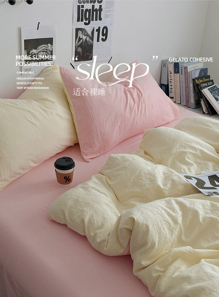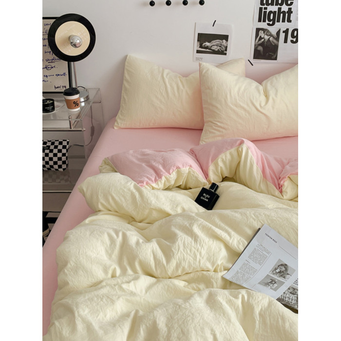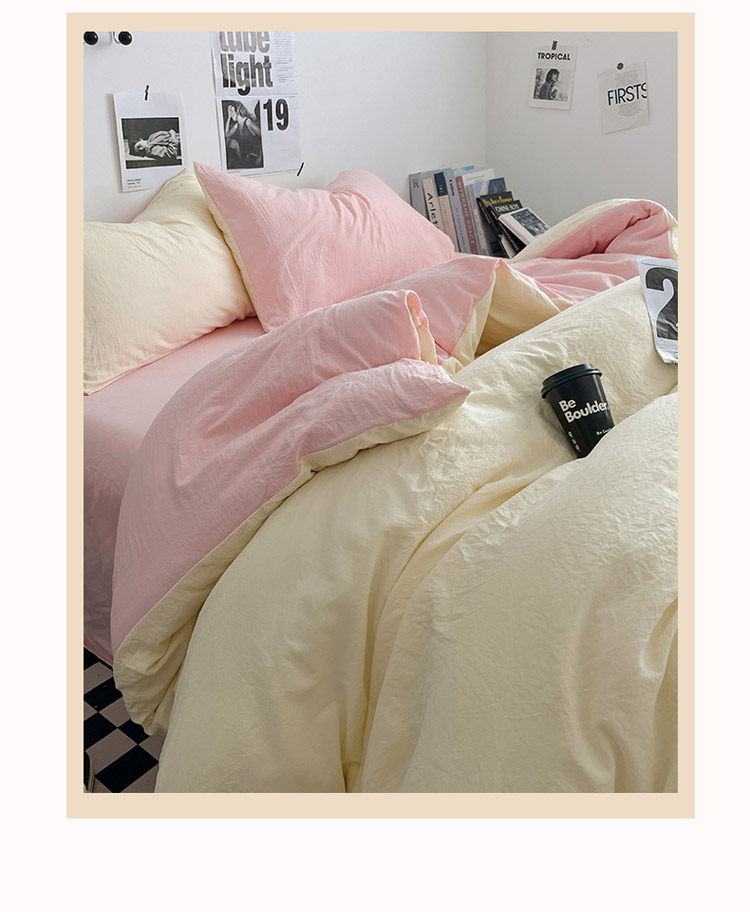 韓式ins風高顔值雙拼純色被套床上用品四件套床單宿捨親膚三件套4