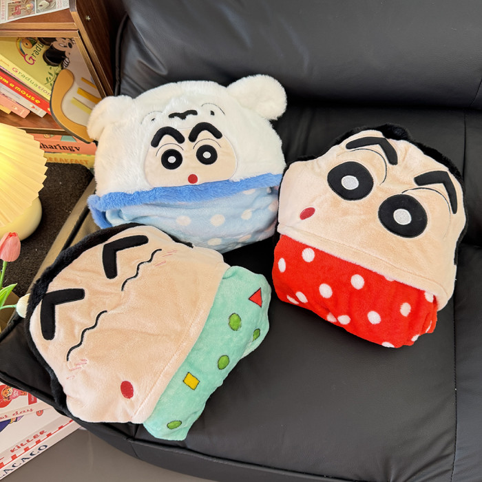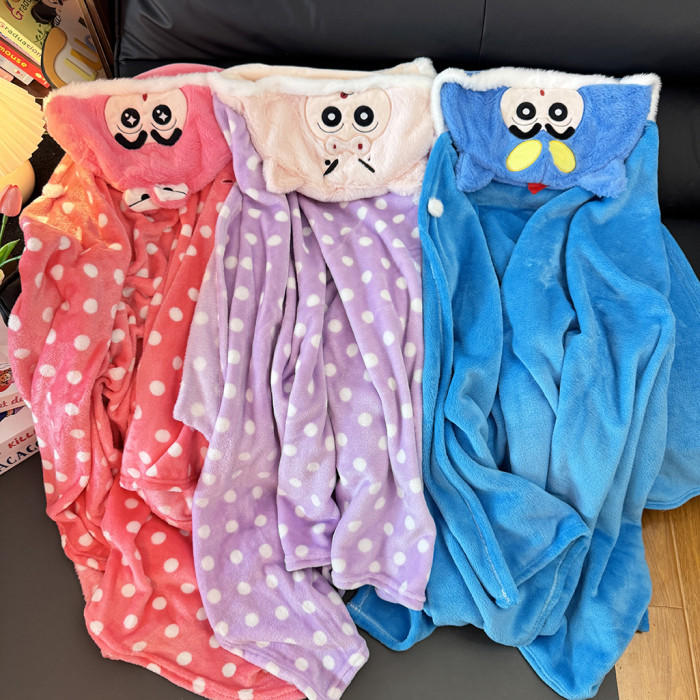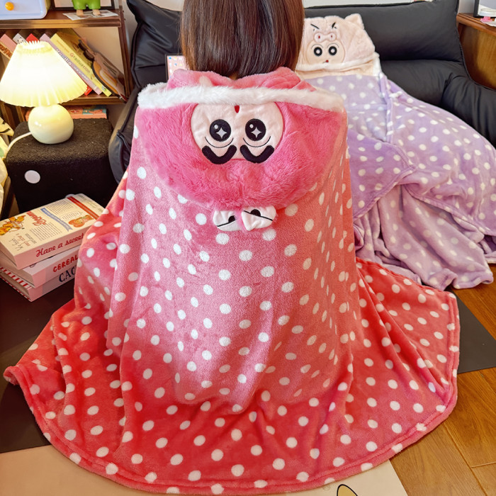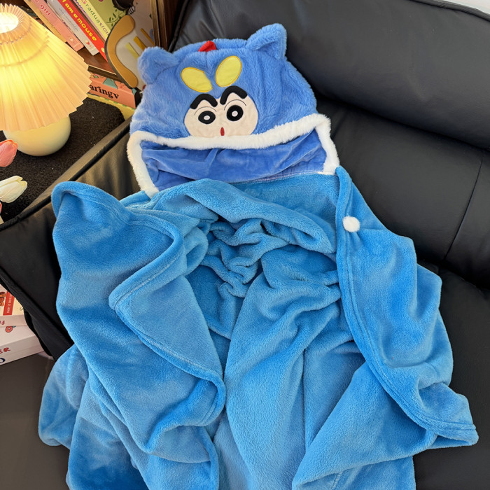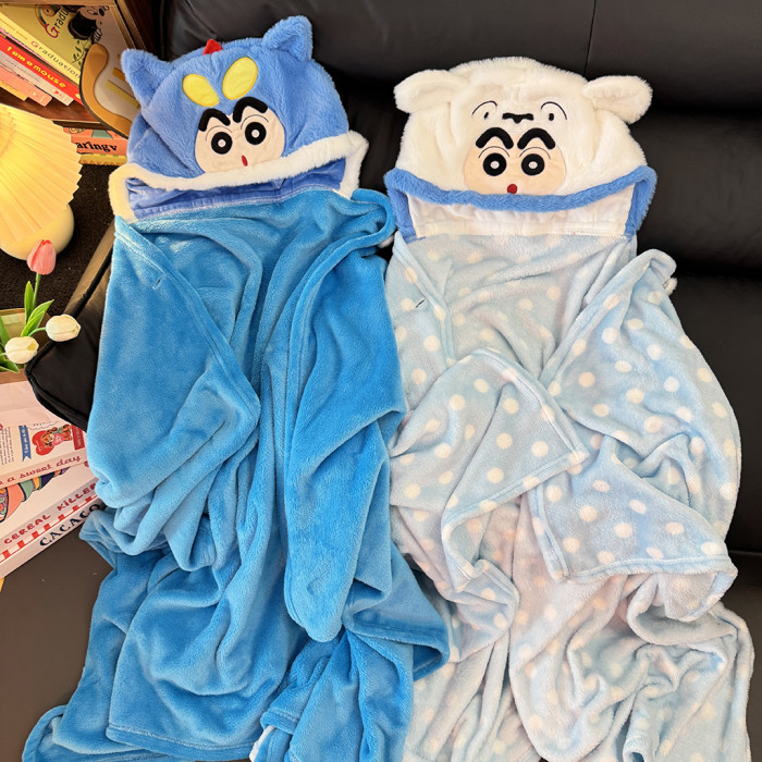卡通蠟筆小新披風辦公室午睡毯鬥篷蓋毯學生午休毛毯連帽披肩毯子