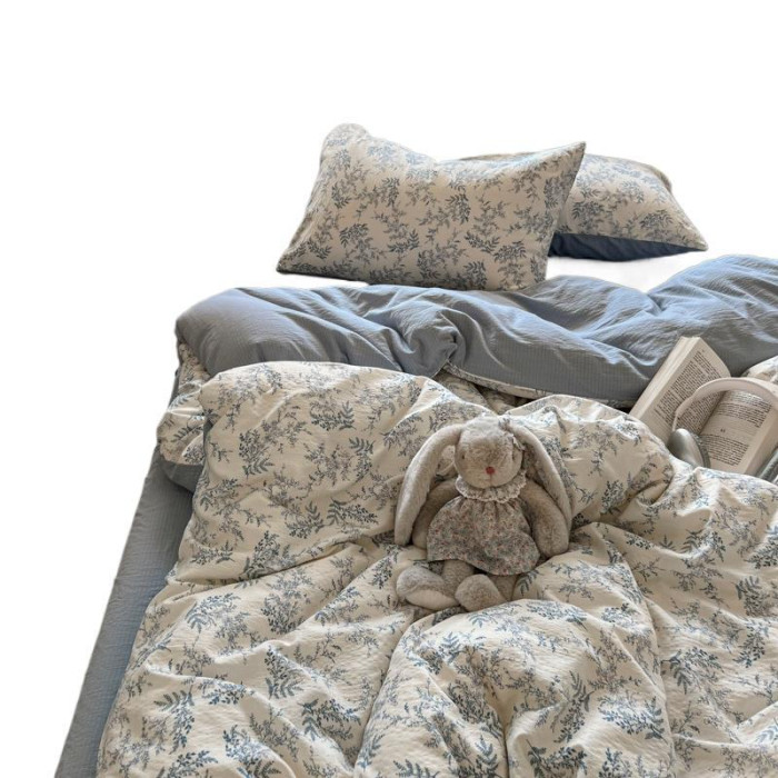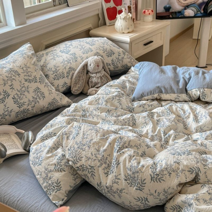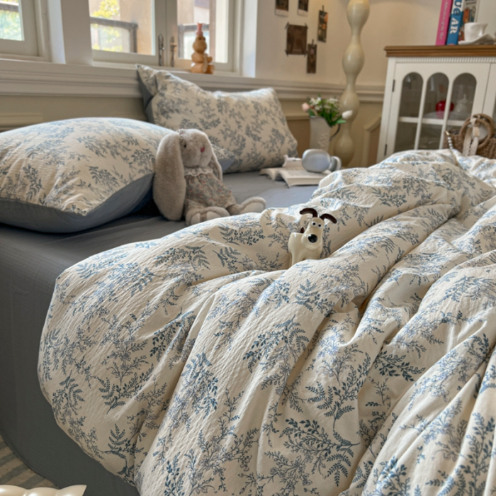 雲感褶皺風雙層紗四件套軟糯床單床包款小清新卡通學生宿捨三件套