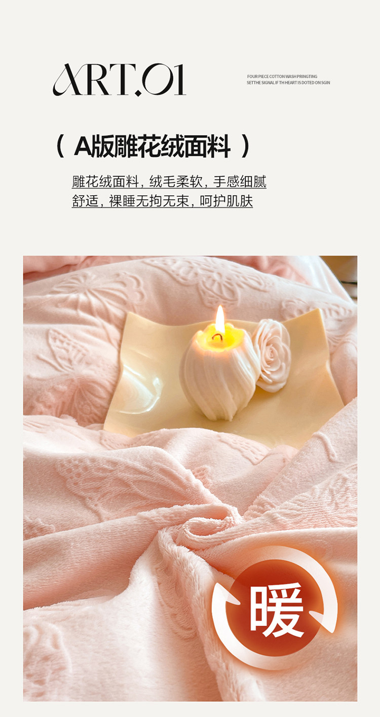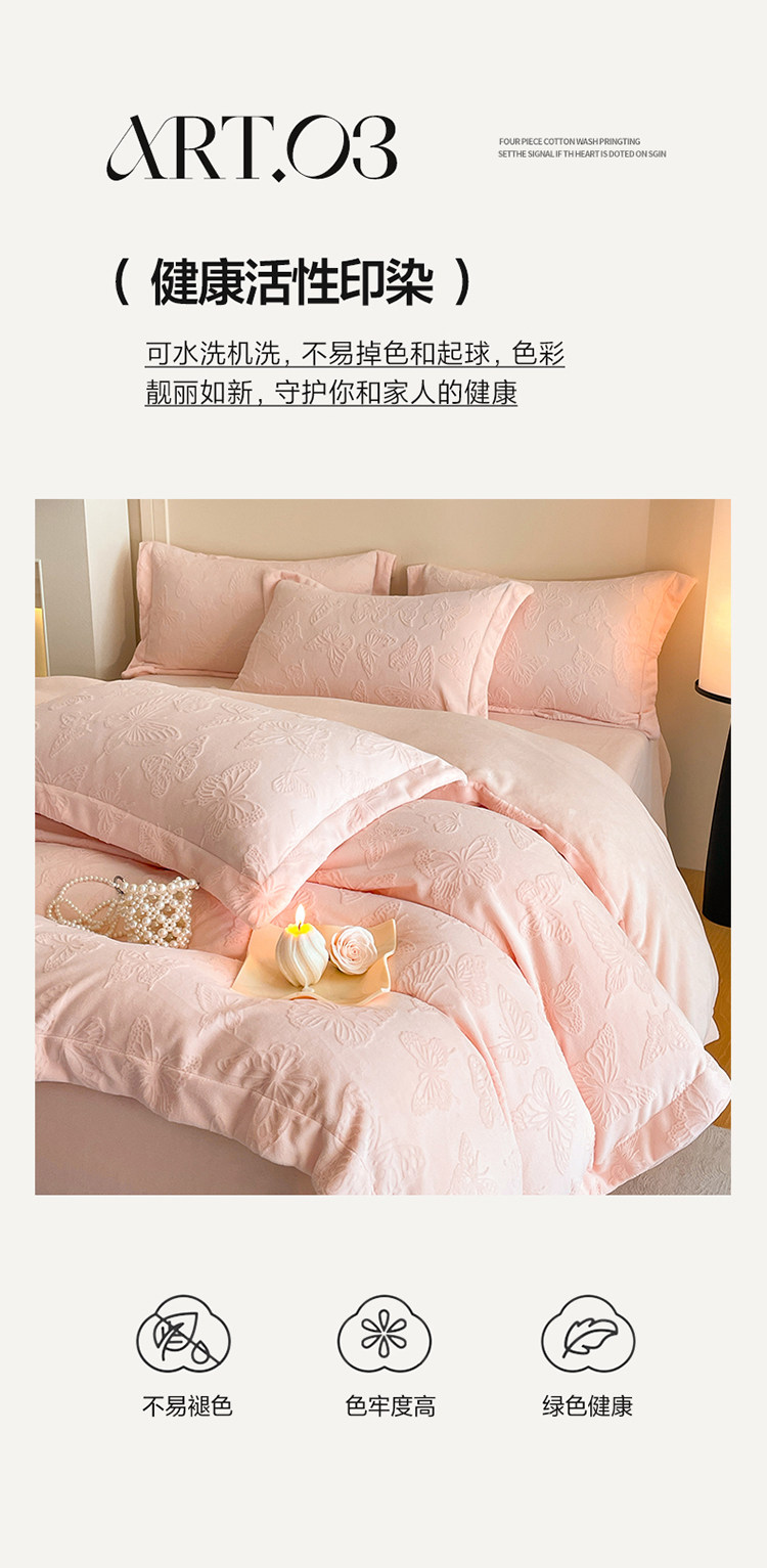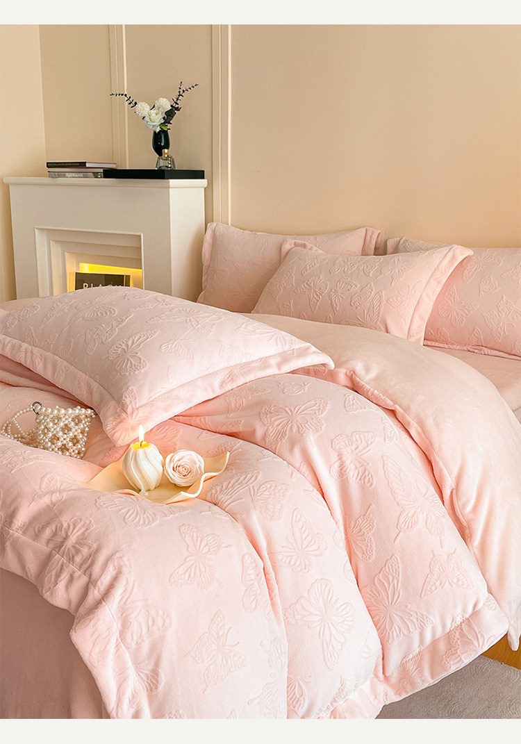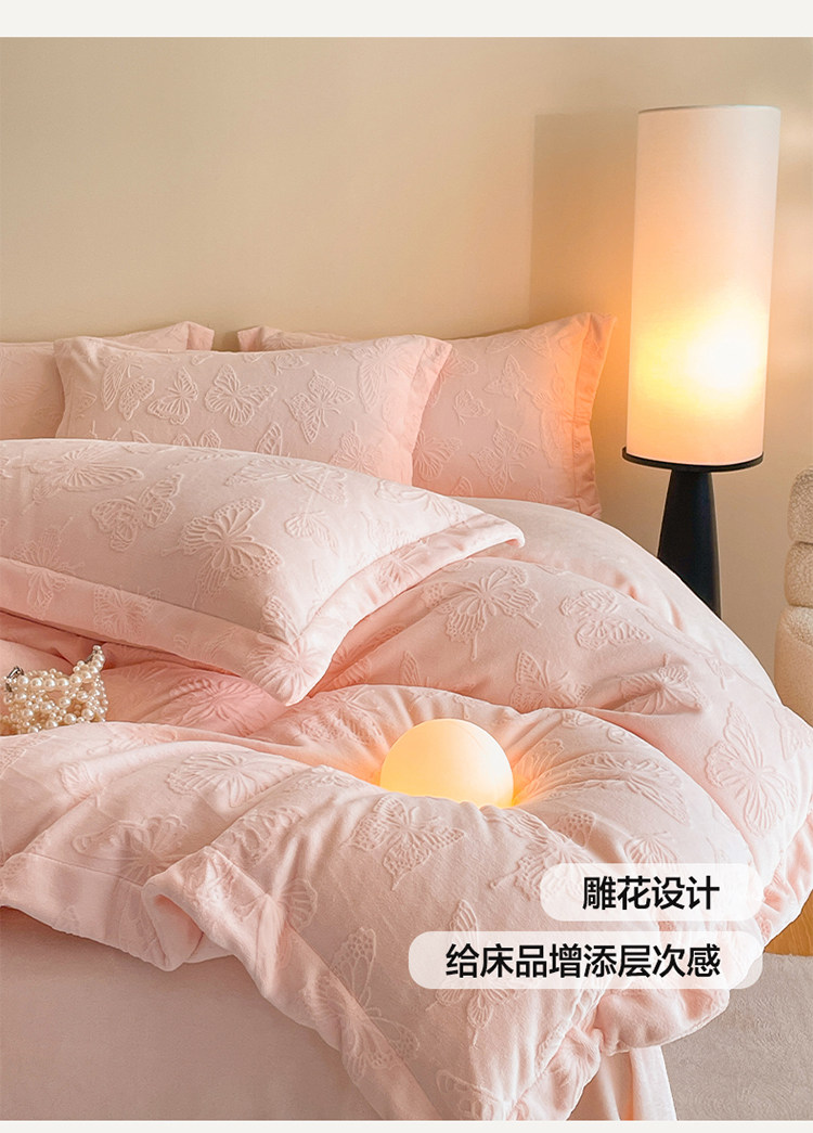 A類立體雕花牛奶絨四件套冬季公主風加厚加絨床單被套寬邊絨被罩