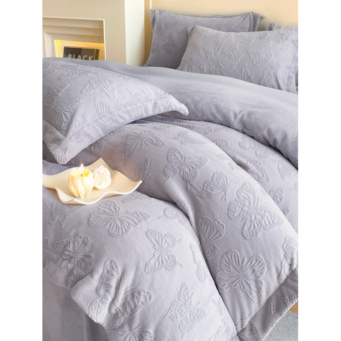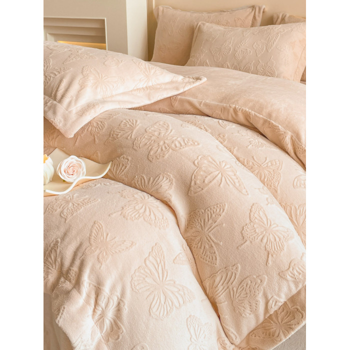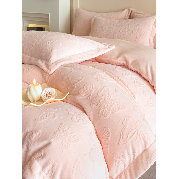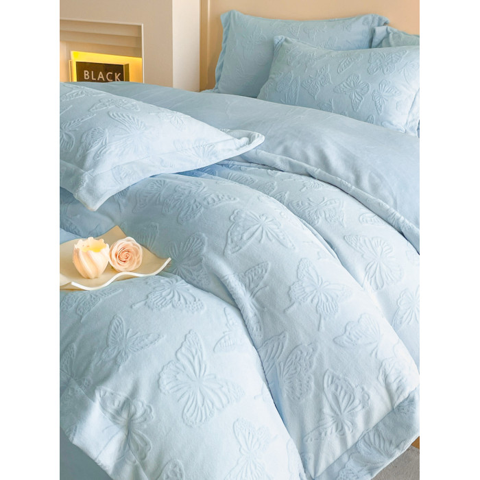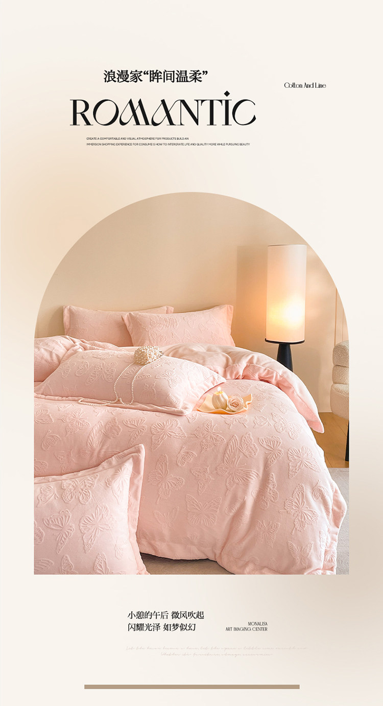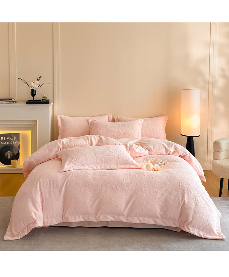 A類立體雕花牛奶絨四件套冬季公主風加厚加絨床單被套寬邊絨被罩