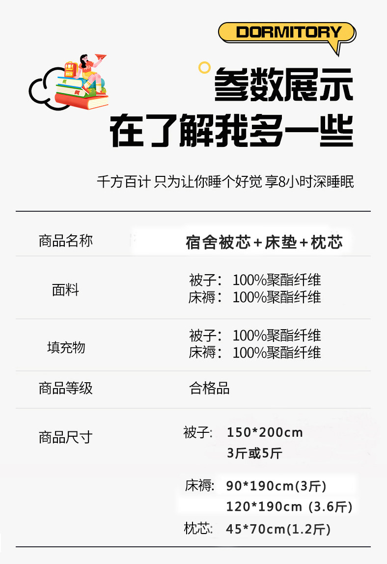 學生宿捨單人床品套件內膽被芯枕芯床墊單人被子加厚冬被芯纖維棉