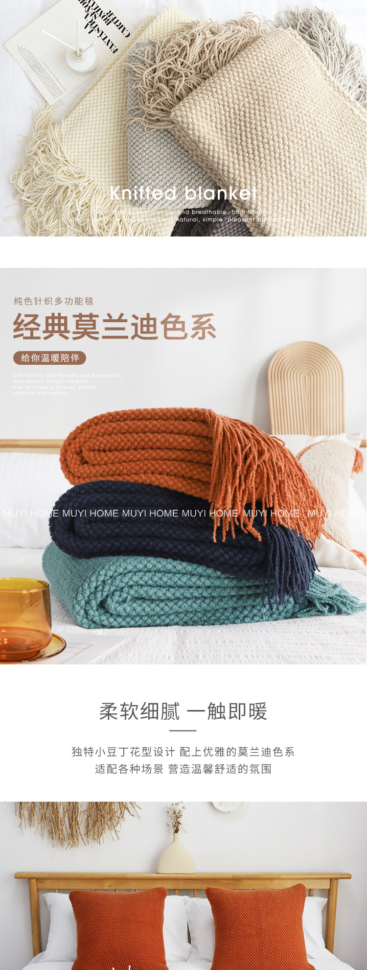 莫蘭迪針織毯民宿床尾巾毛毯裝飾搭巾客廳午睡蓋毯輕奢沙發毯子
